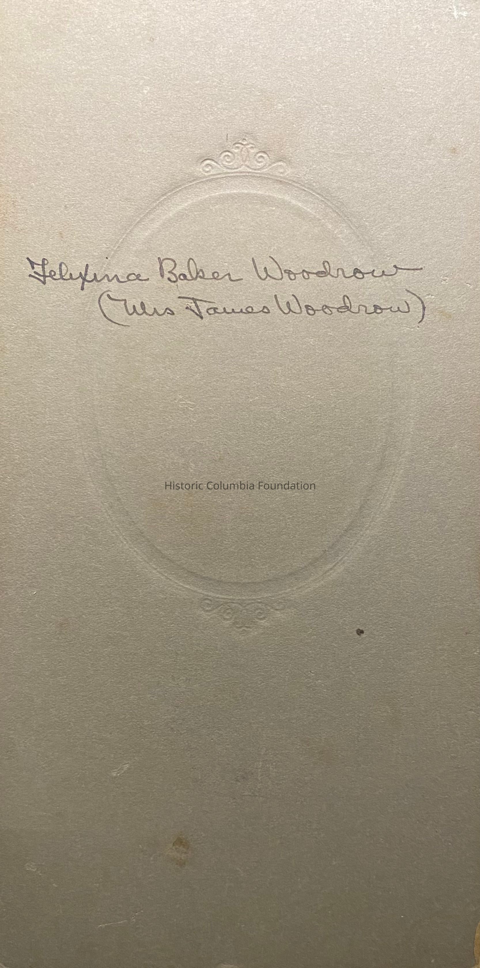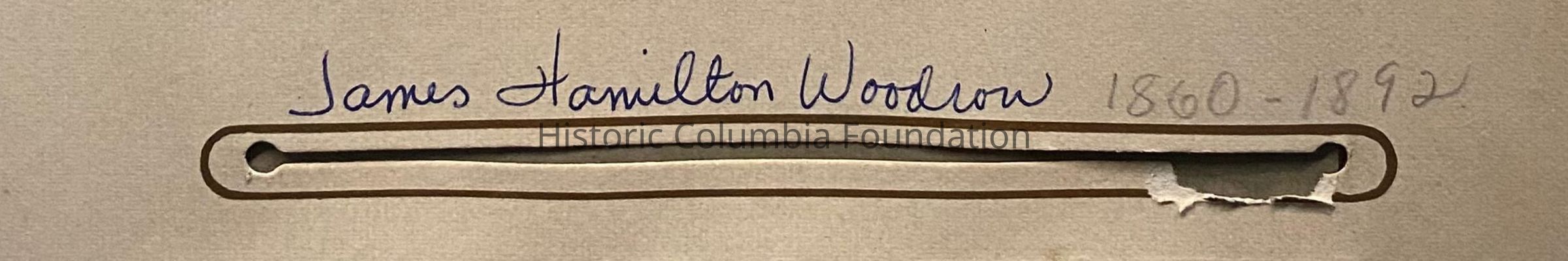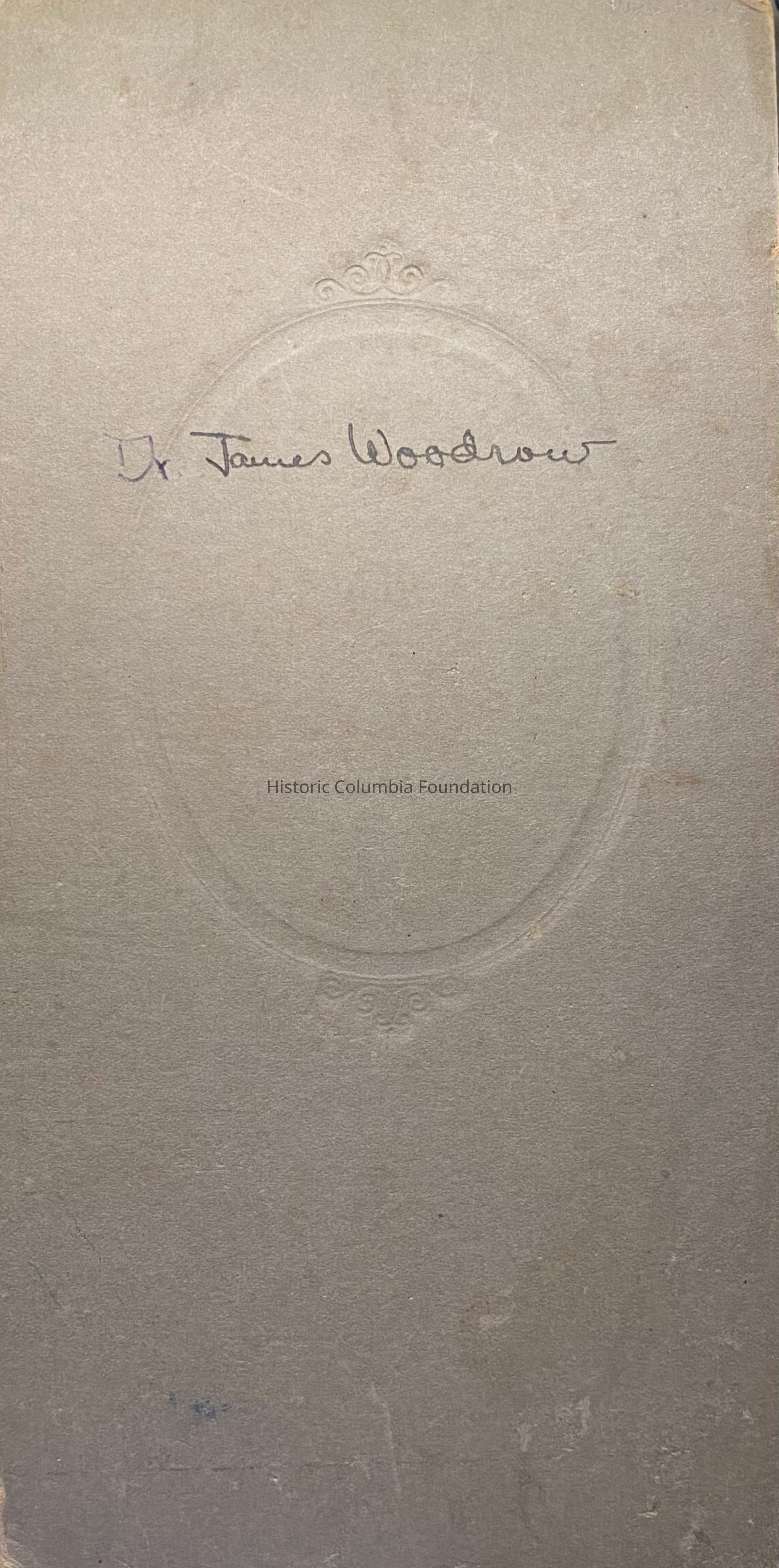 This album contains many photographs of various Woodrow family members, including James Hamilton Woodrow (1860–1892). James was the son of Reverend James Woodrow (1828–1907), the brother of Janet "Jessie" Woodrow (1830–1888). As Jessie was the mother to future United States President Woodrow Wilson (1856–1924), James Hamilton Woodrow was his first cousin. Wilson's father, Joseph Ruggles Wilson (1822–1903), was a professor at the Columbia Theological Seminary during the same time as Reverend Woodrow.Inscription/Signature/Marks