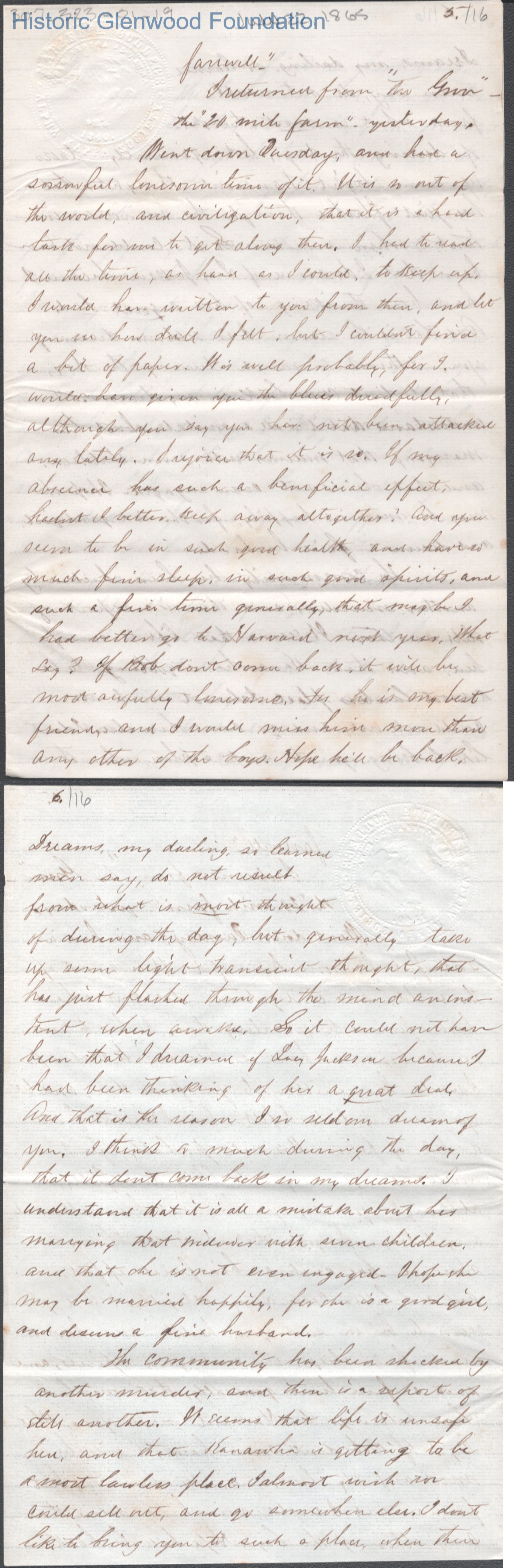 Sixteen-page letter to Lucy W. Summers from Lewis Summers, Jul 22, 1865.