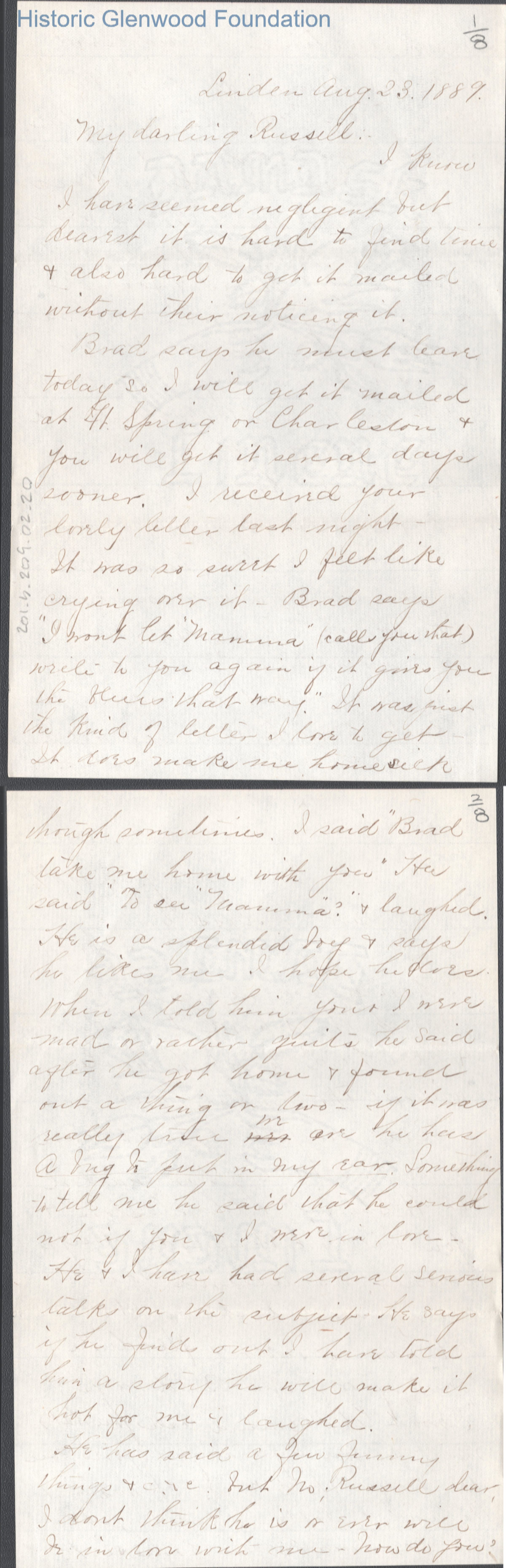Russell G. Quarrier from Elizabeth S. Quarrier, Aug 23, 1889