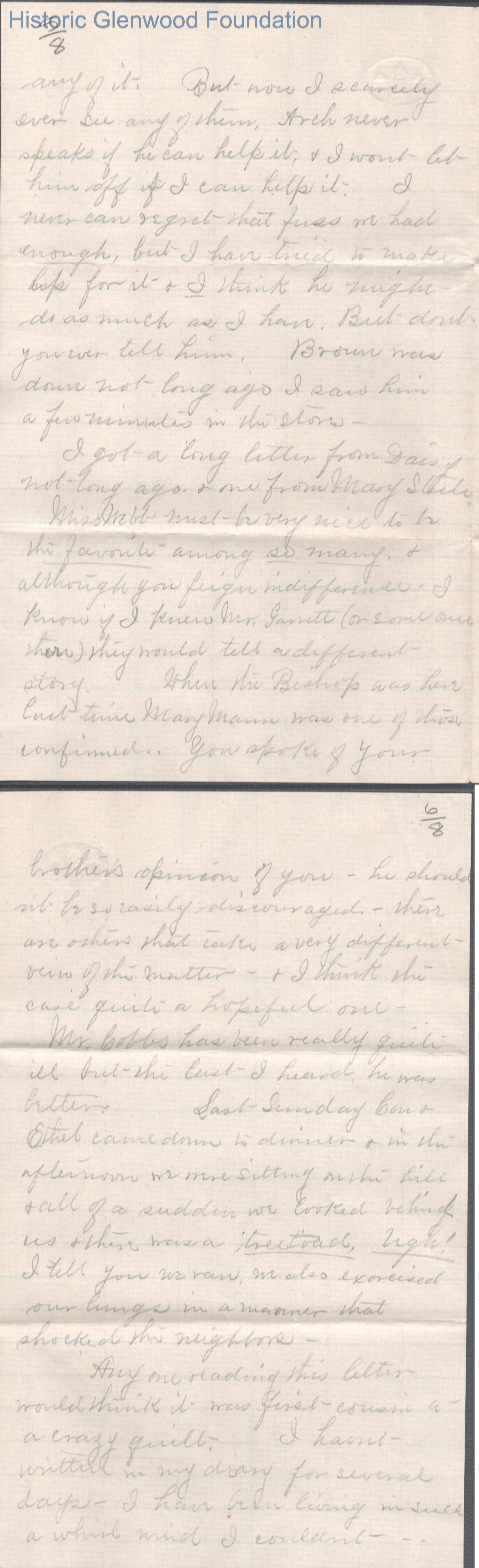 Eight-page letter to Russell G. Quarrier from Elizabeth S. Quarrier, May 31, 1887.