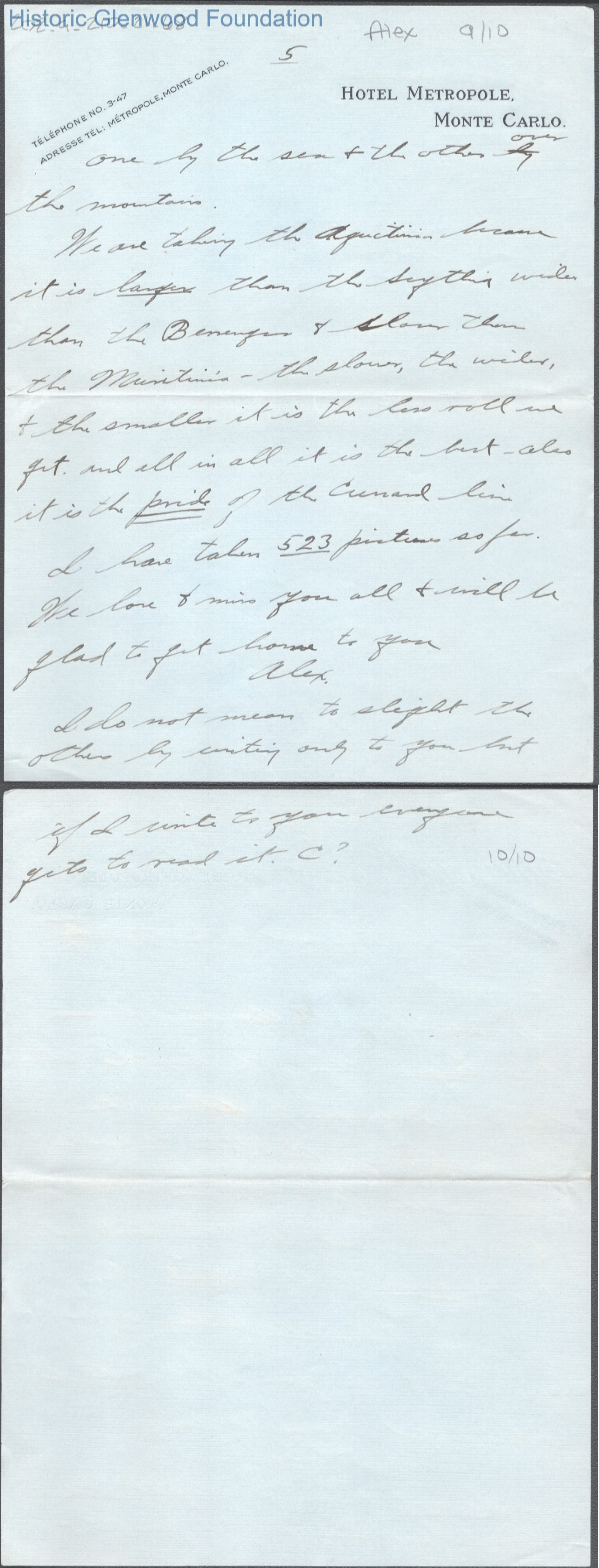 Ten-page letter to Elizabeth S. Quarrier from her son Alexander W. Quarrier, c. 1926.