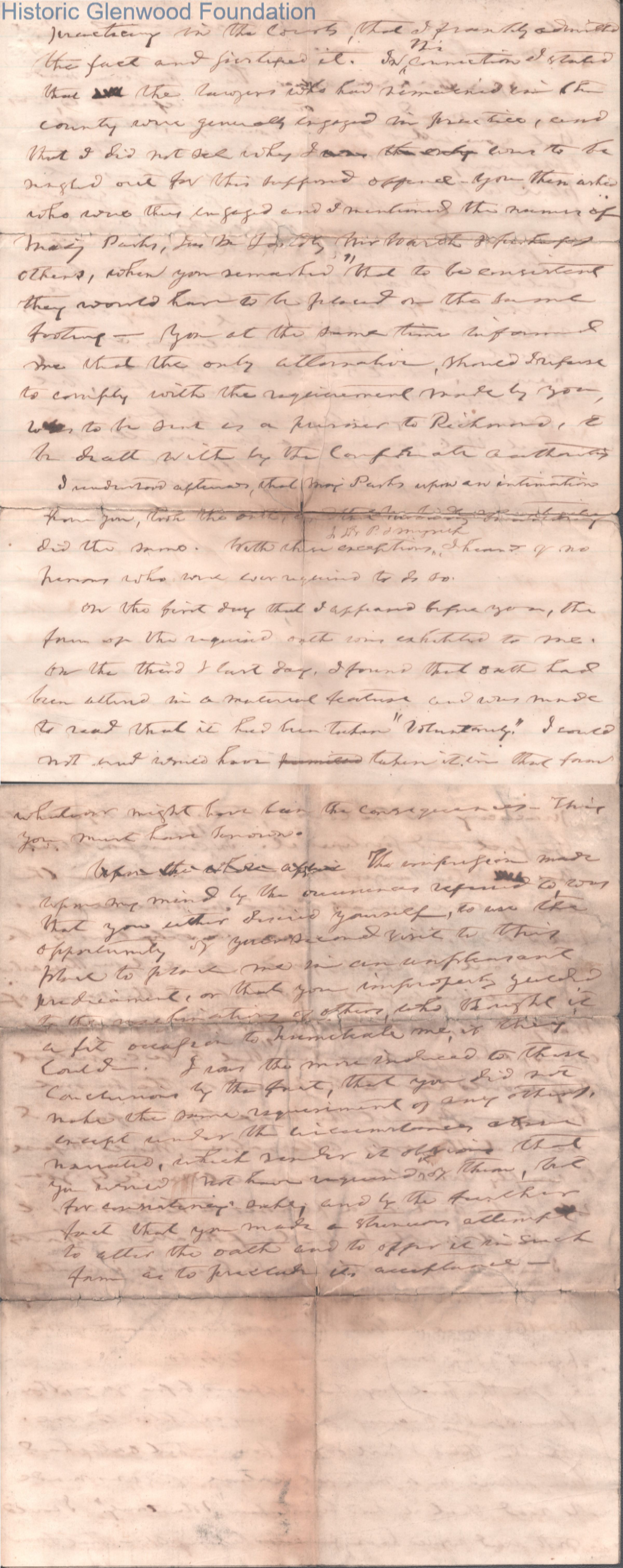 Four-page letter from Judge George Summers to Gen. John Echols, c. 1865. Echols had been a Confederate officer during the Civil War.