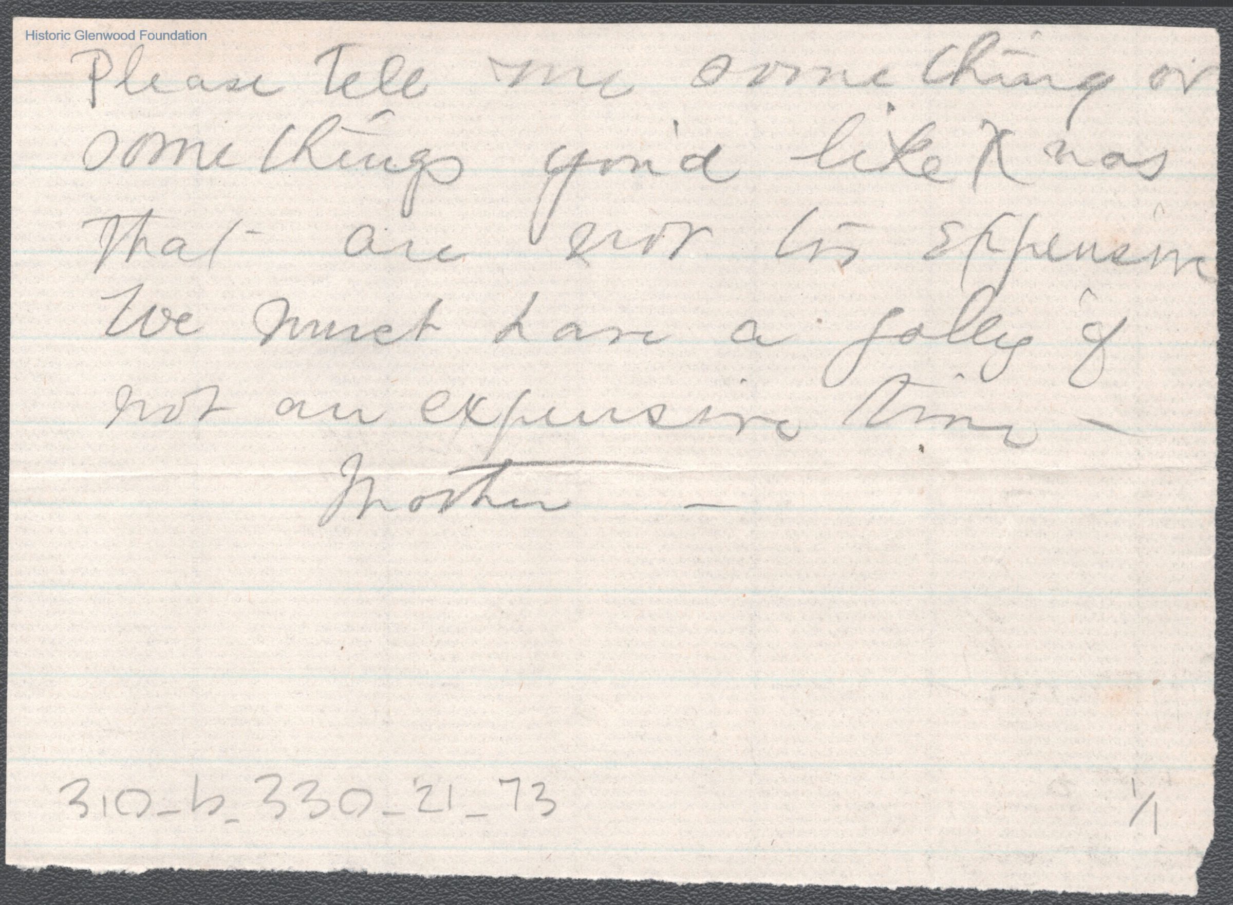 Single page note to George W. Summers from his mother Lucy W. Summers, no date.