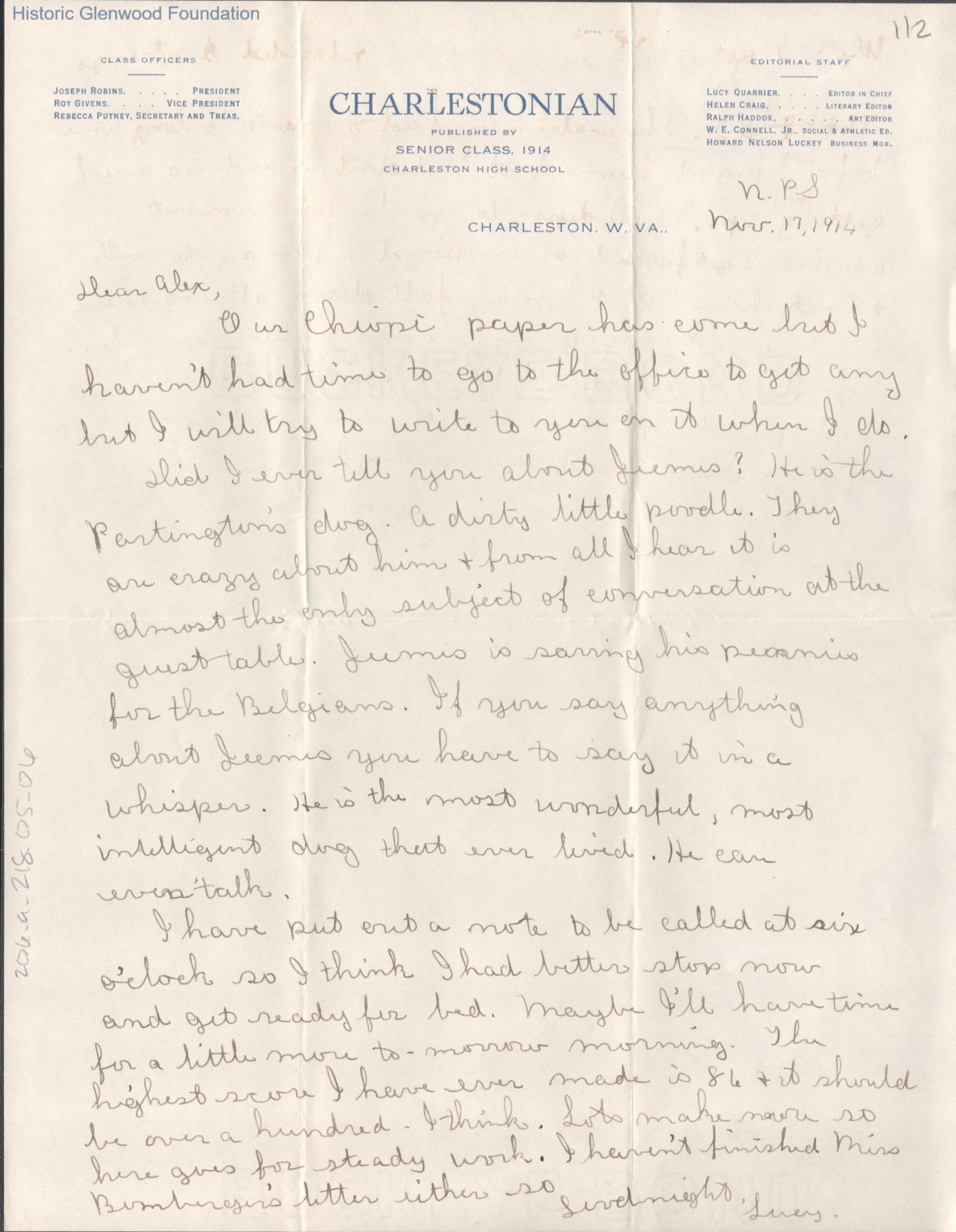 Alexander W. Quarrier from Lucy S. Quarrier, Nov 17, 1914