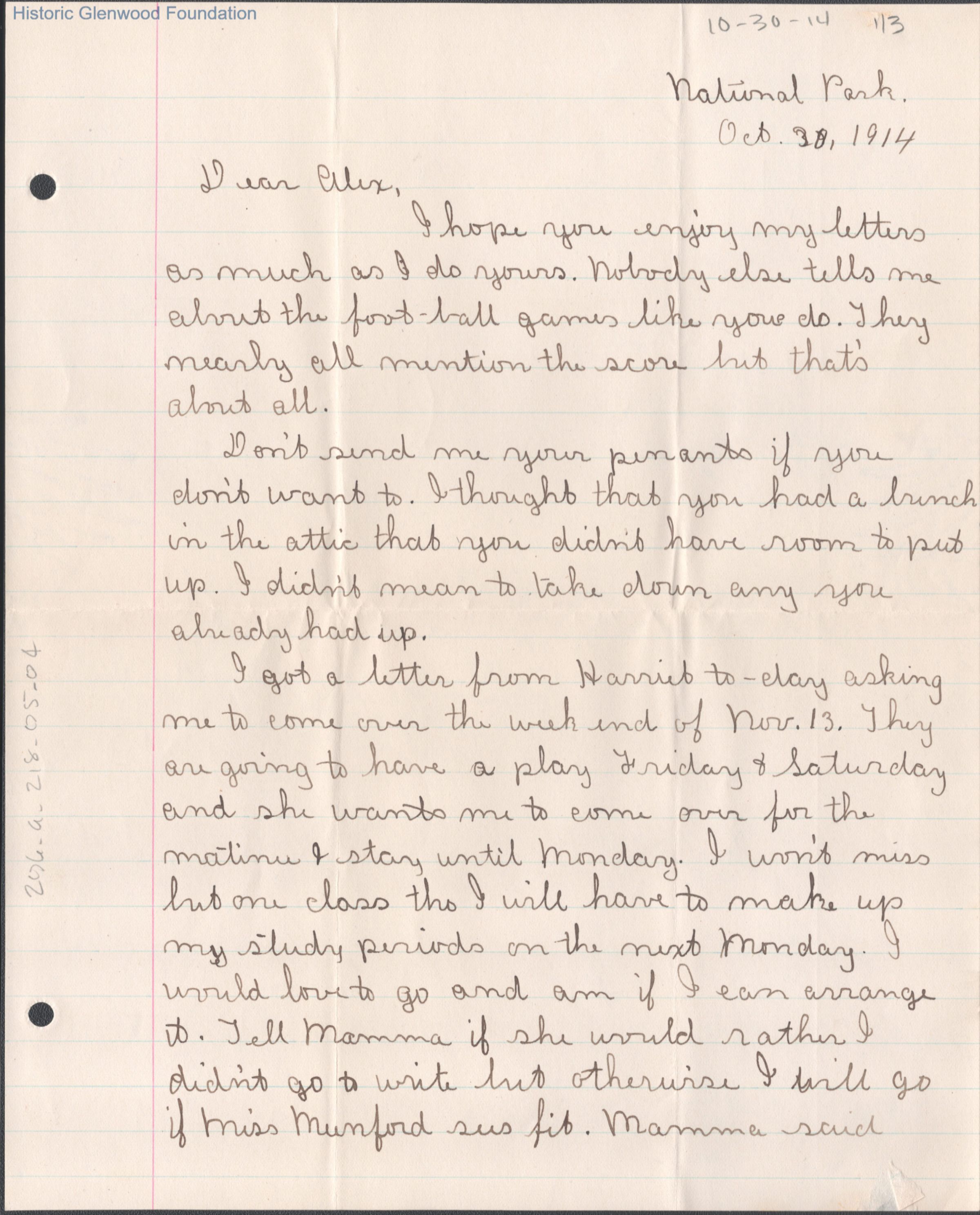 Alexander W. Quarrier from Lucy S. Quarrier, Oct 30, 1914