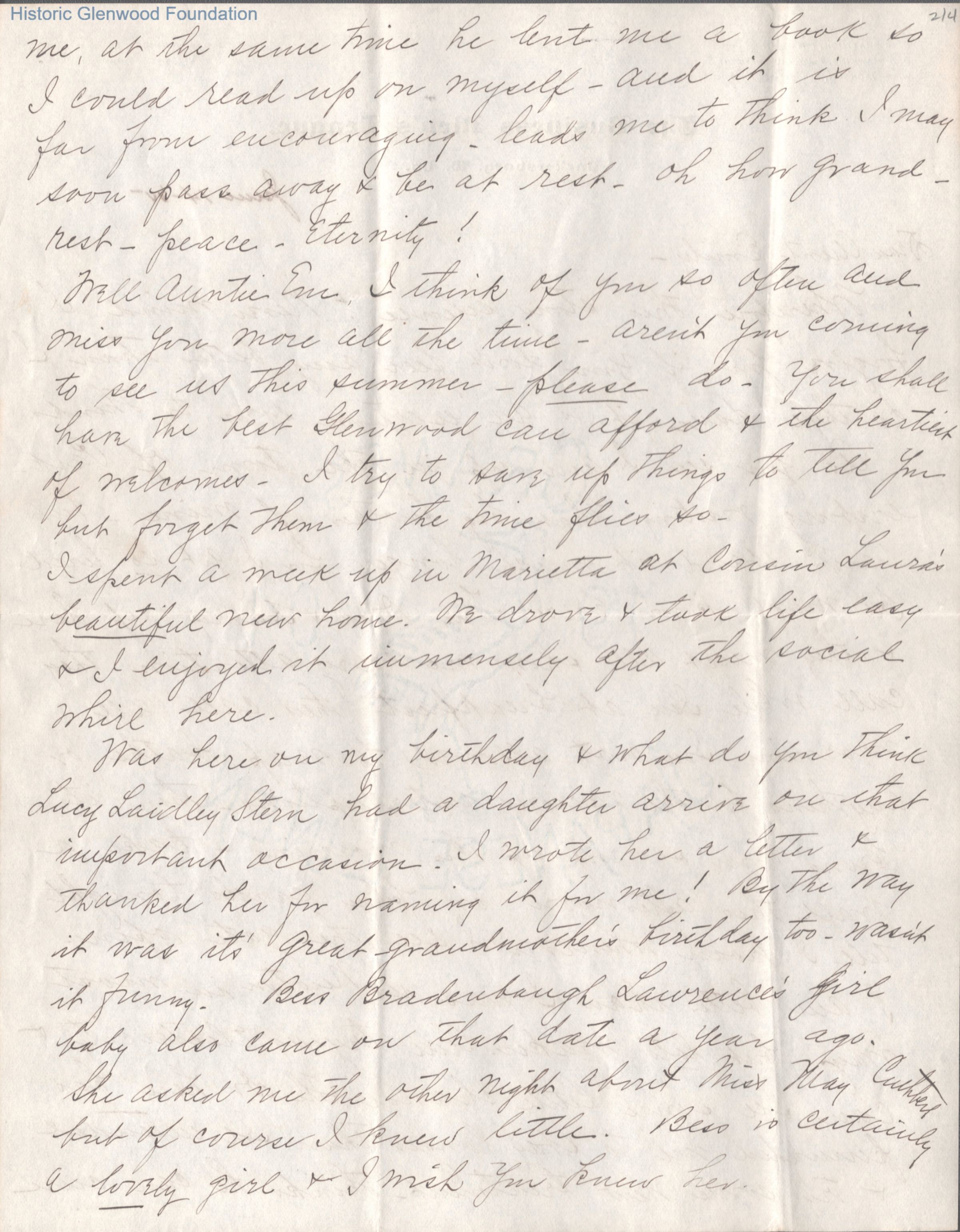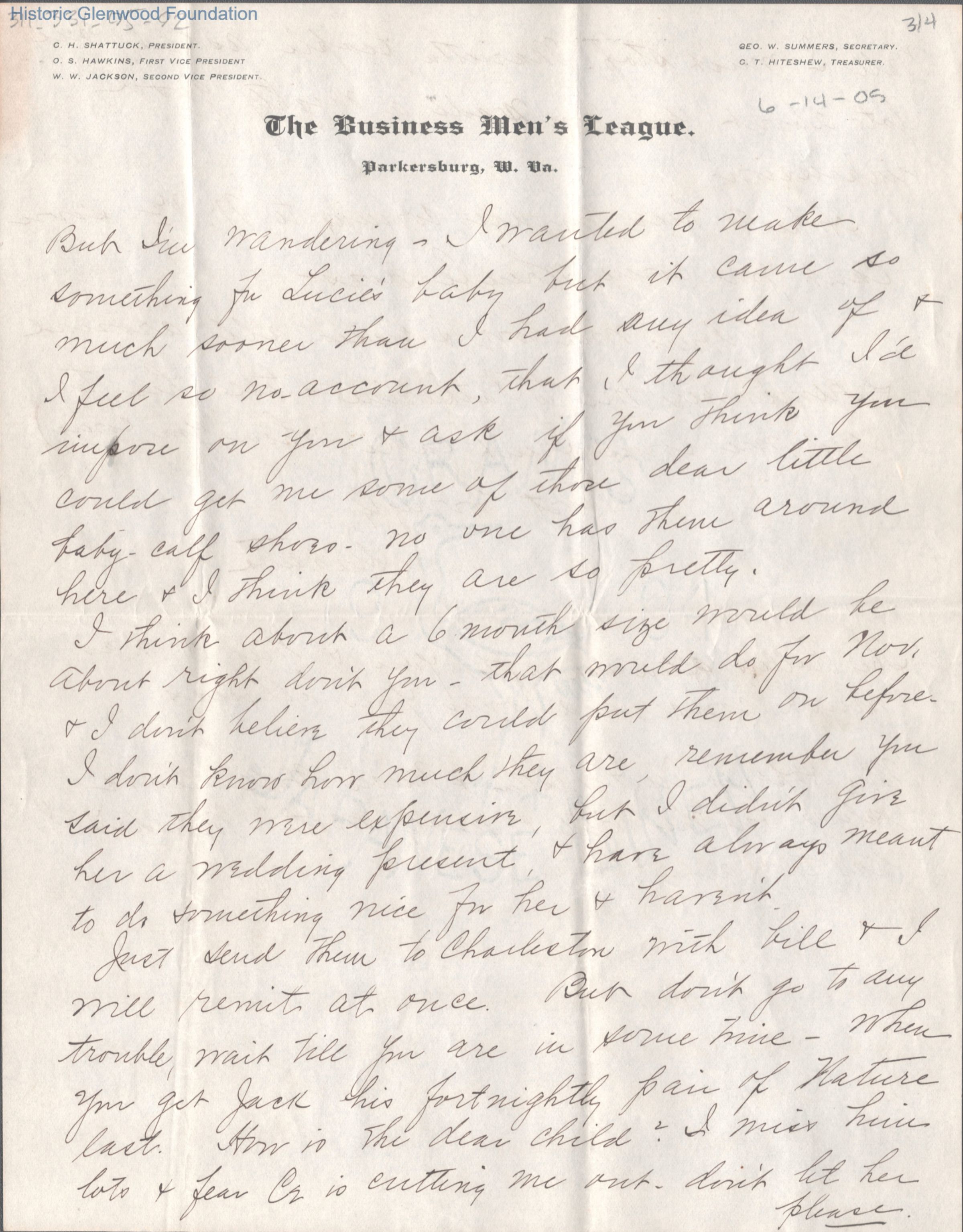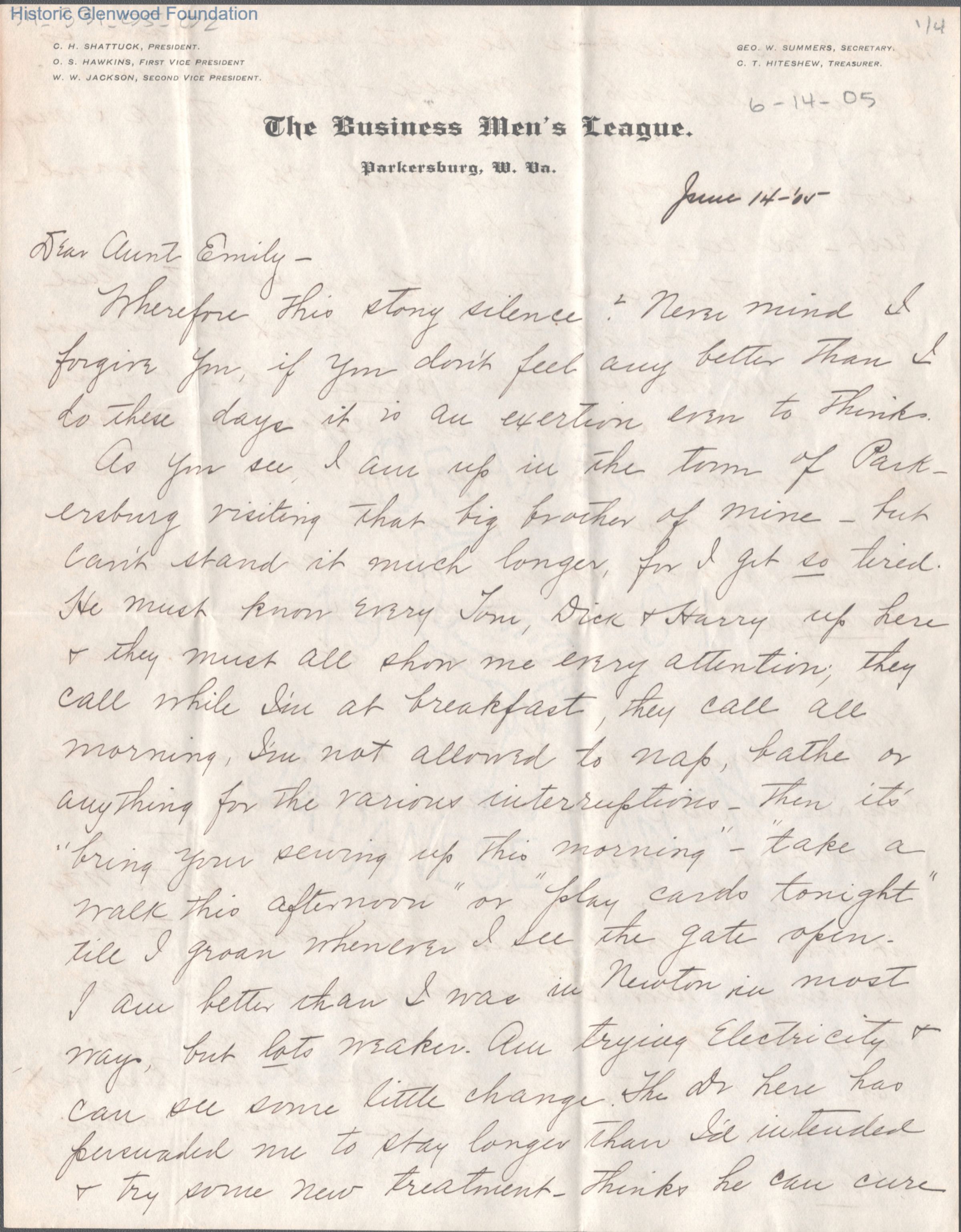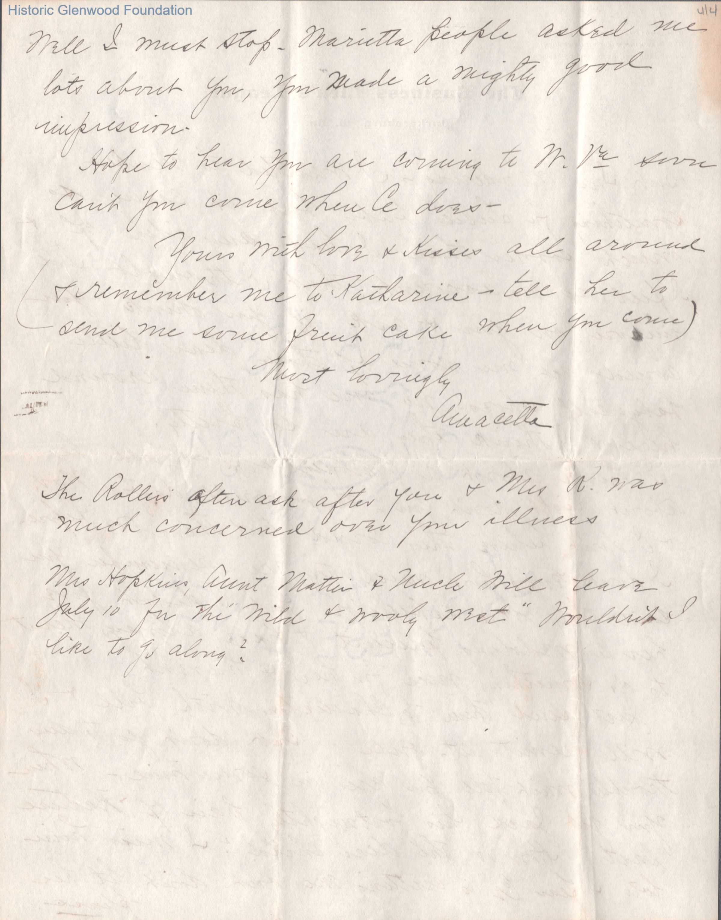 Four-page letter from Amacetta Summers to Aunt Emily, Jun 14, 1905.