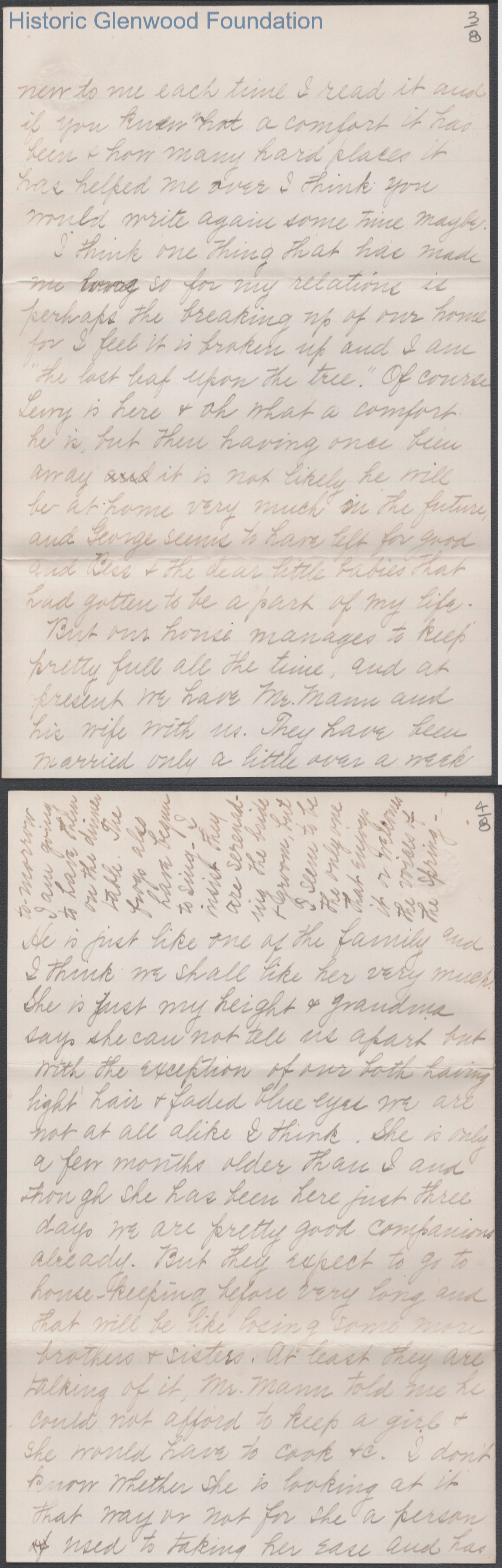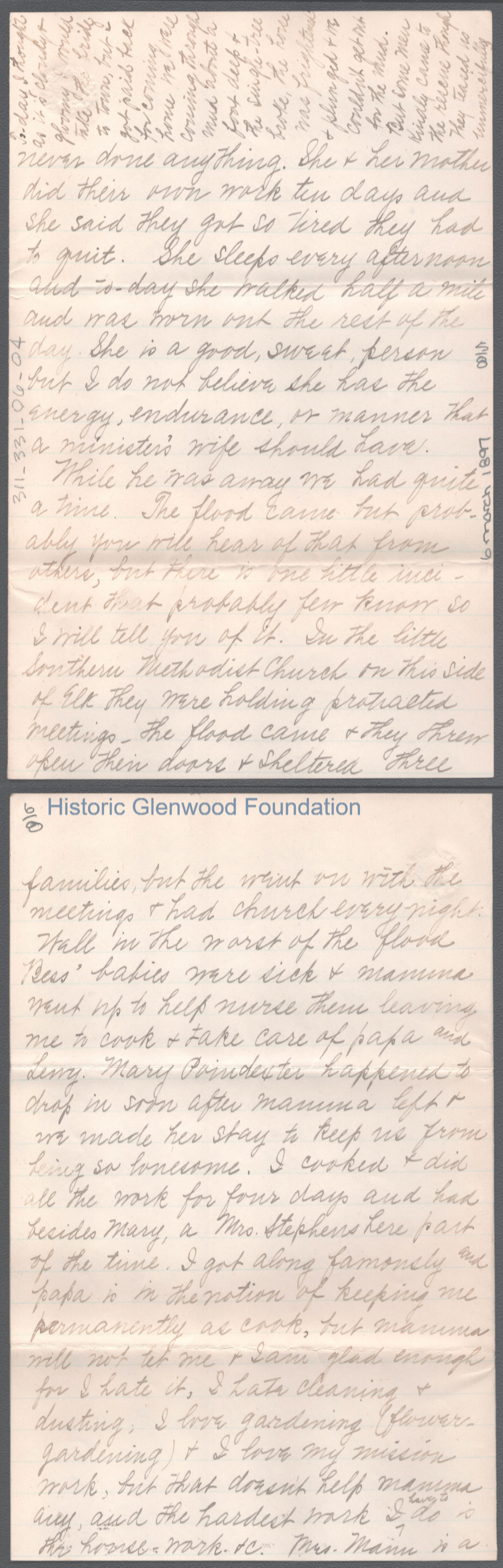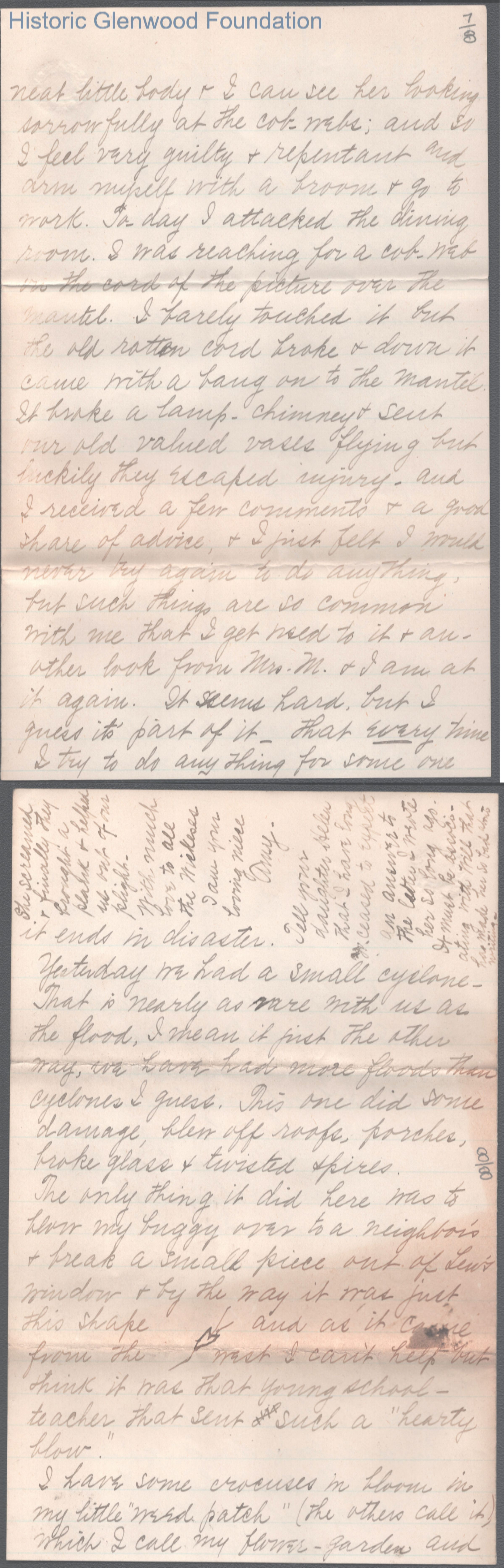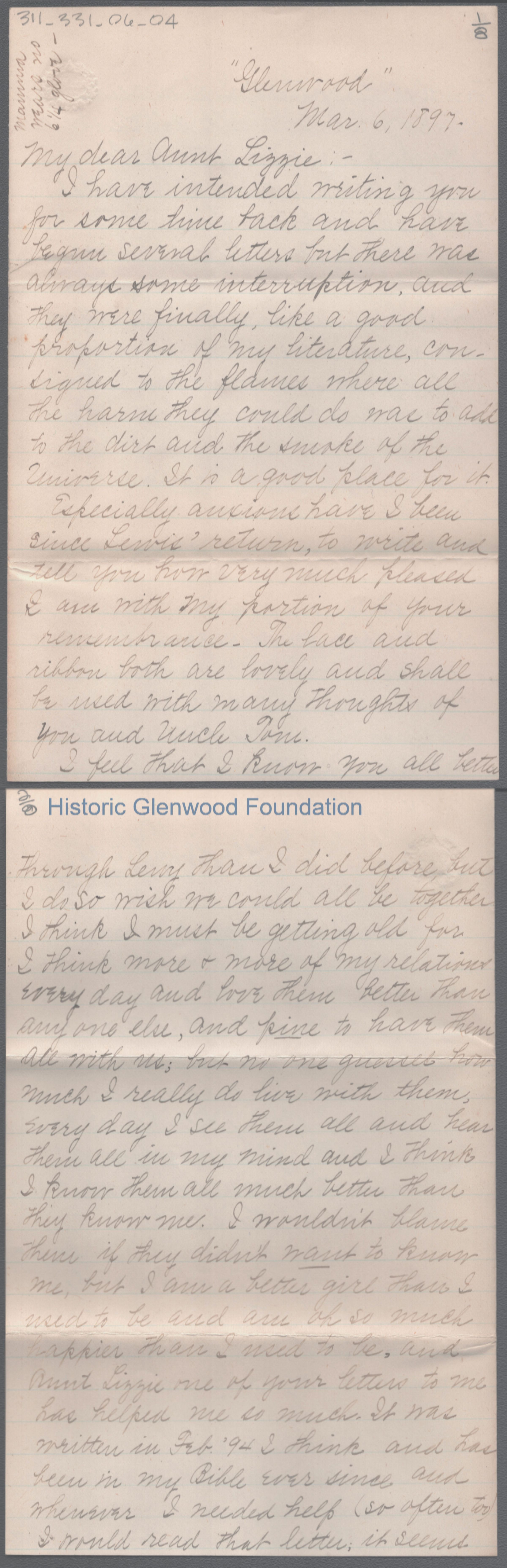 Eight-page letter from Amacetta Summers to her aunt Elizabeth W. Wickes, Mar 6, 1897.