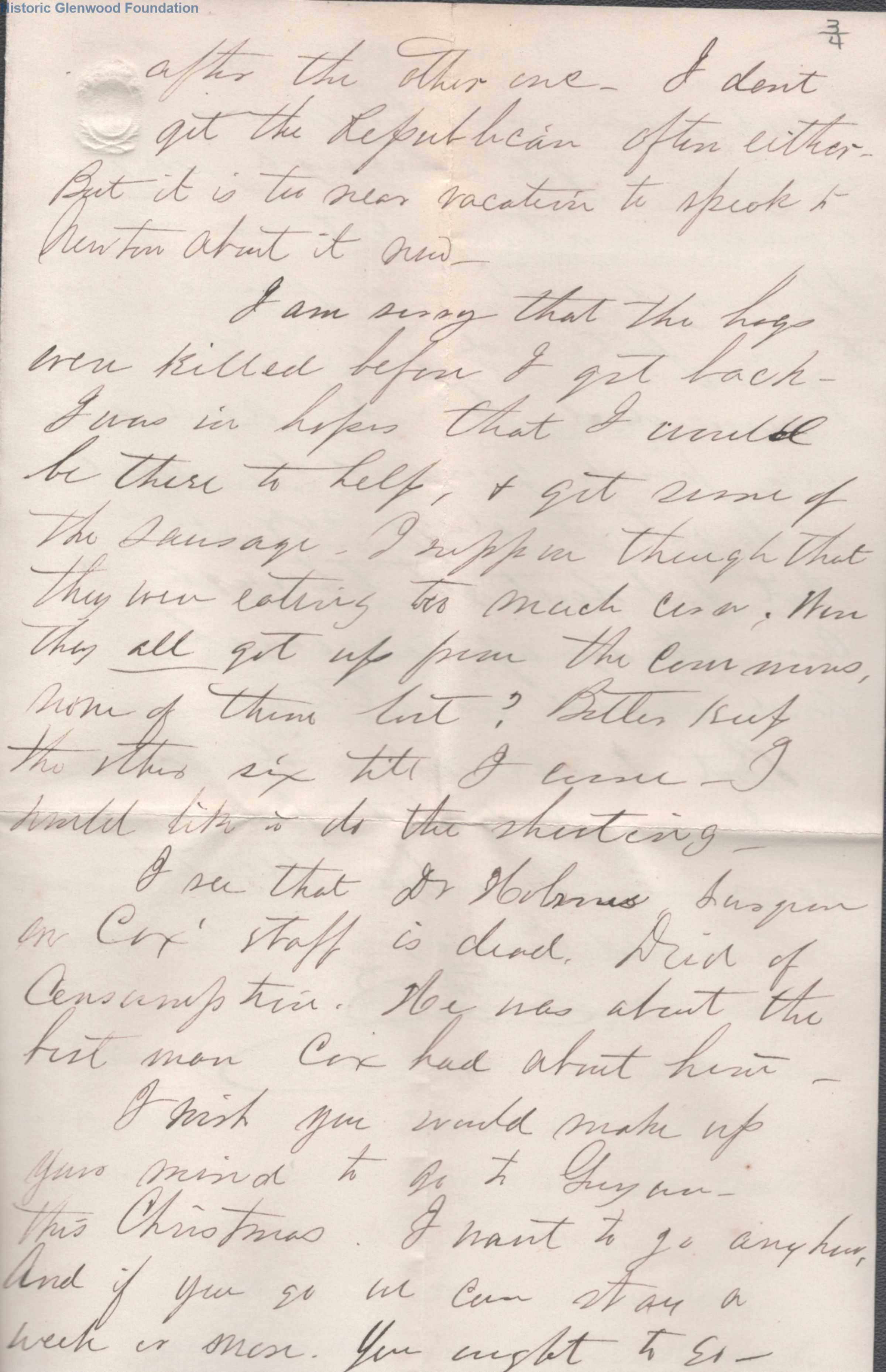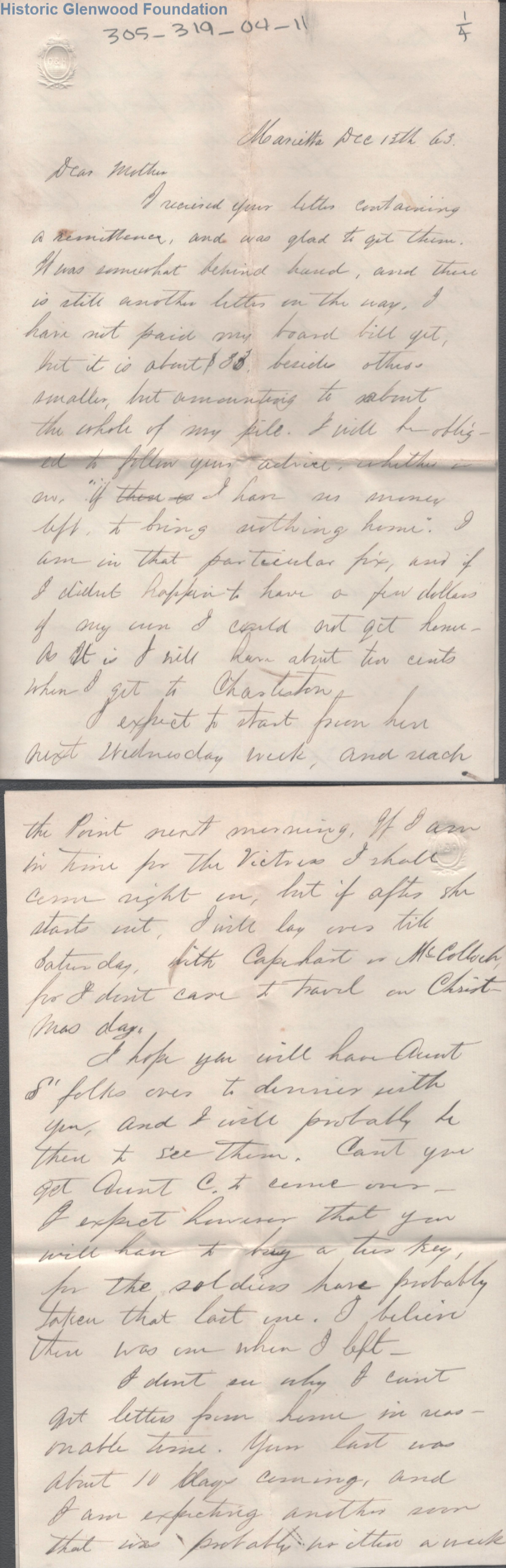 Four page letter & envelope to Amacetta L. Summers from her son, Lewis Summers