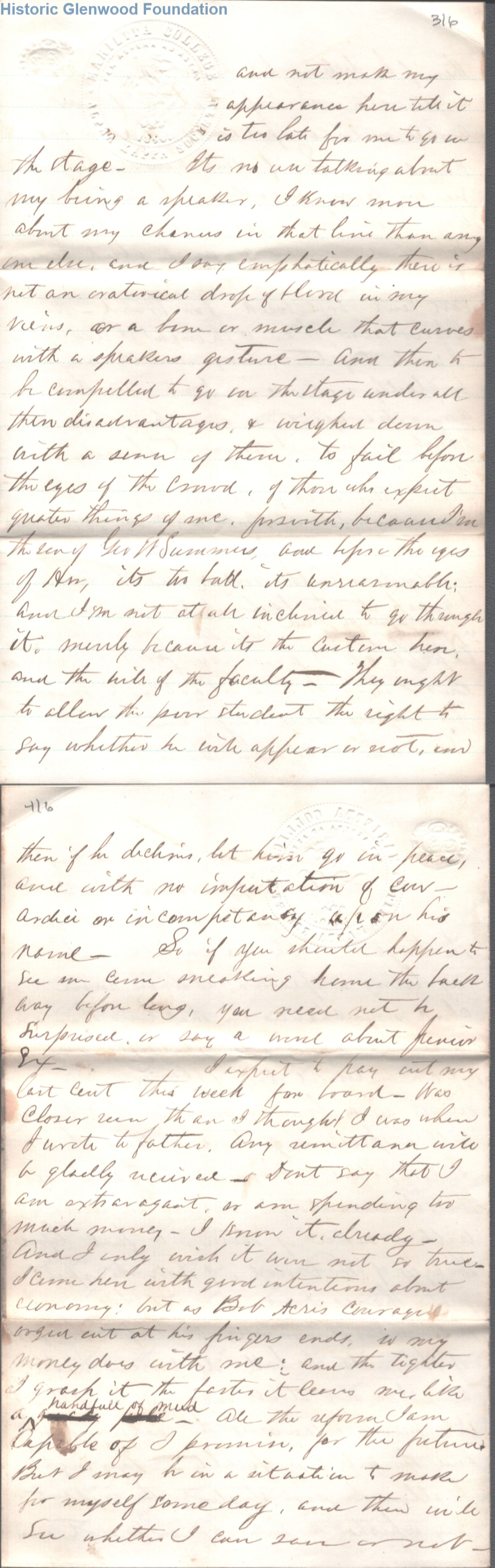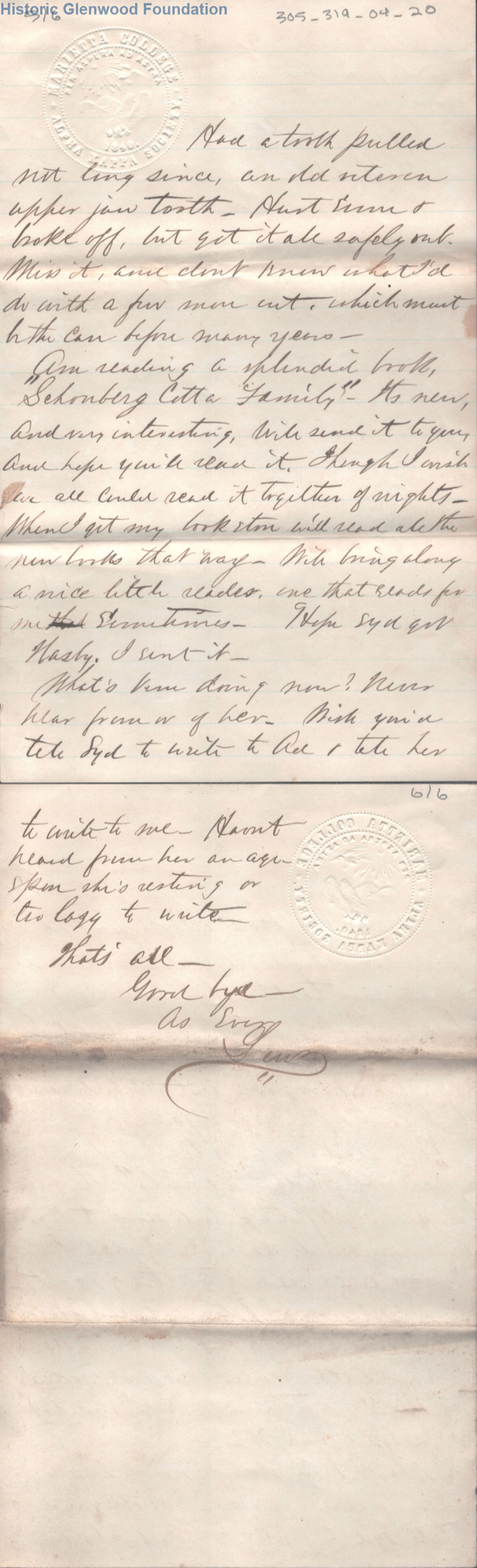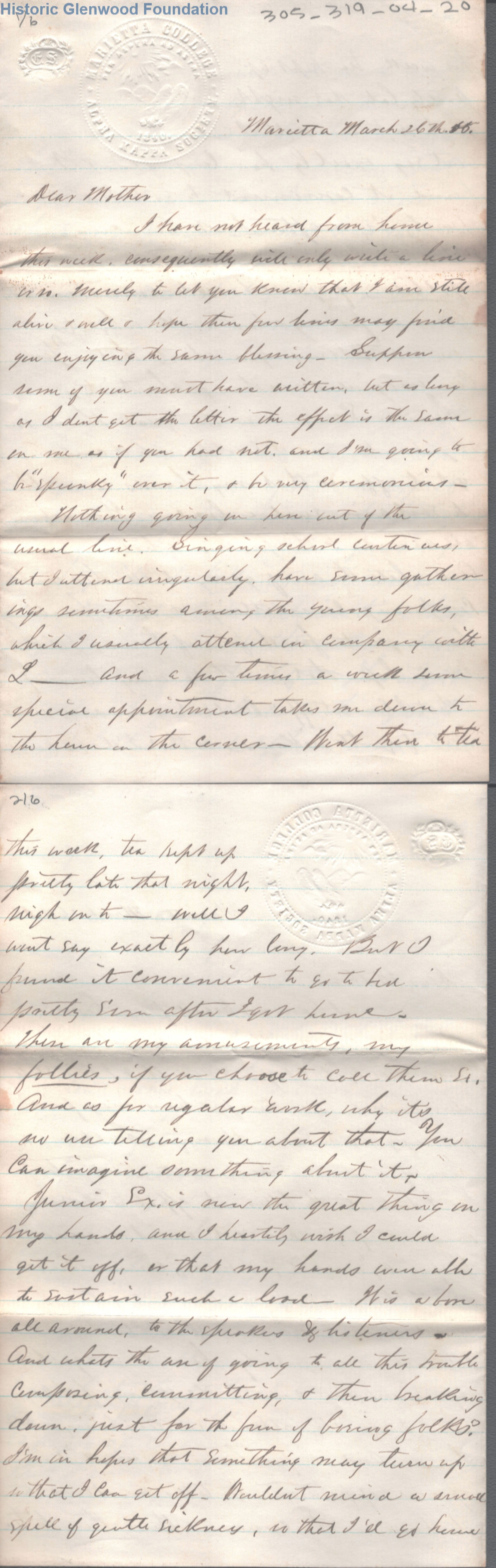 6-page letter to Amacetta L. Summers from her son, Lewis Summers