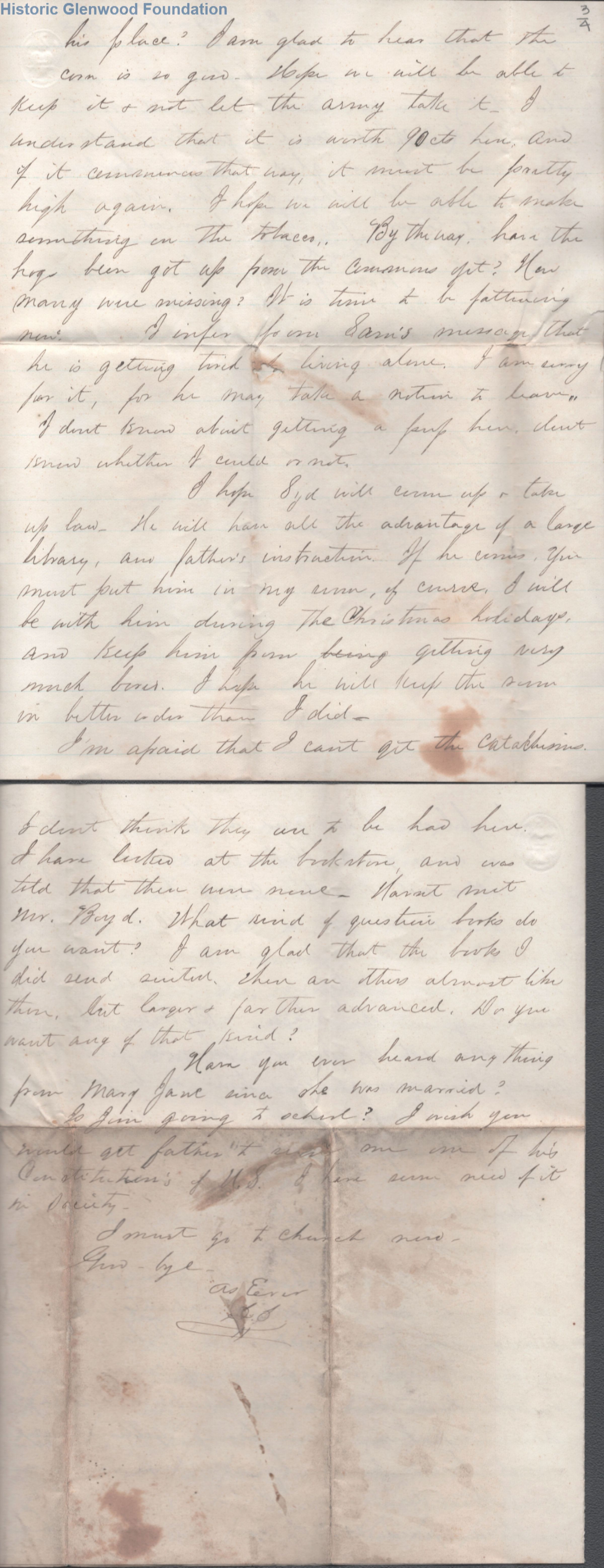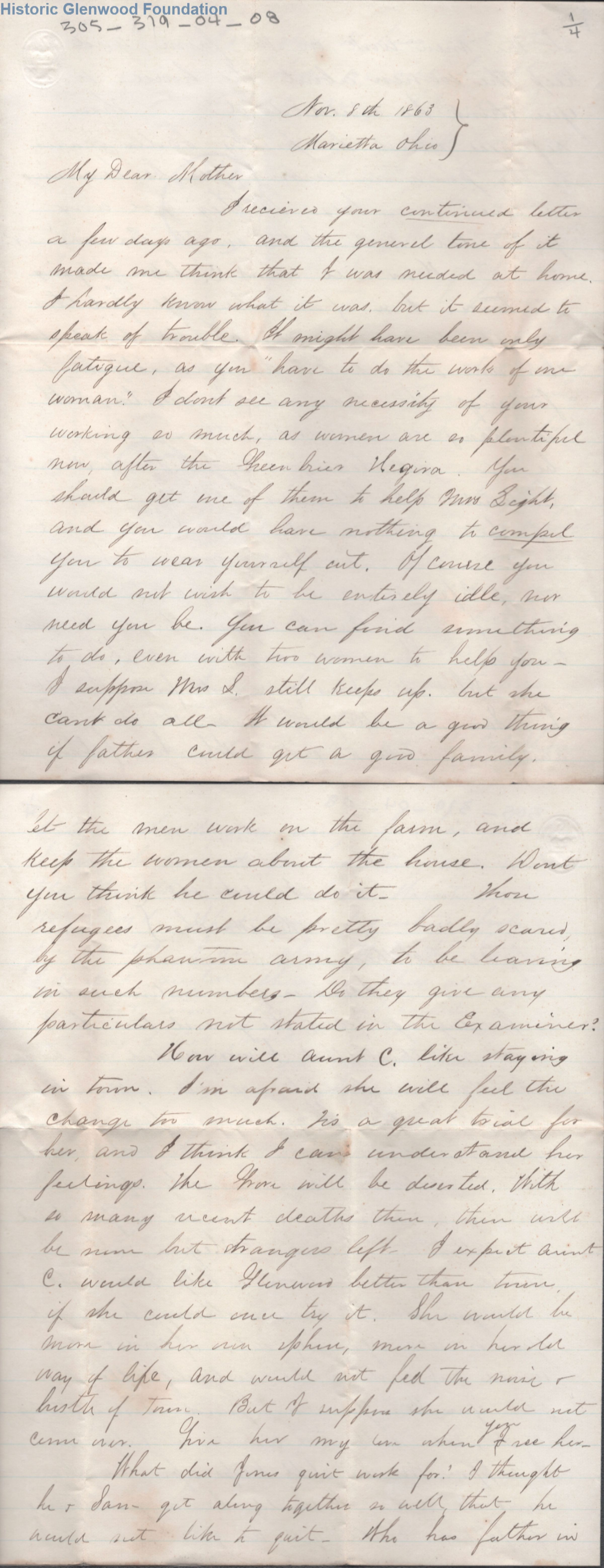 Four page letter & envelope to Amacetta L. Summers from her son, Lewis Summers