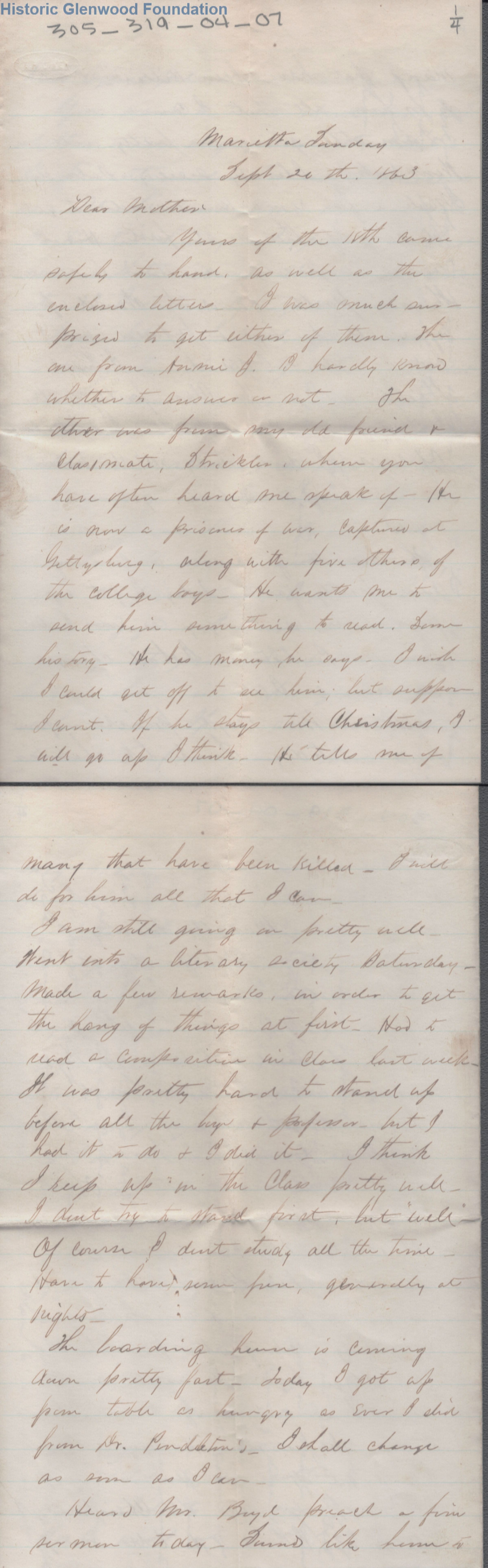 Four page letter & envelope to Amacetta L. Summers from her son, Lewis Summers