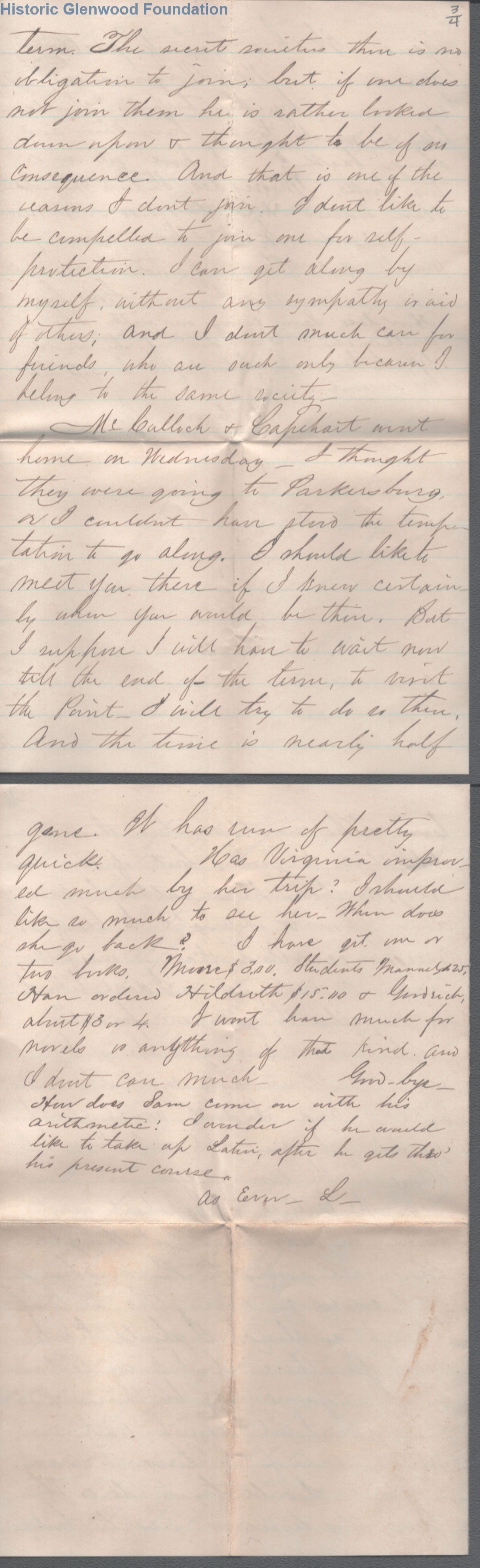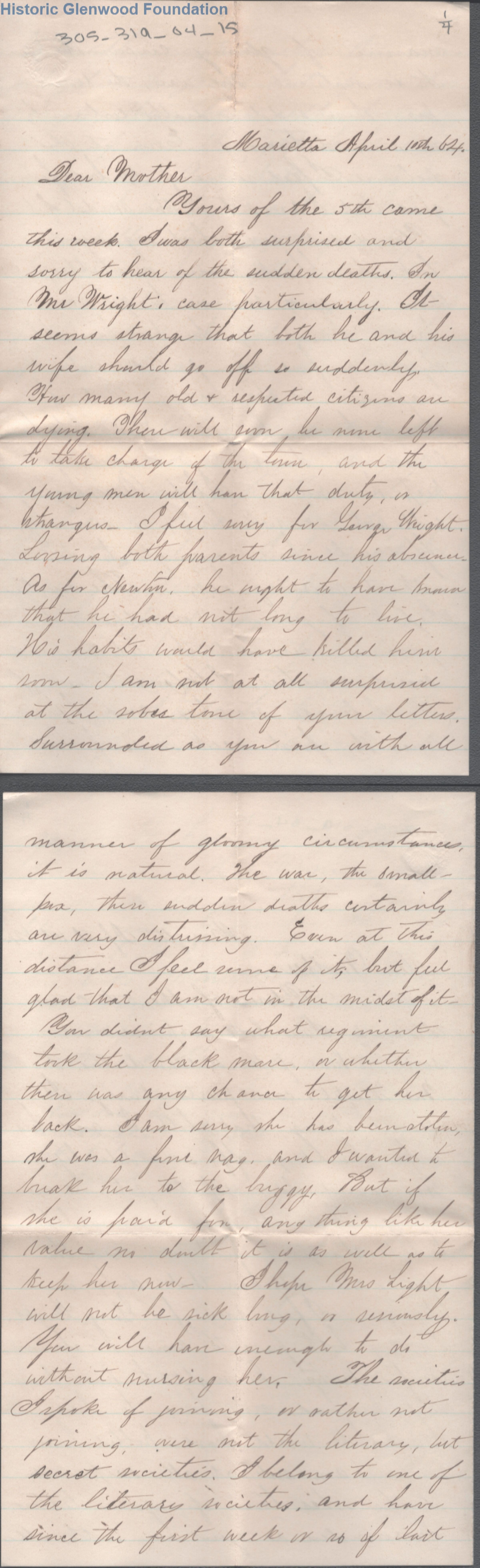 4-page letter to Amacetta L. Summers from her son, Lewis Summers