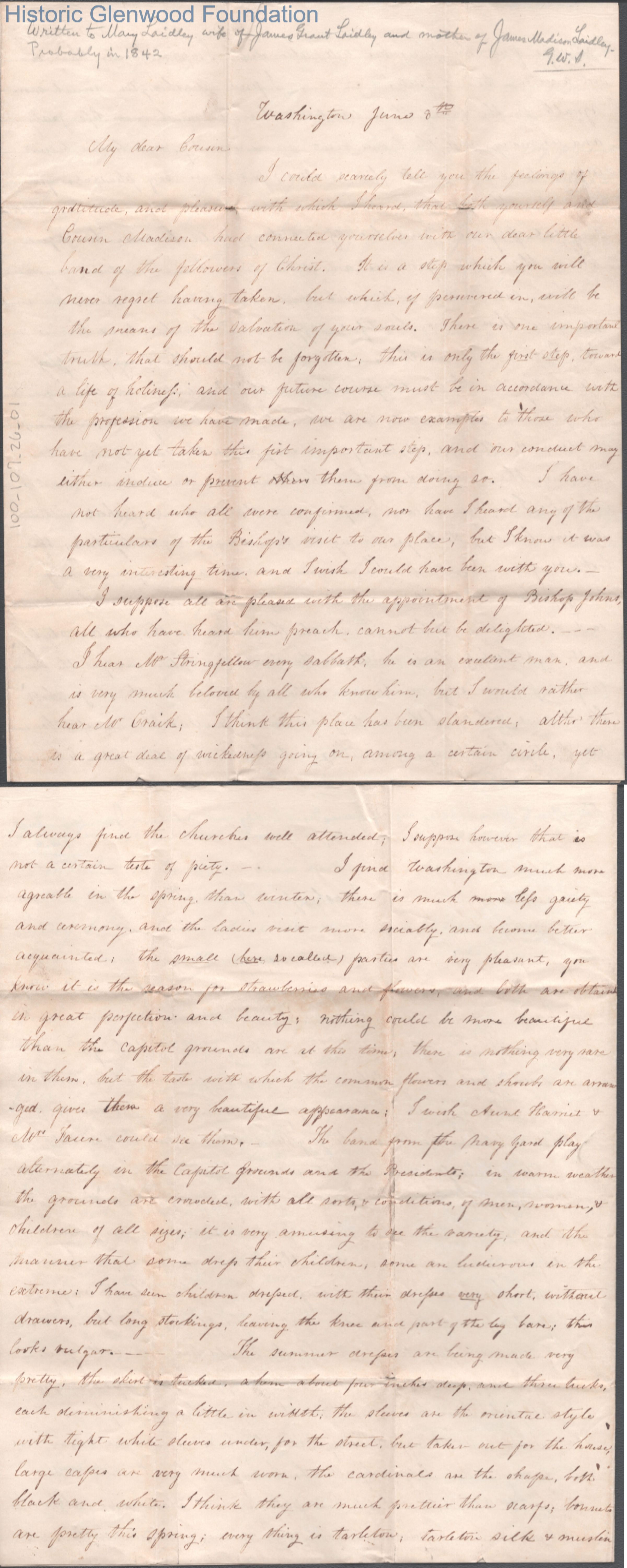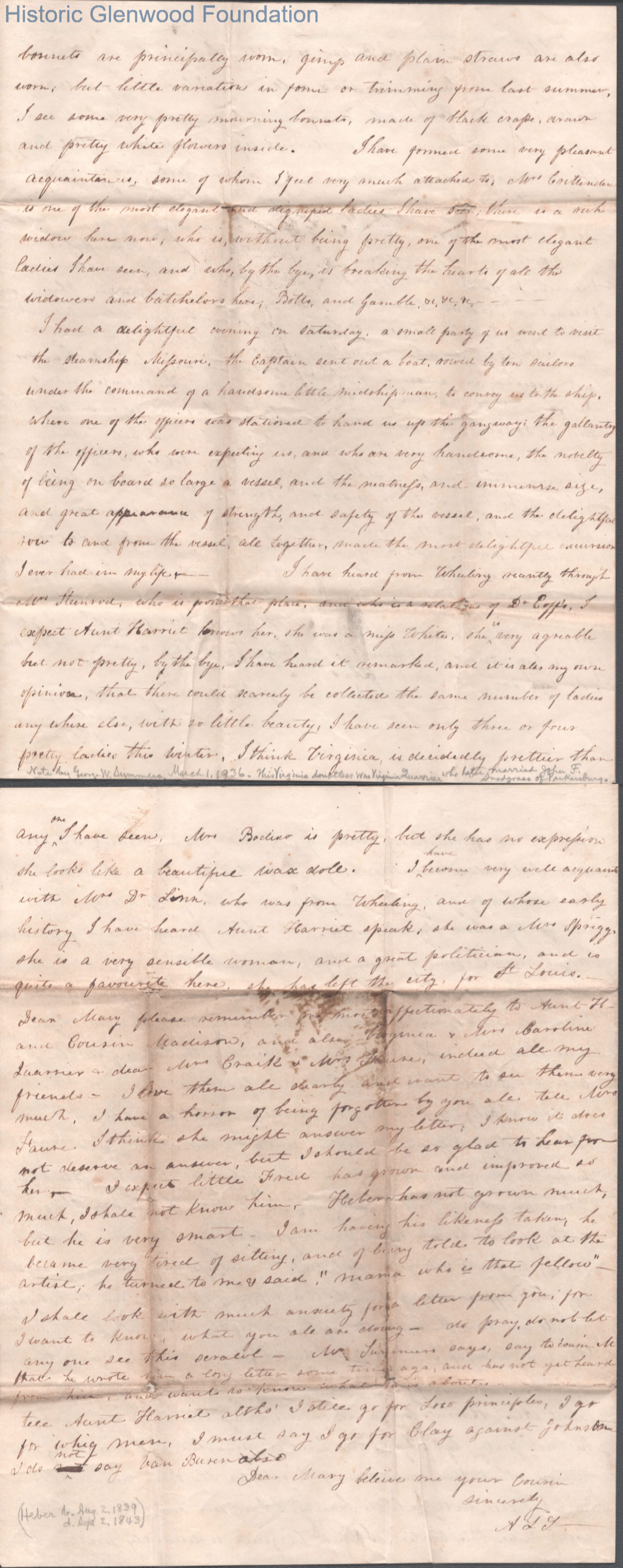 Amacetta Laidley Summers to "Cousin," probably Anna Maria "Mary" Laidley, 1842?Entry/Object ID