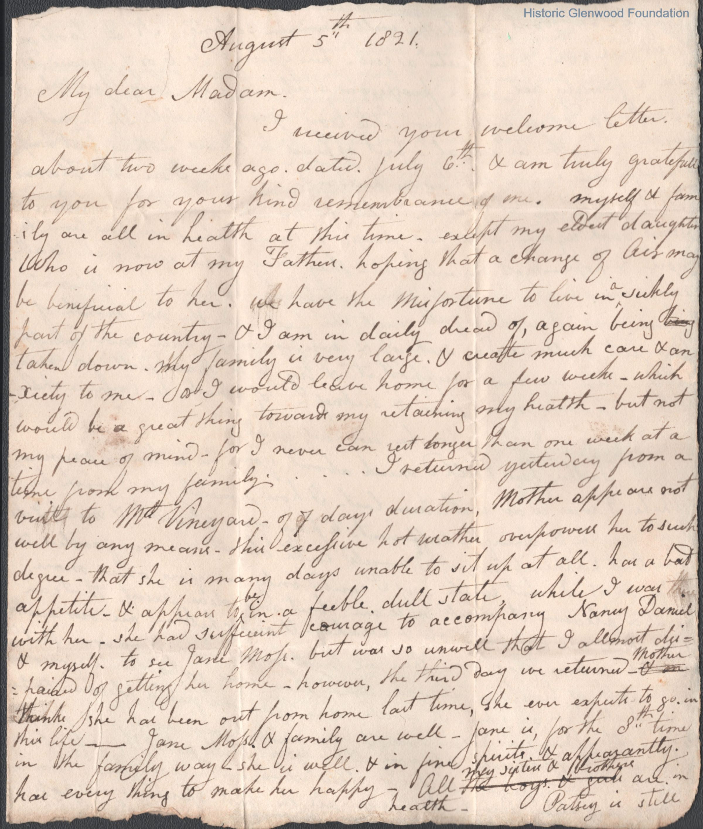 Ann "Nancy Summers, 1821 letter from Penelope JacksonEntry/Object ID
