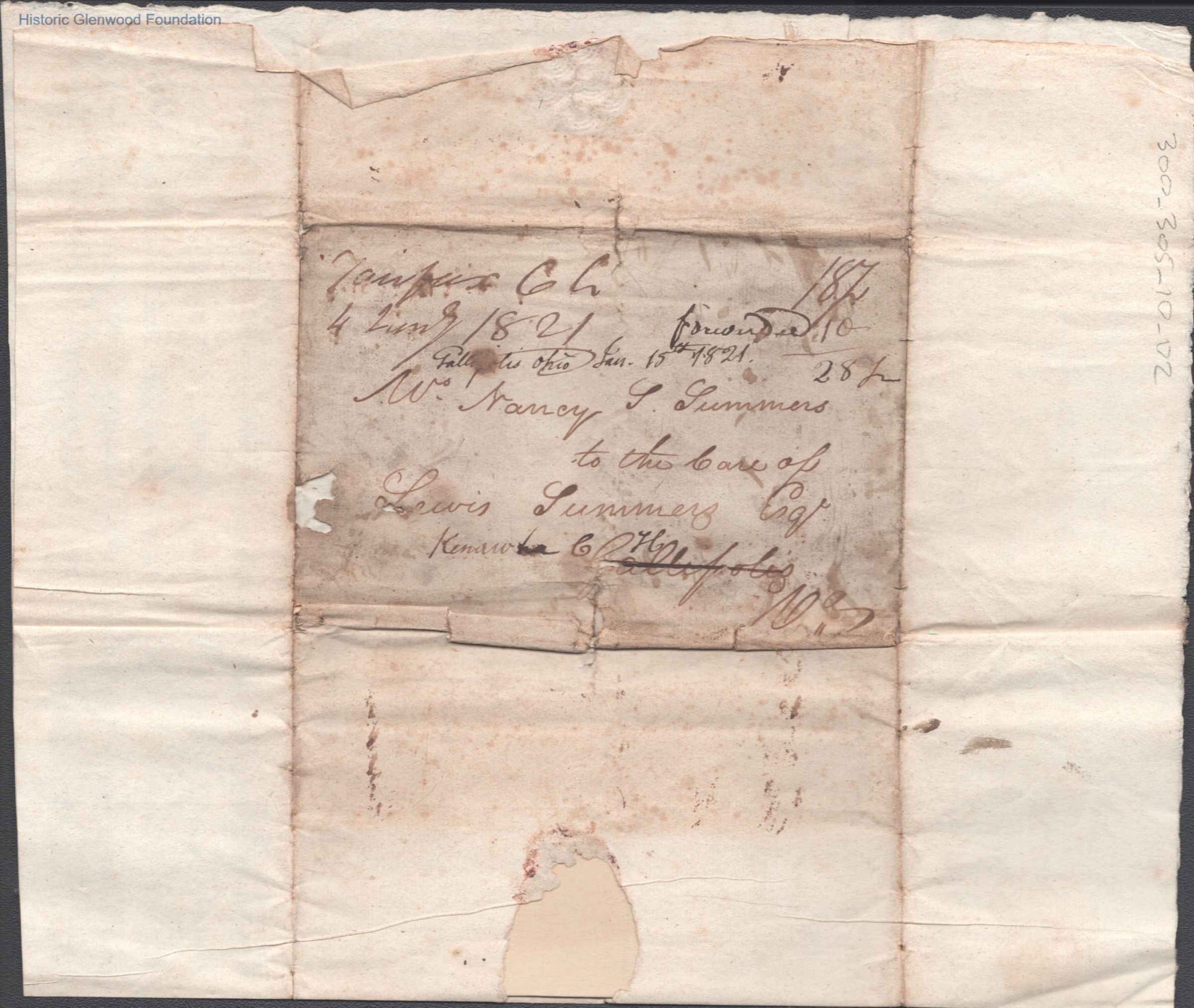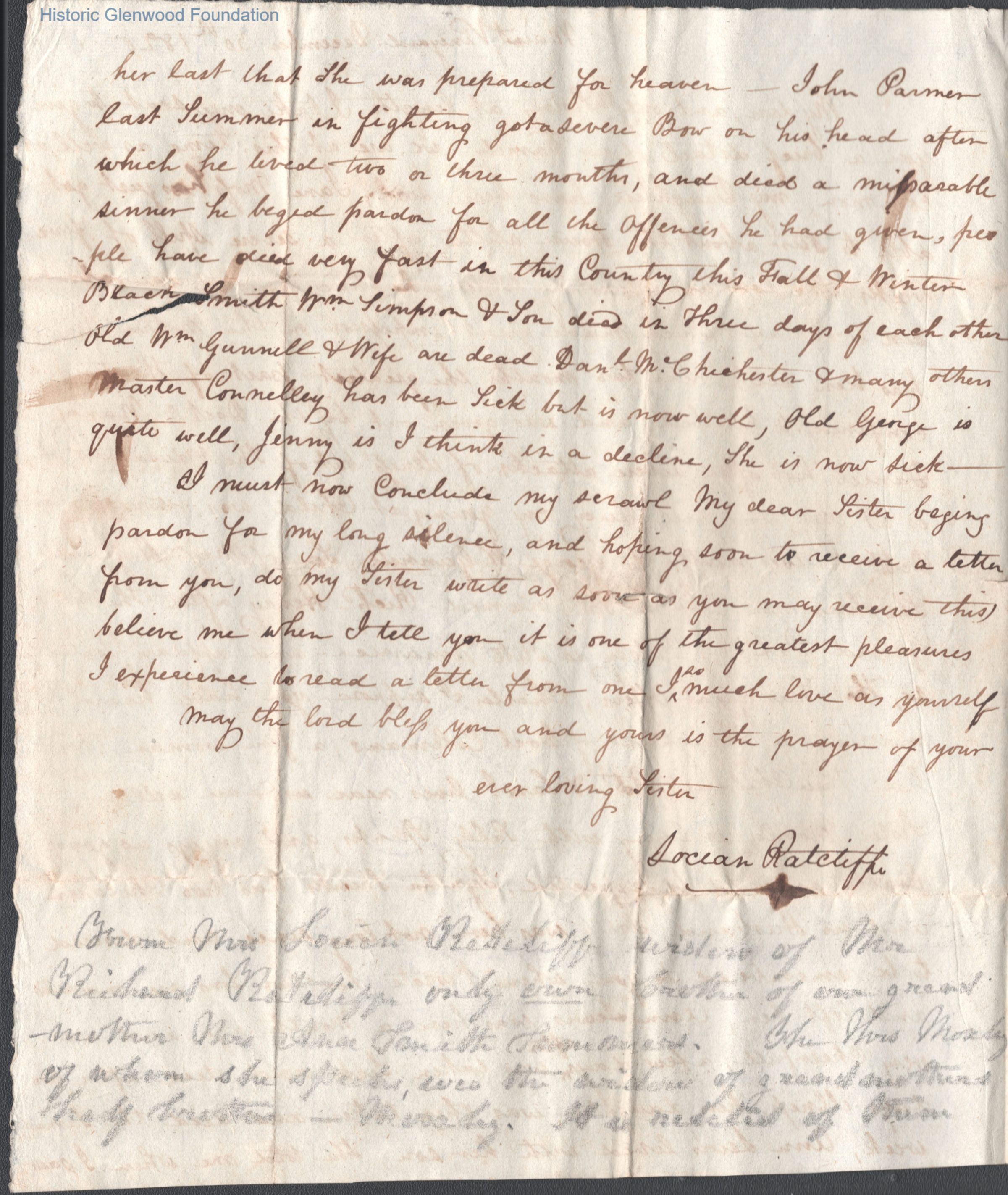Ann "Nancy" Summers, correspondence from sister, Locian Ratcliff (?)Entry/Object ID