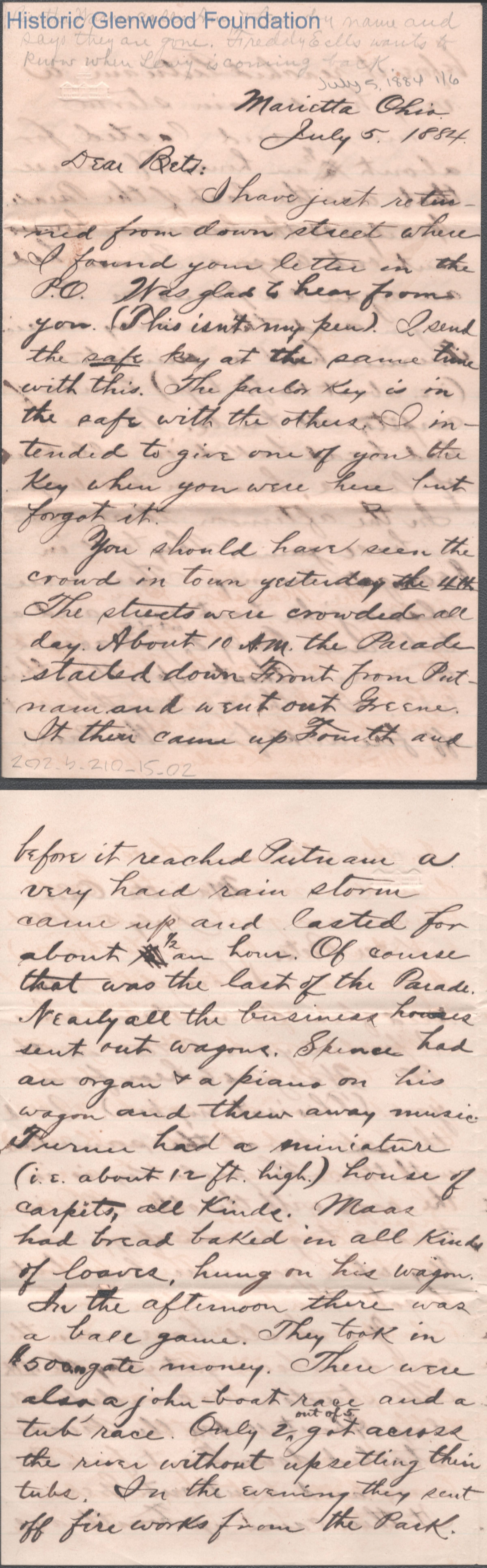 Six-page letter to Elizabeth S. Quarrier from George W. Summers, Jul 5, 1884.