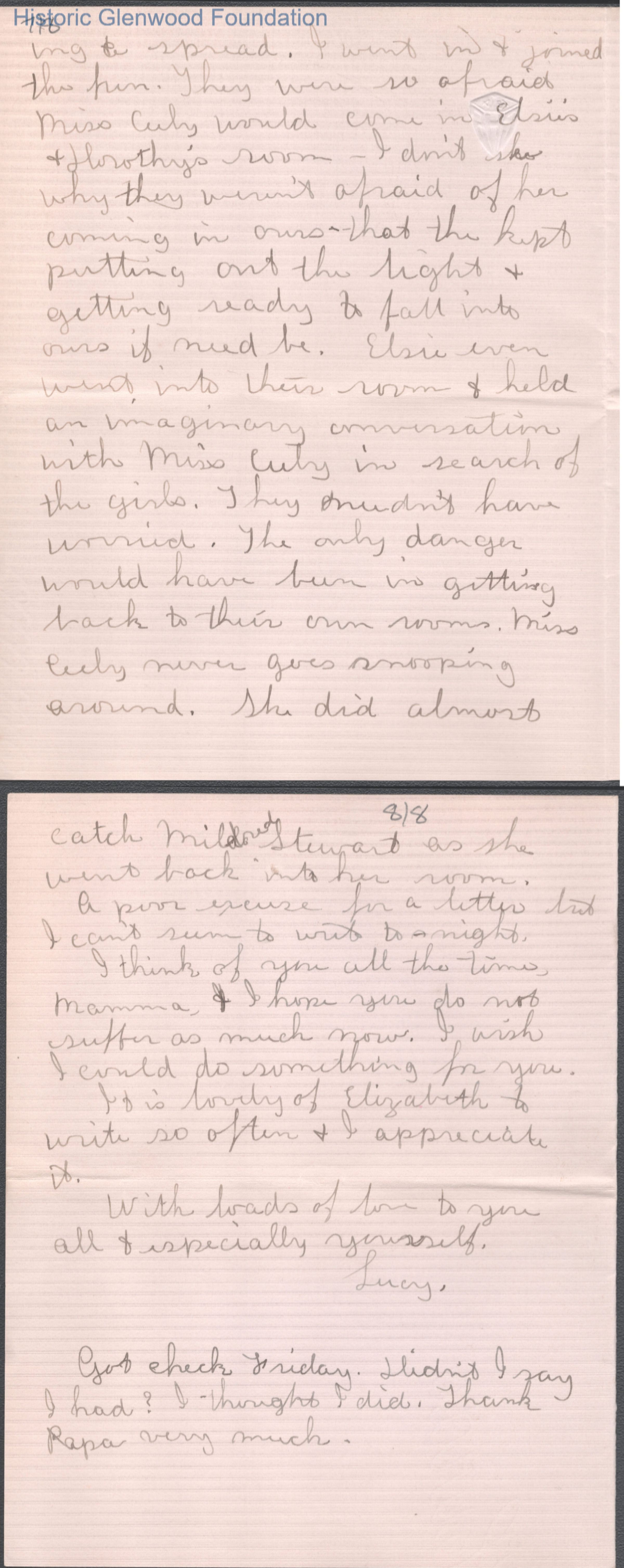 Eight-page letter to Elizabeth S. Quarrier from Lucy S. Quarrier, Mar 14, 1915.