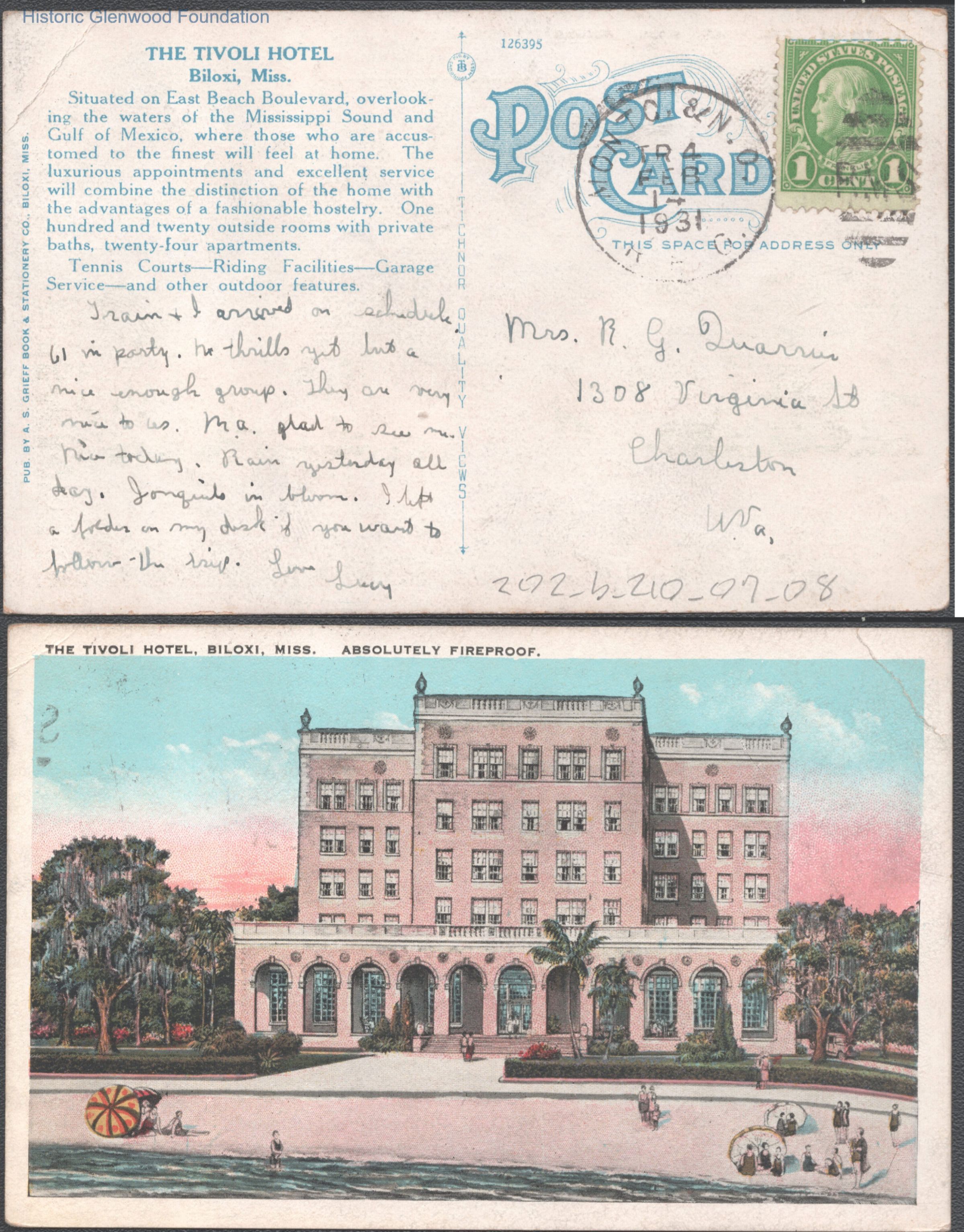 Postcard to Elizabeth S. Quarrier from Lucy S. Quarrier, Feb 14. 1931