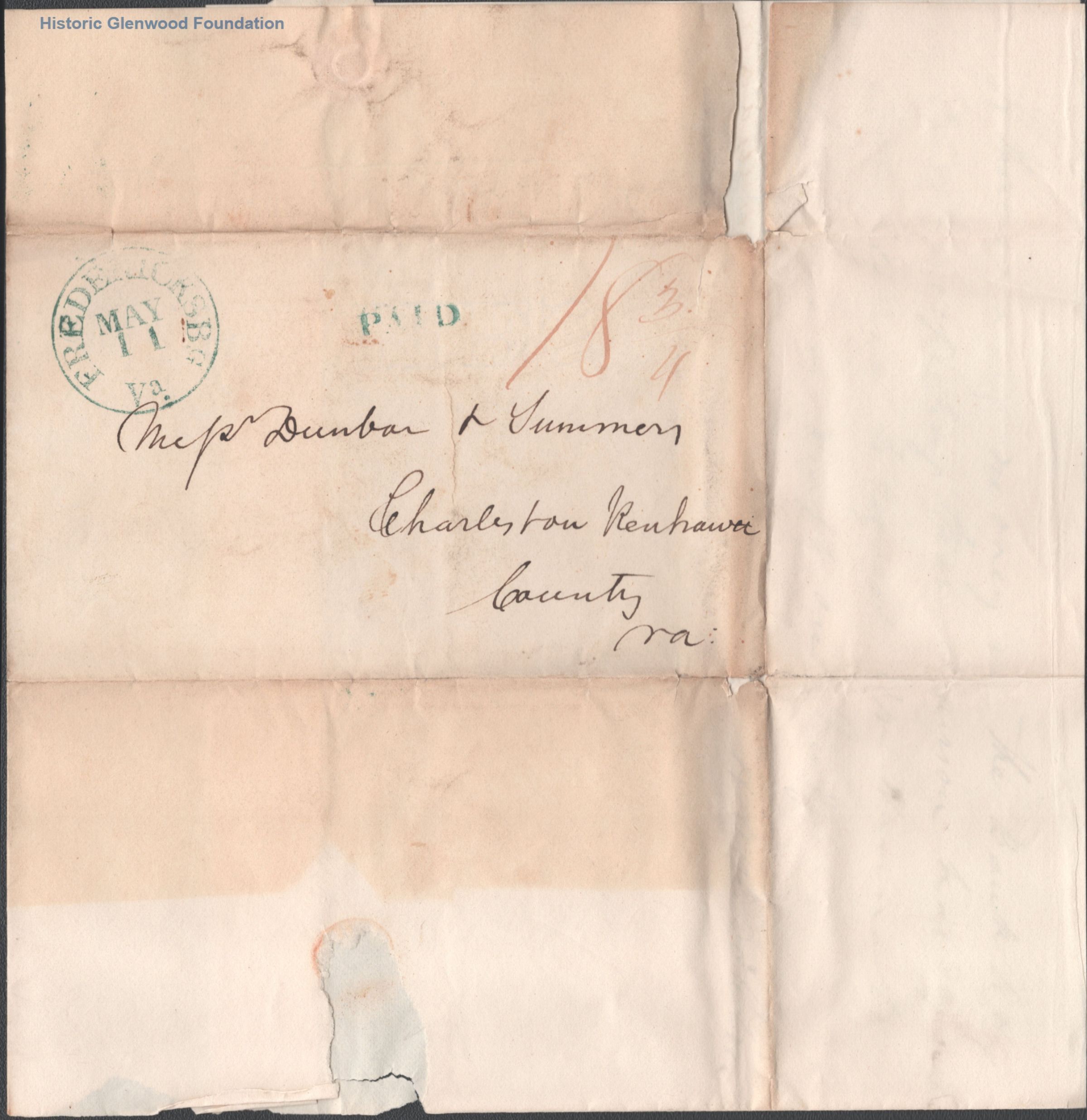 Business correspondence to Judge George Summers & Matthew Dunbar, author illegible; May 10, 1834Entry/Object ID