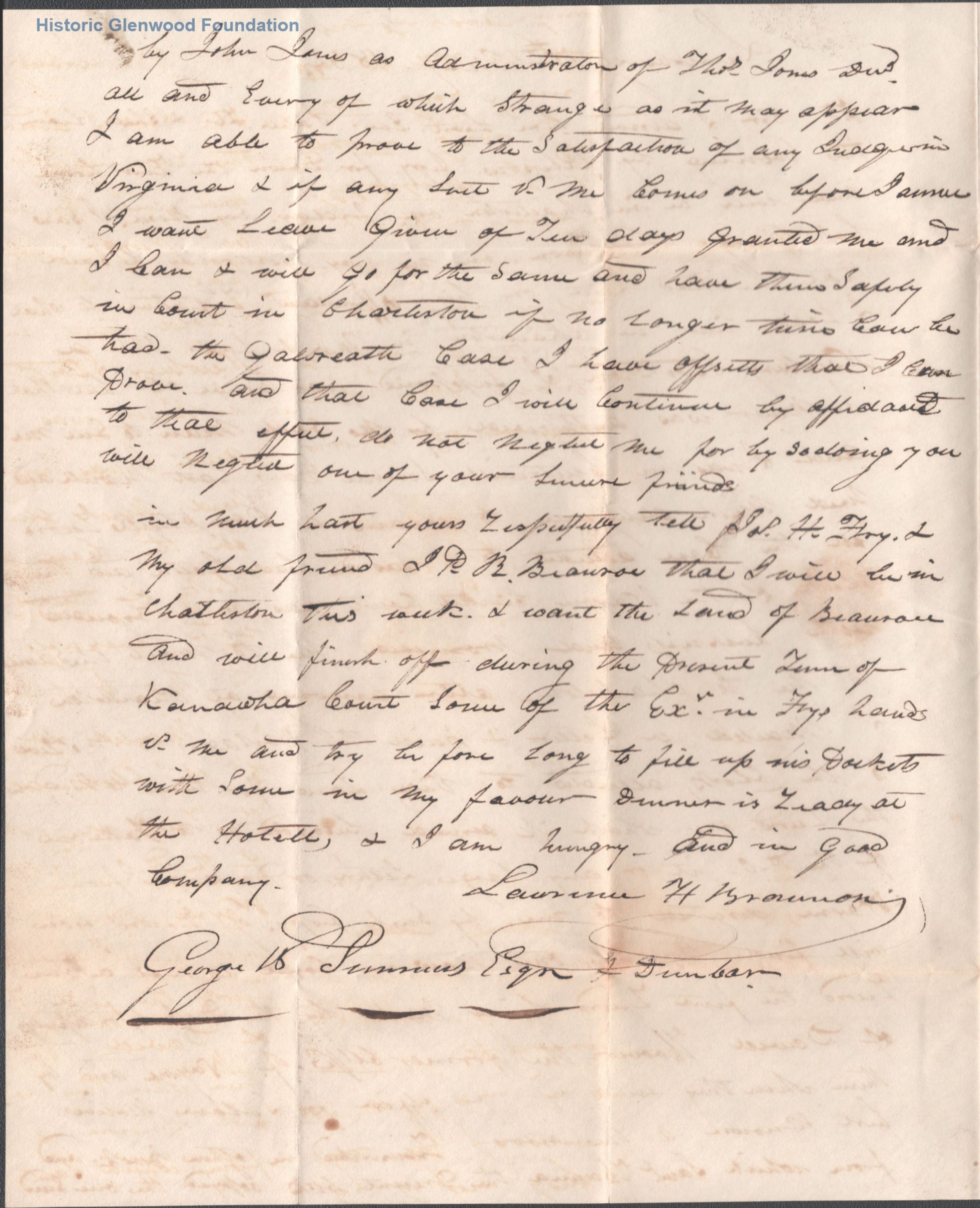 Business correspondence to Judge George Summers & Matthew Dunbar from Lawrence Browning, May 15, 1834Entry/Object ID