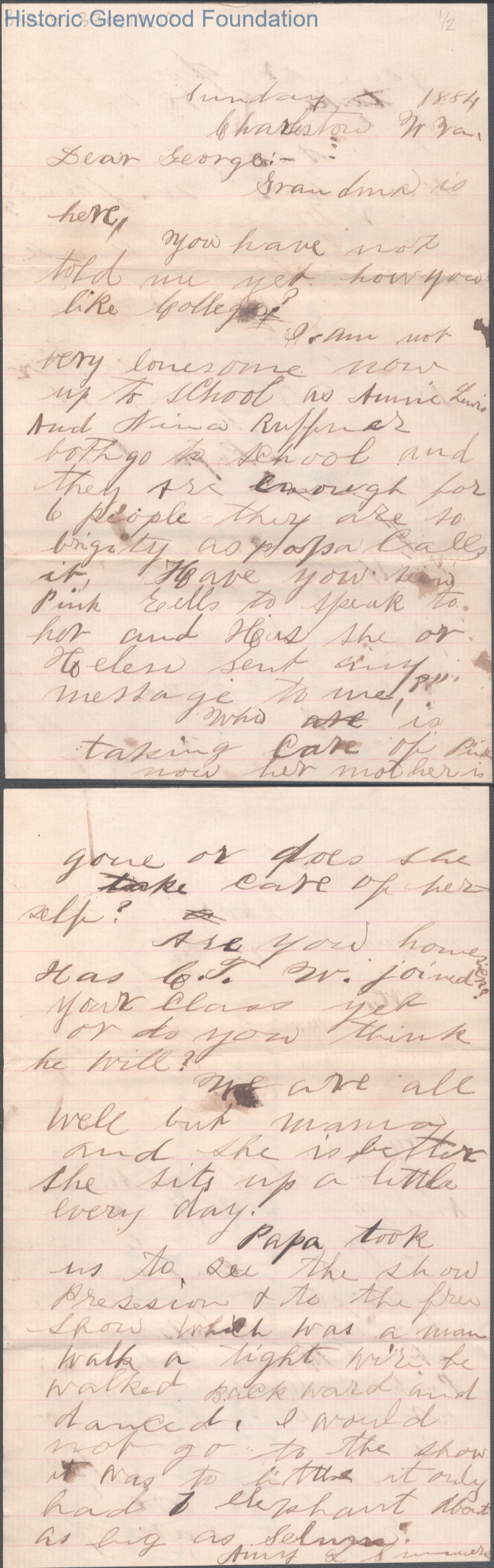 Two-page letter to George W. Summers from his sister Amacetta Summers, c. 1884.