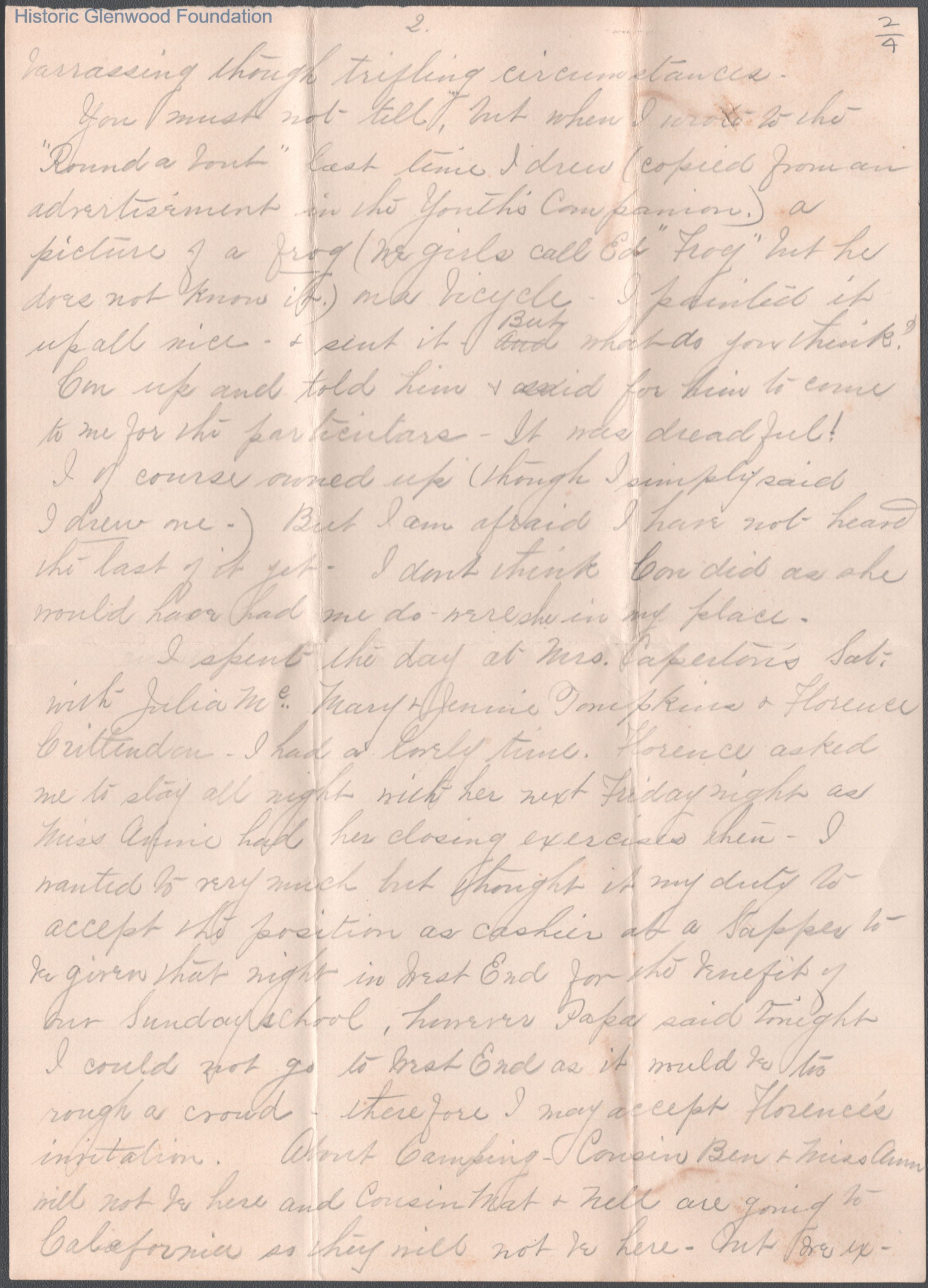 Four-page letter to Russell G. Quarrier from Elizabeth S. Quarrier, Jun 5, 1888.