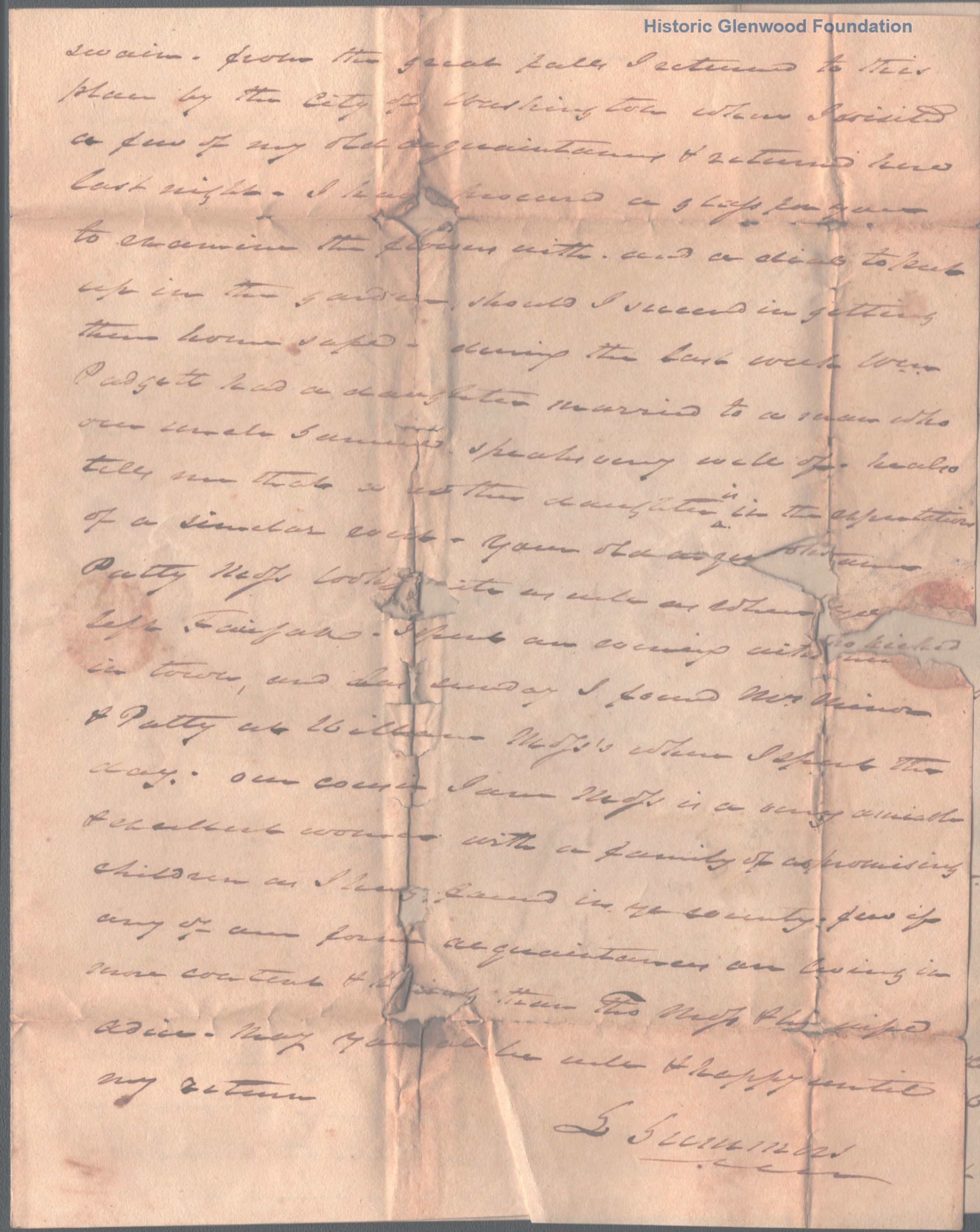 Three page letter to Celina Summers from brother, Judge Lewis Summers