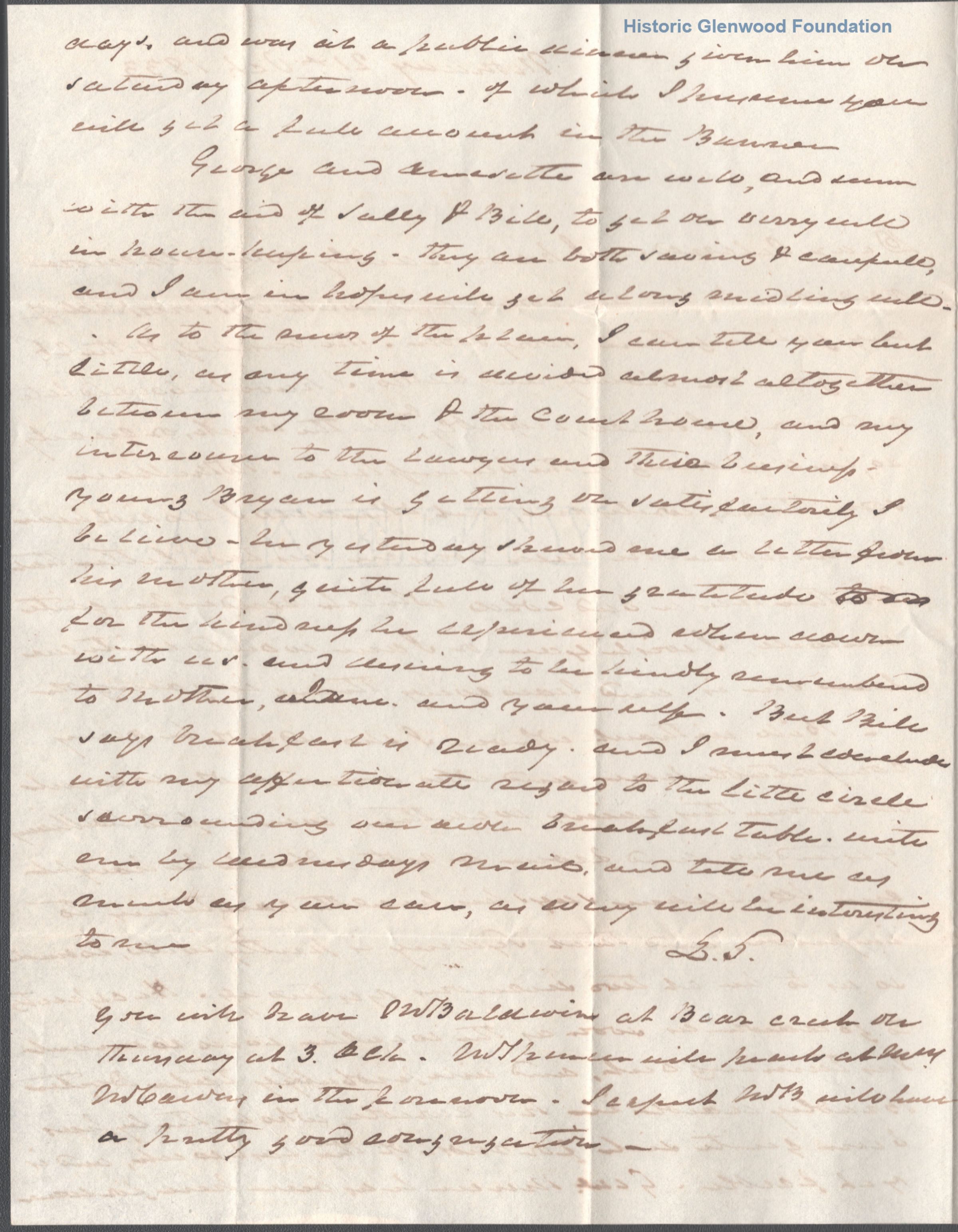 Two page letter to Celina Summers from brother, Judge Lewis Summers