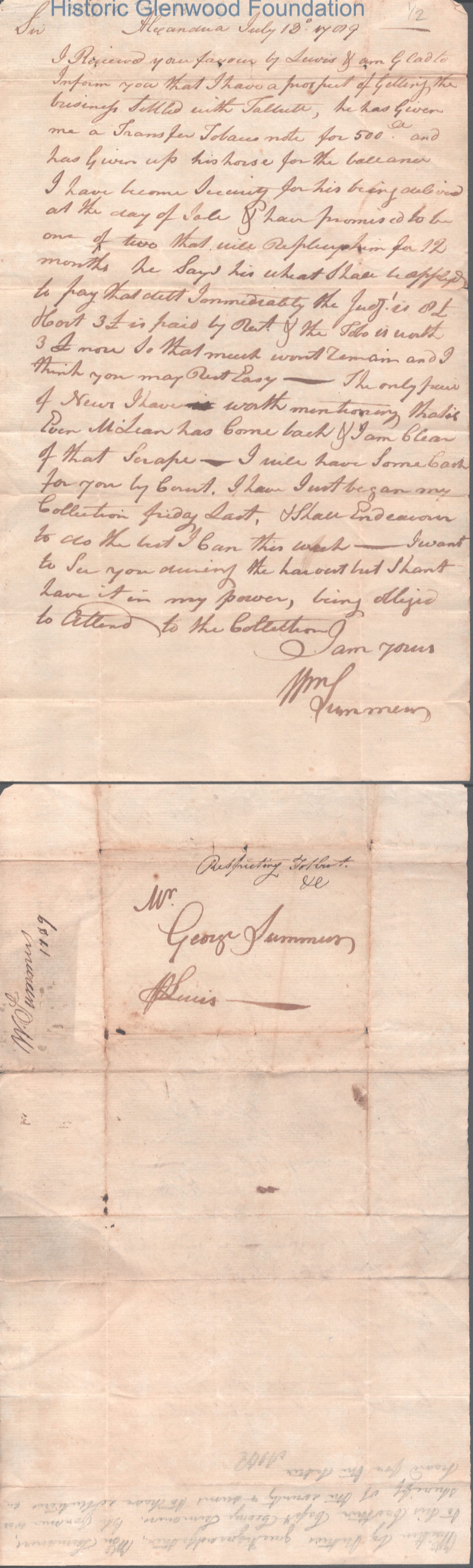 Col. George Summers from William S. Summers, Jul 13, 1789