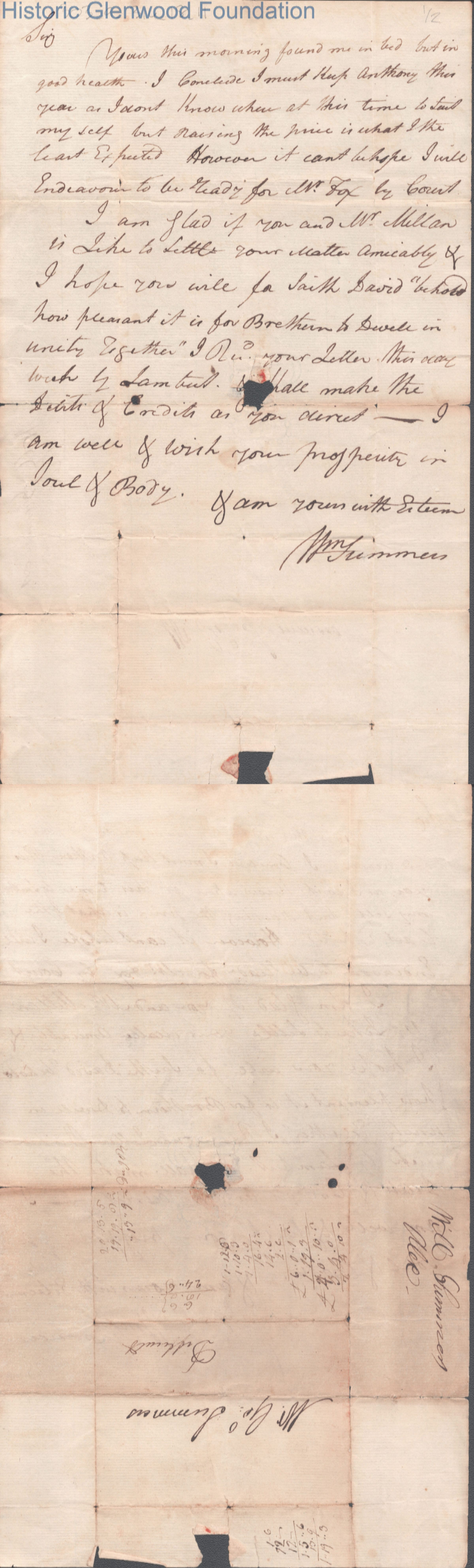 Single page letter to Col. George Summers from his brother William S. Summers, no date. Col. George Summers was the father of Judge Lewis and Judge George Summers.