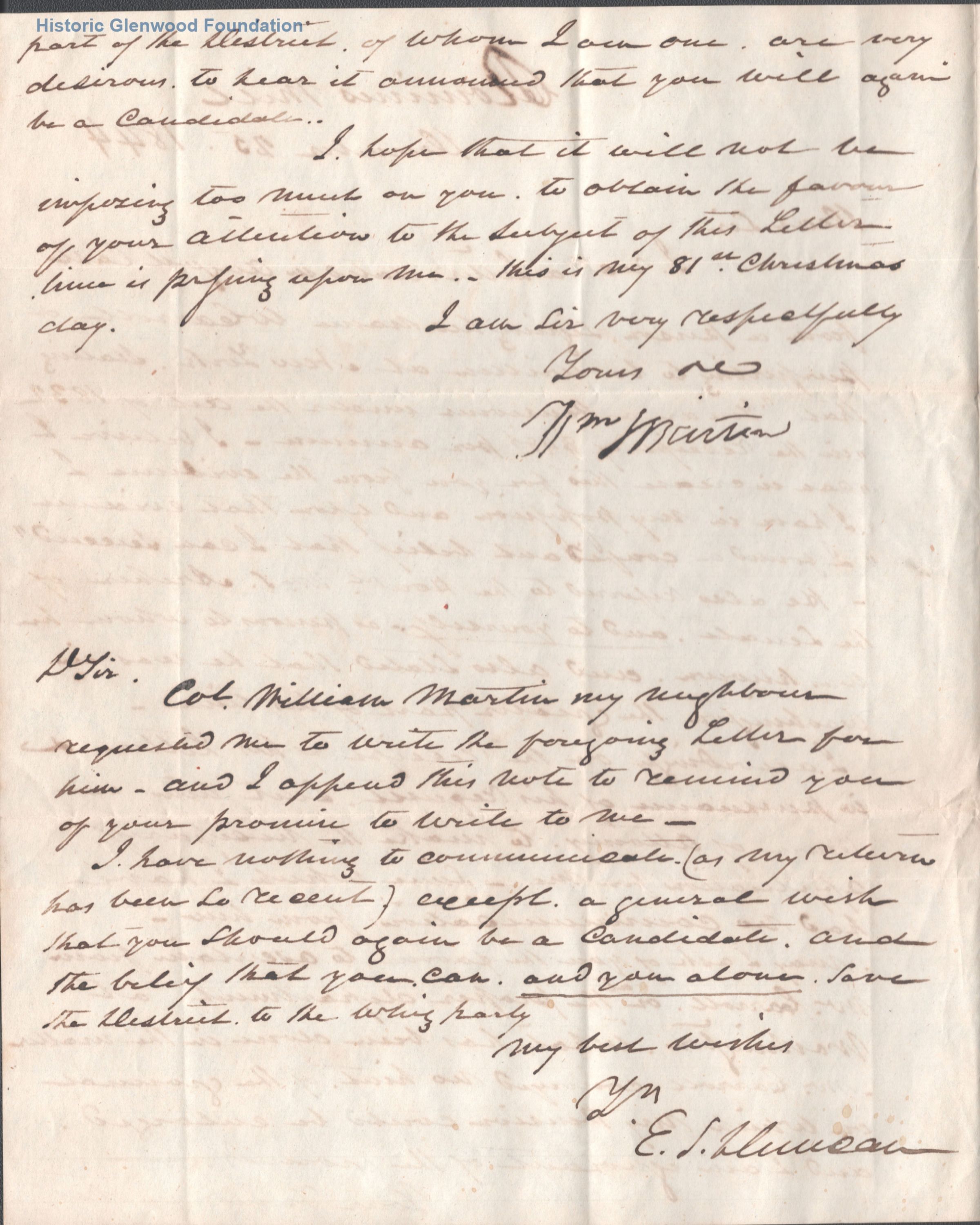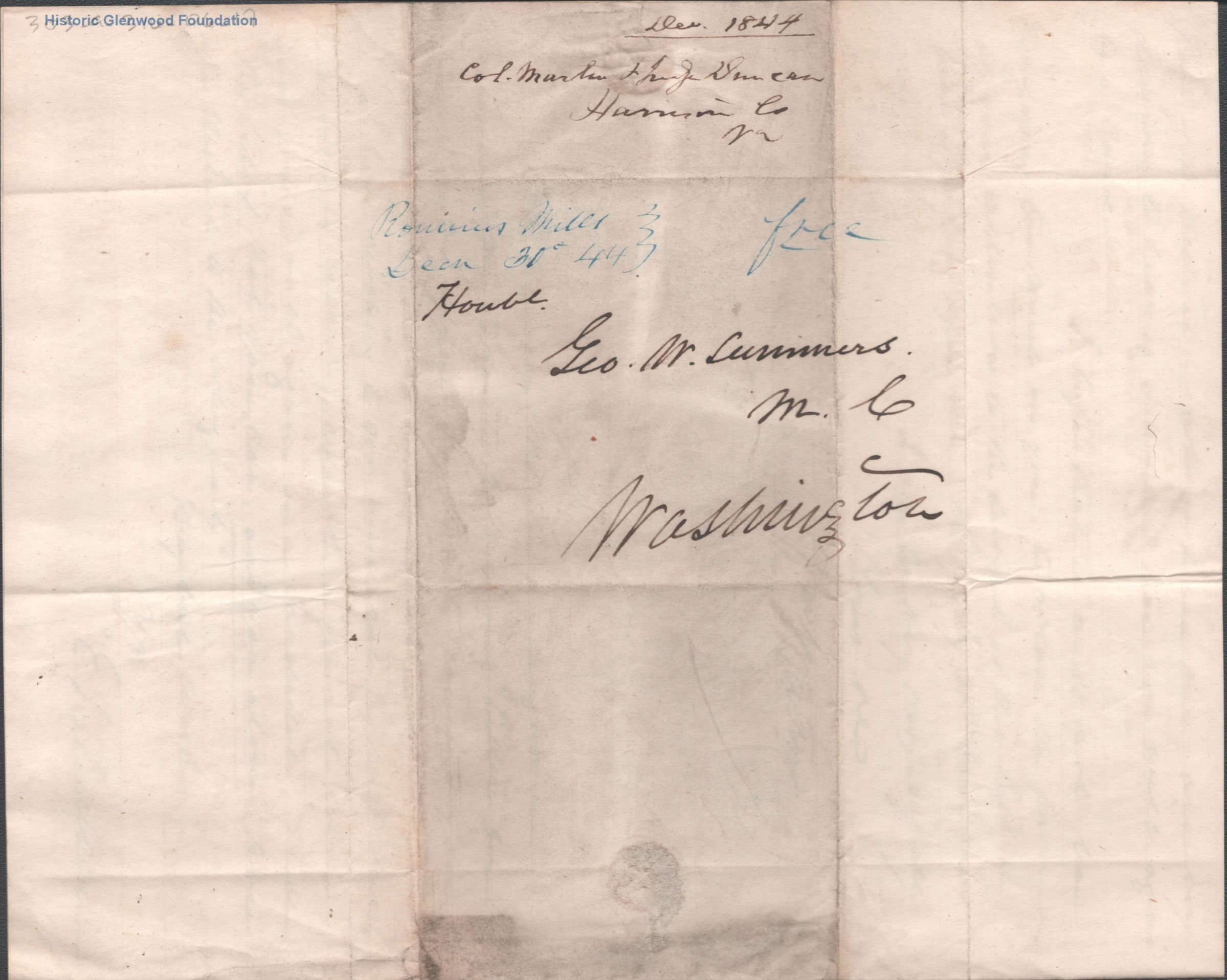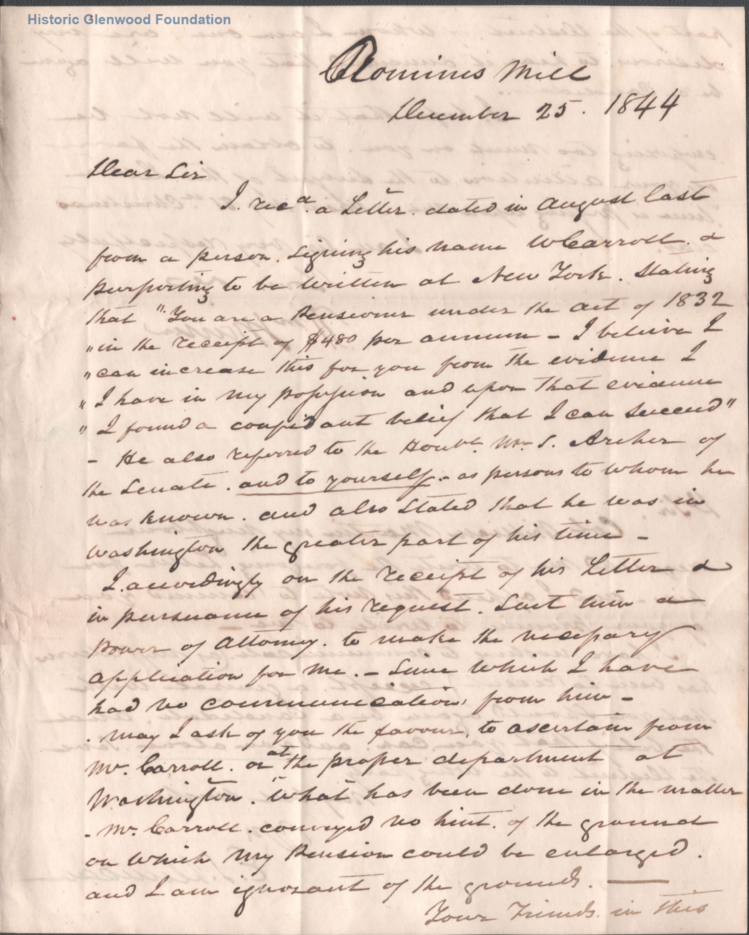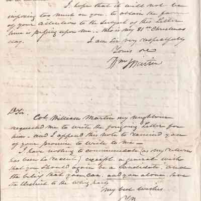 Letter from Col. Martin written by Joseph Duncan in Harrison County, VA., to George Summers in Washington, DC, requesting his assistance in following up on a pension case.