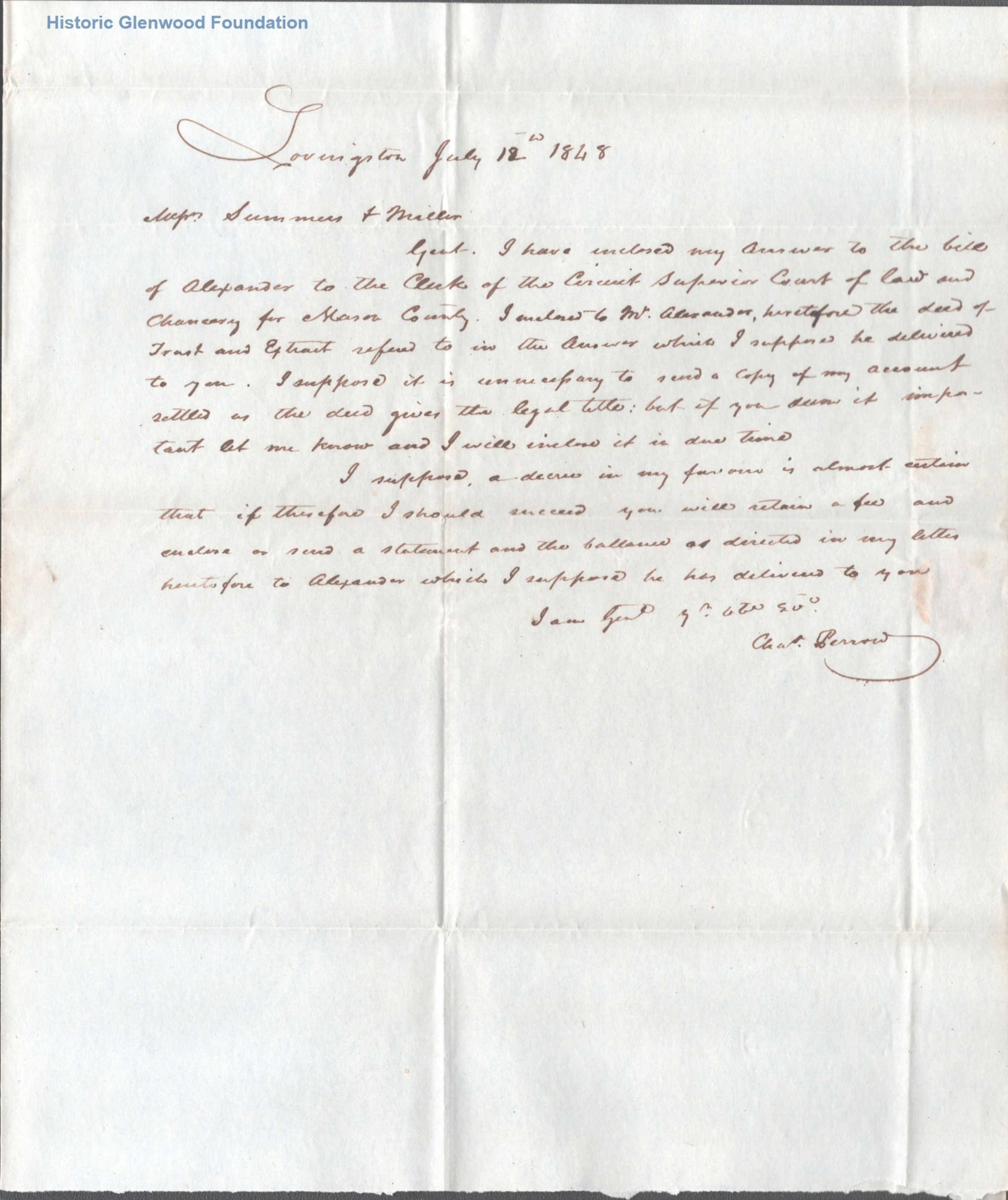 Correspondence from legal client of Summers & Miller: Charles Perrow; July 12, 1848Entry/Object ID