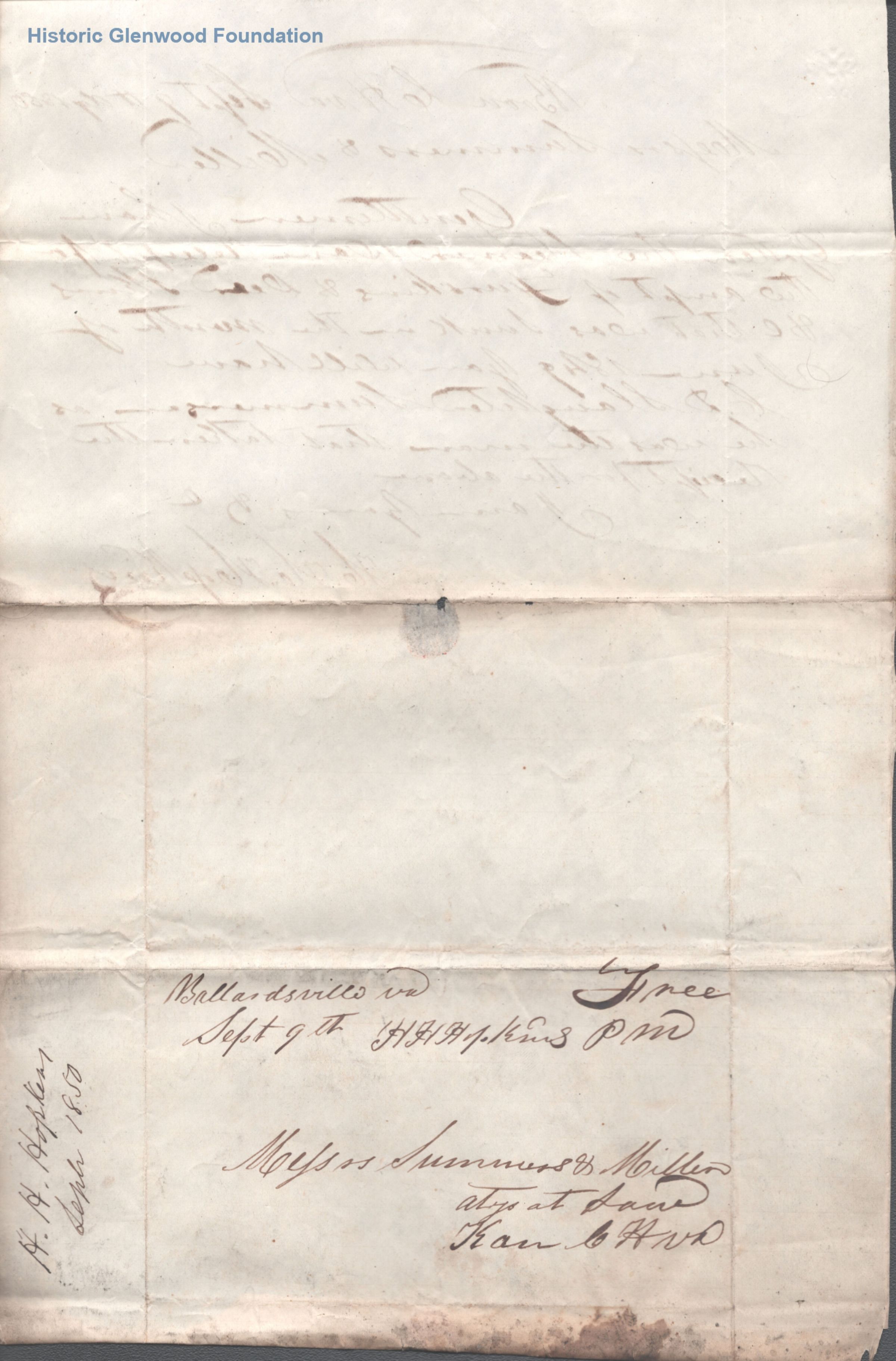 Correspondence from legal client of Summers & Miller: H. H. Hopkins, September 9, 1850Entry/Object ID