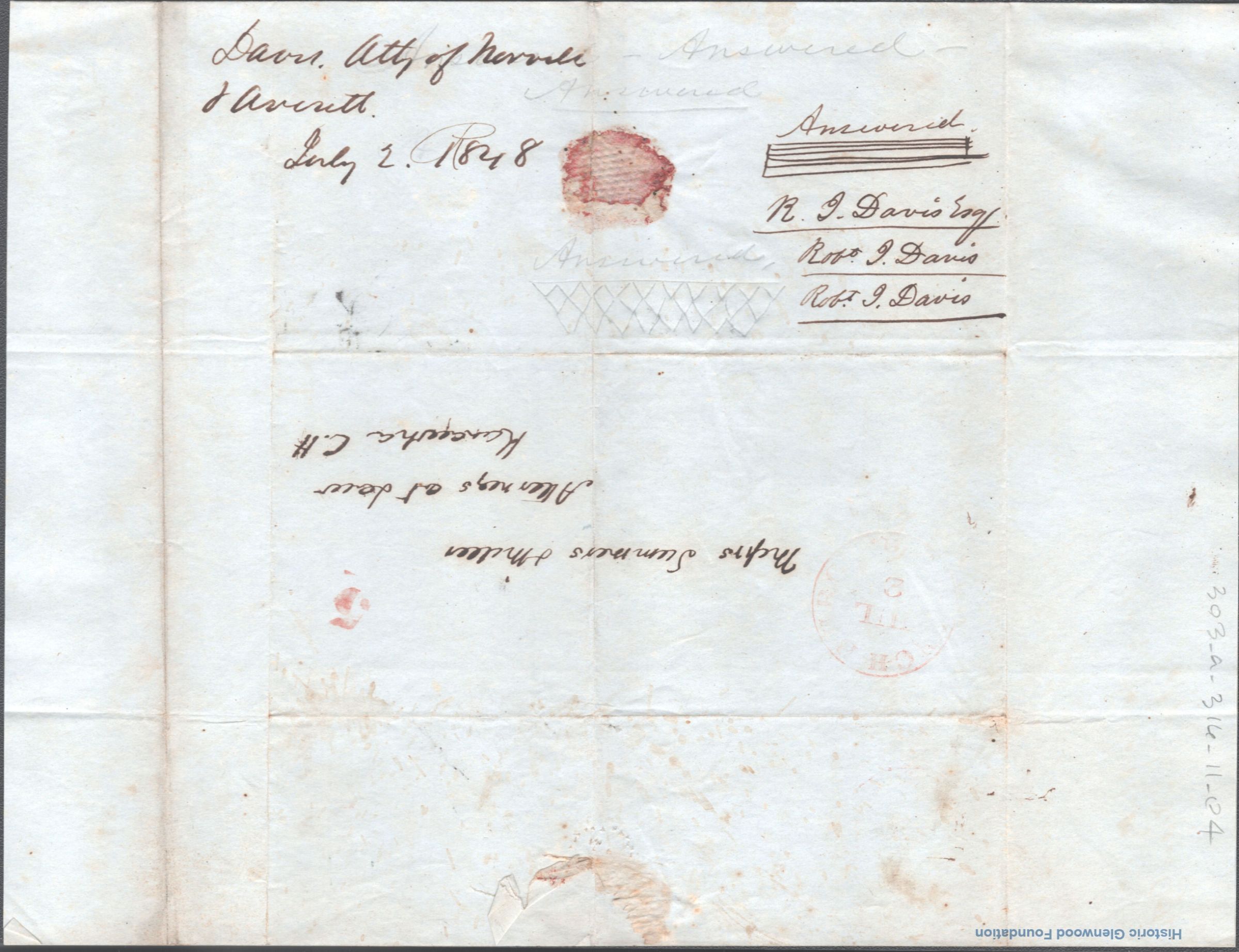 Correspondence from legal client of Summers & Miller: Robert Davis; July 1, 1848