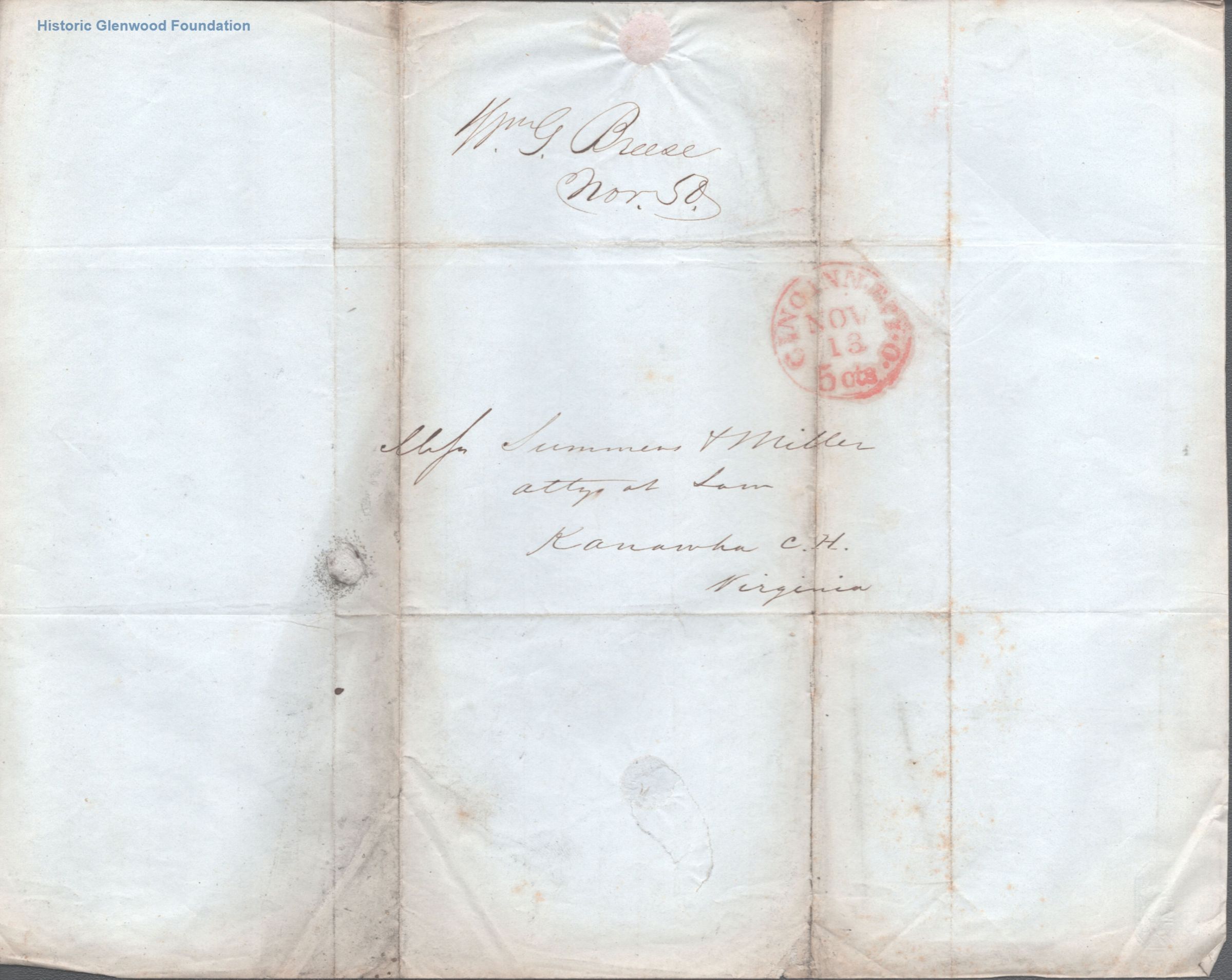 Correspondence from legal client of Summers & Miller: W. S. Breece; November 12, 1850