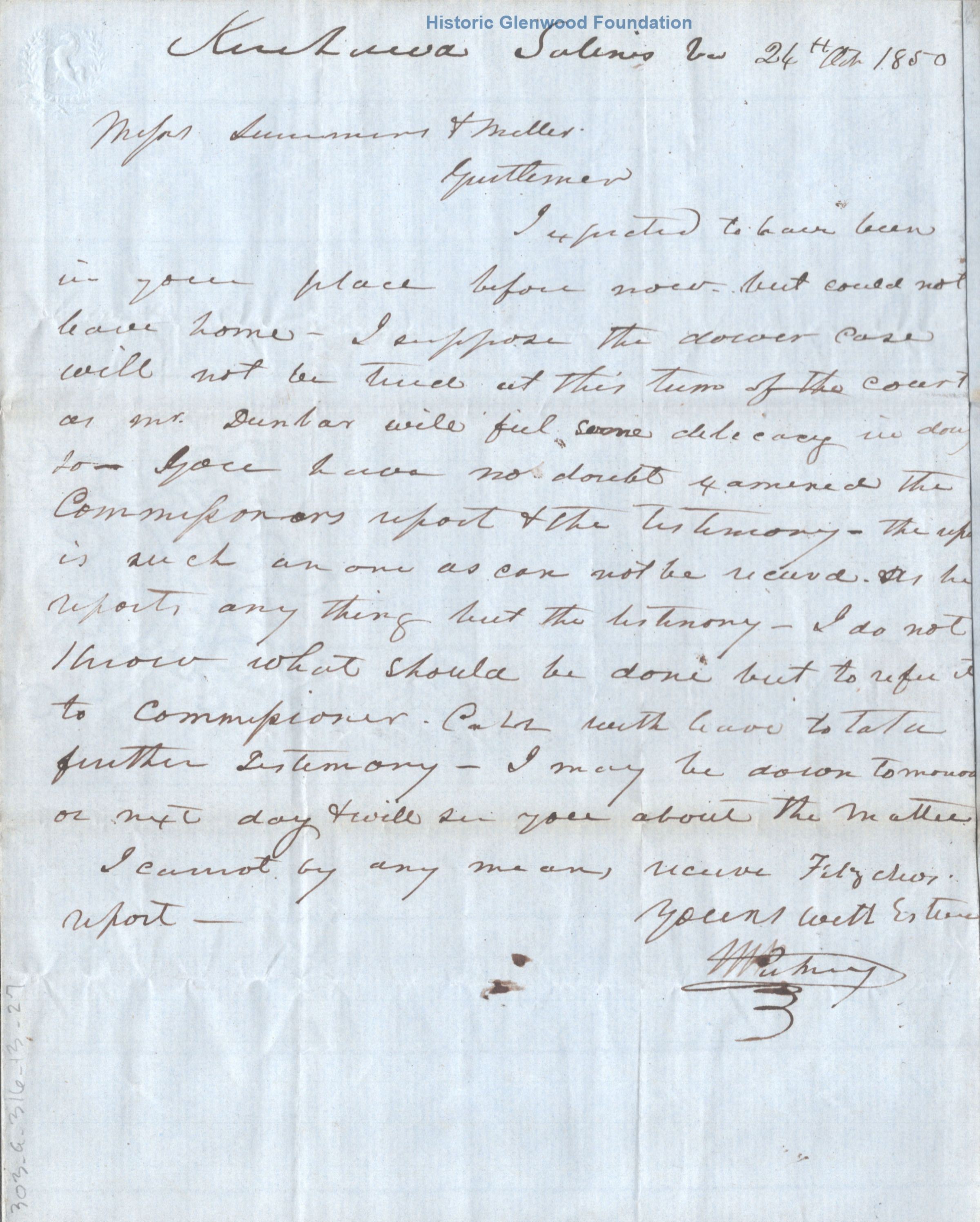 Correspondence from legal client of Summers & Miller: William Putney; October 24, 1850