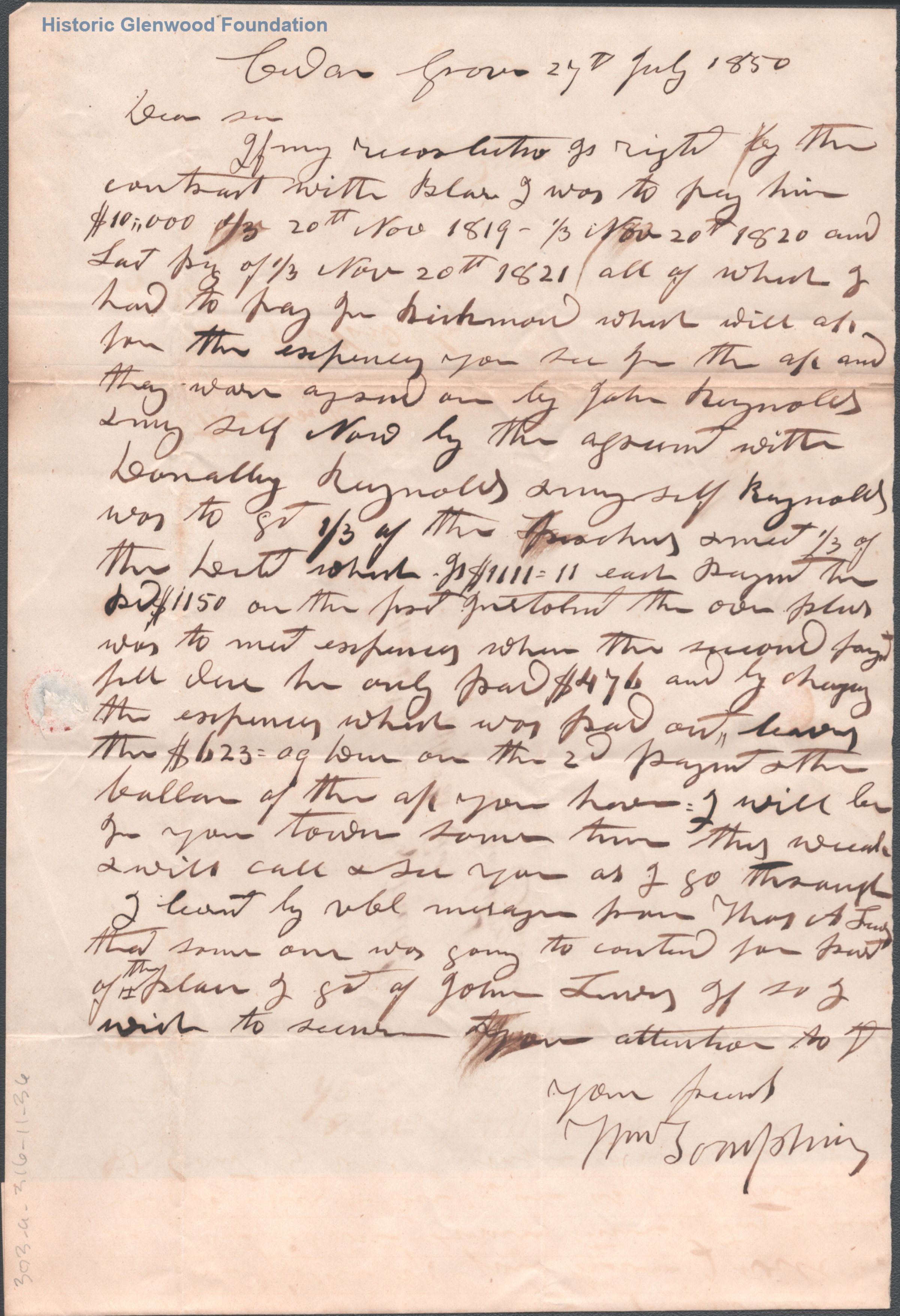 Correspondence from legal client of Summers & Miller: William Tompkins, July 27, 1850Entry/Object ID