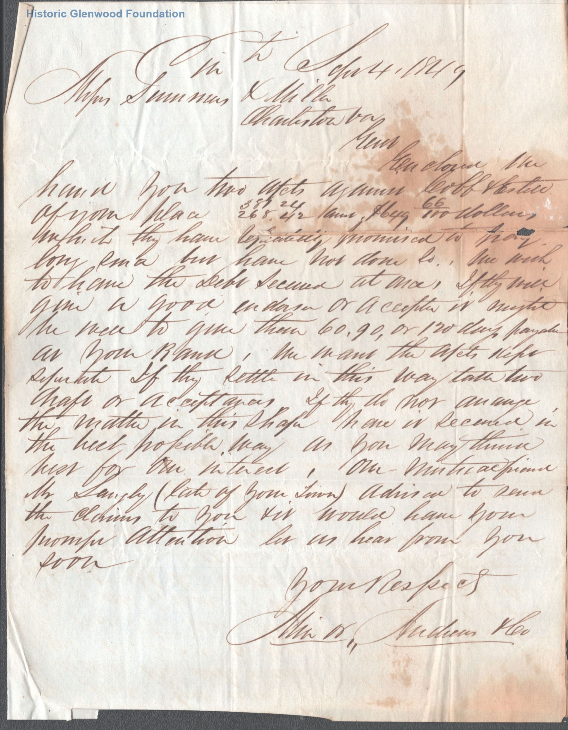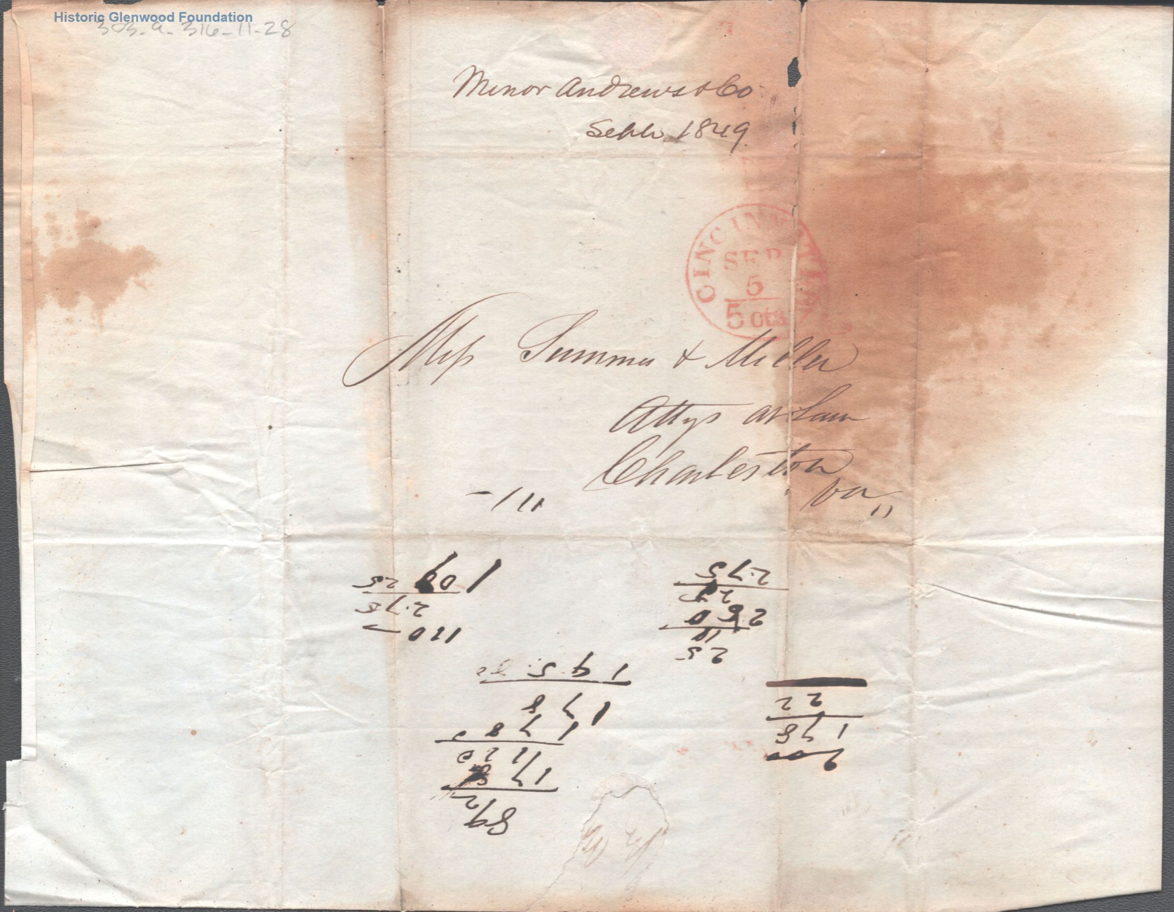 Correspondence from Minor, Andrews & Co to the partnership of Summers & Miller; September 4, 1849