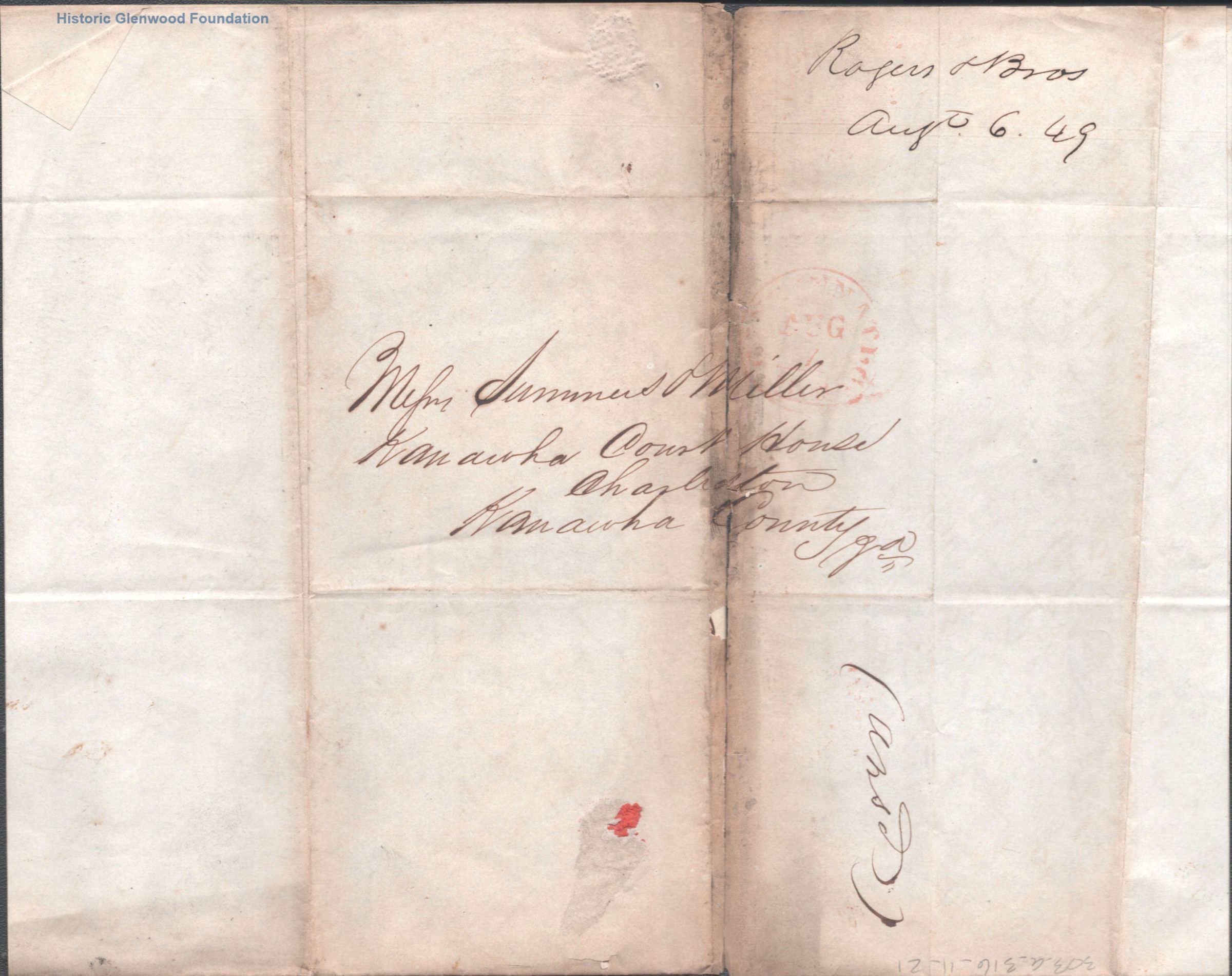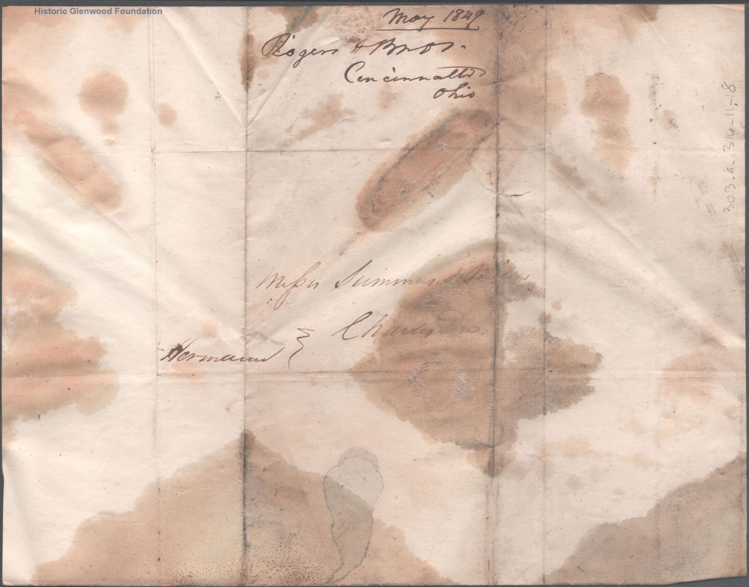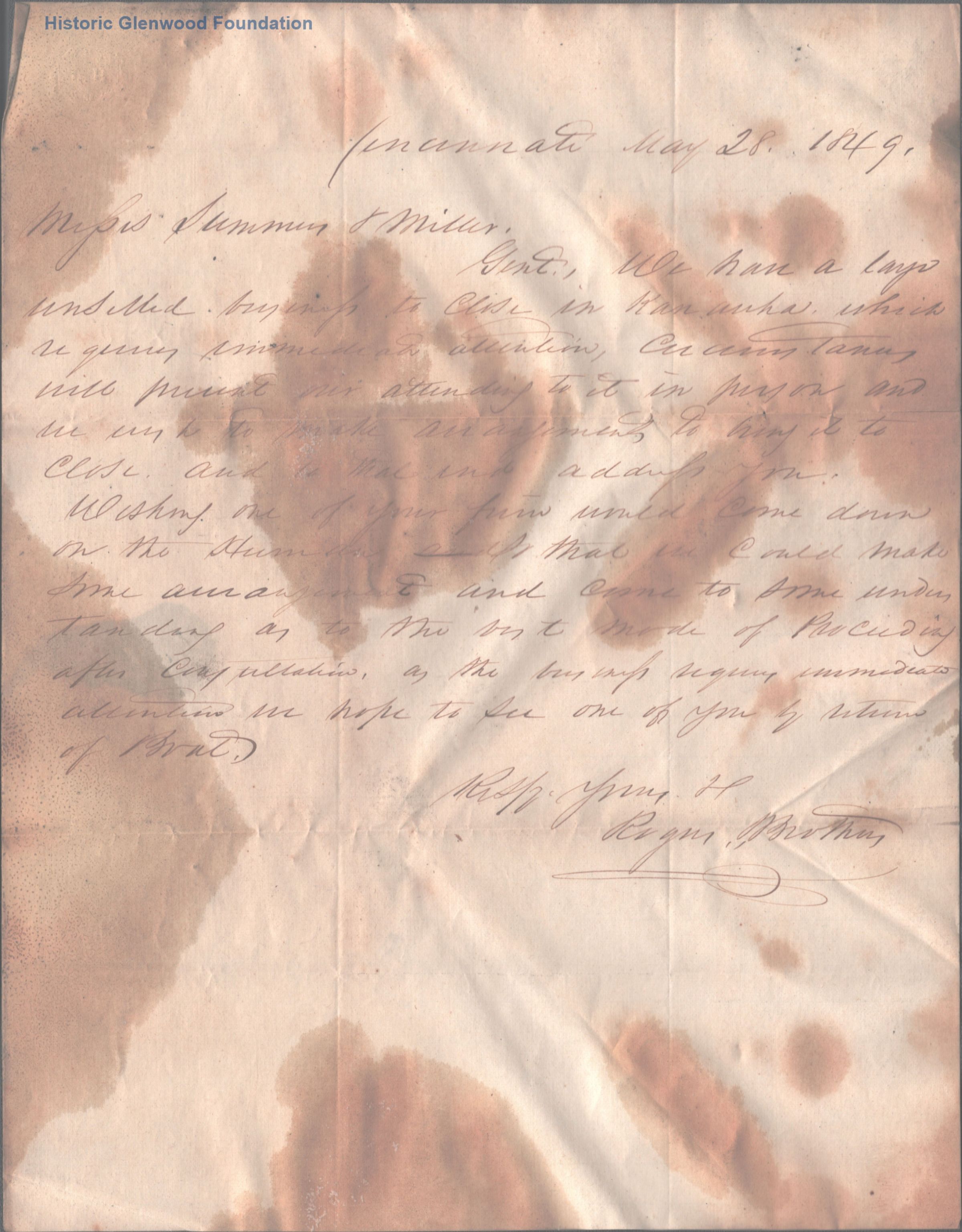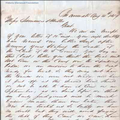 Correspondence from Rogers & Brothers to Summers & Miller; May 28, 1849; July 6, 1849; August 14, 1849; September 7, 1849Entry/Object ID