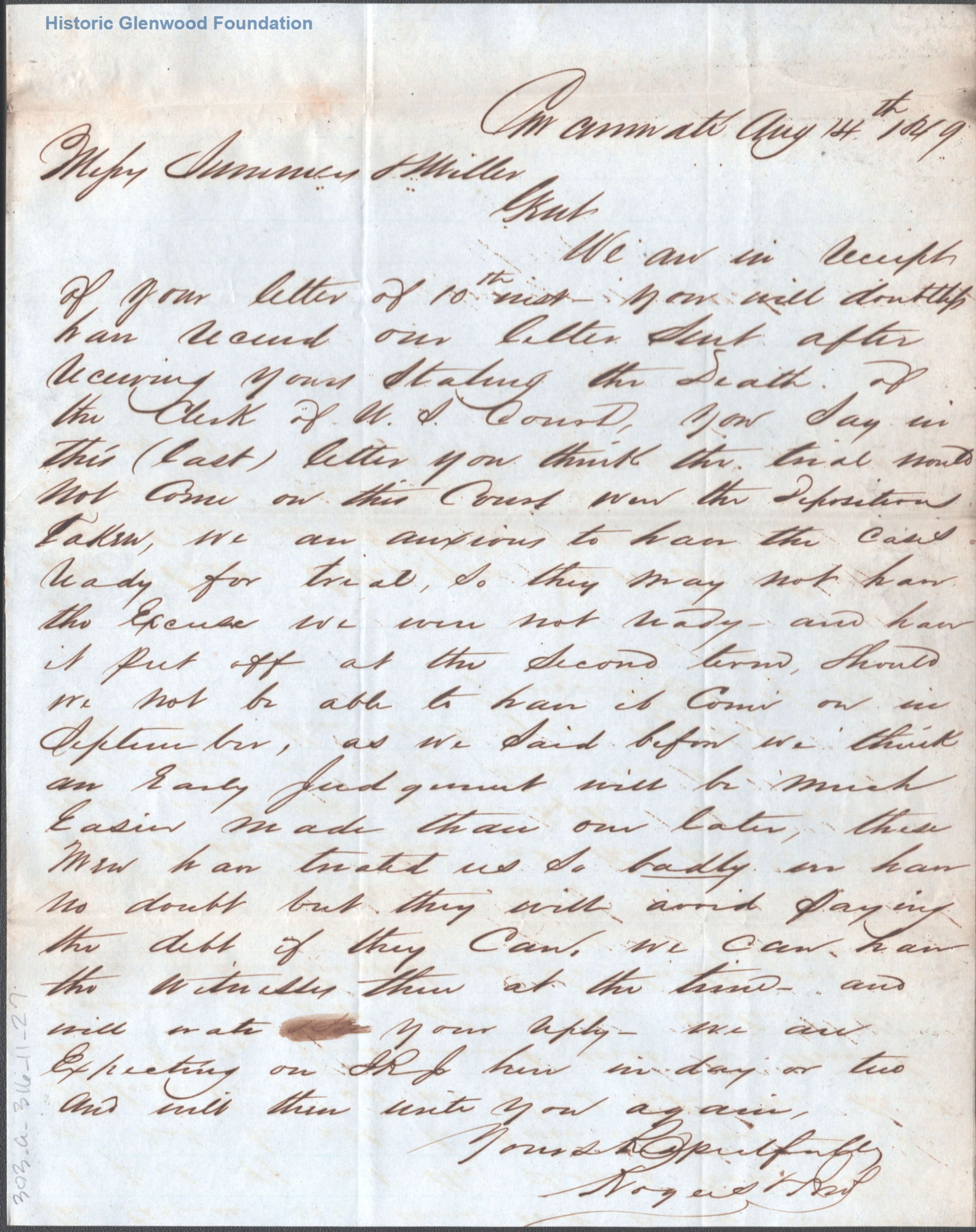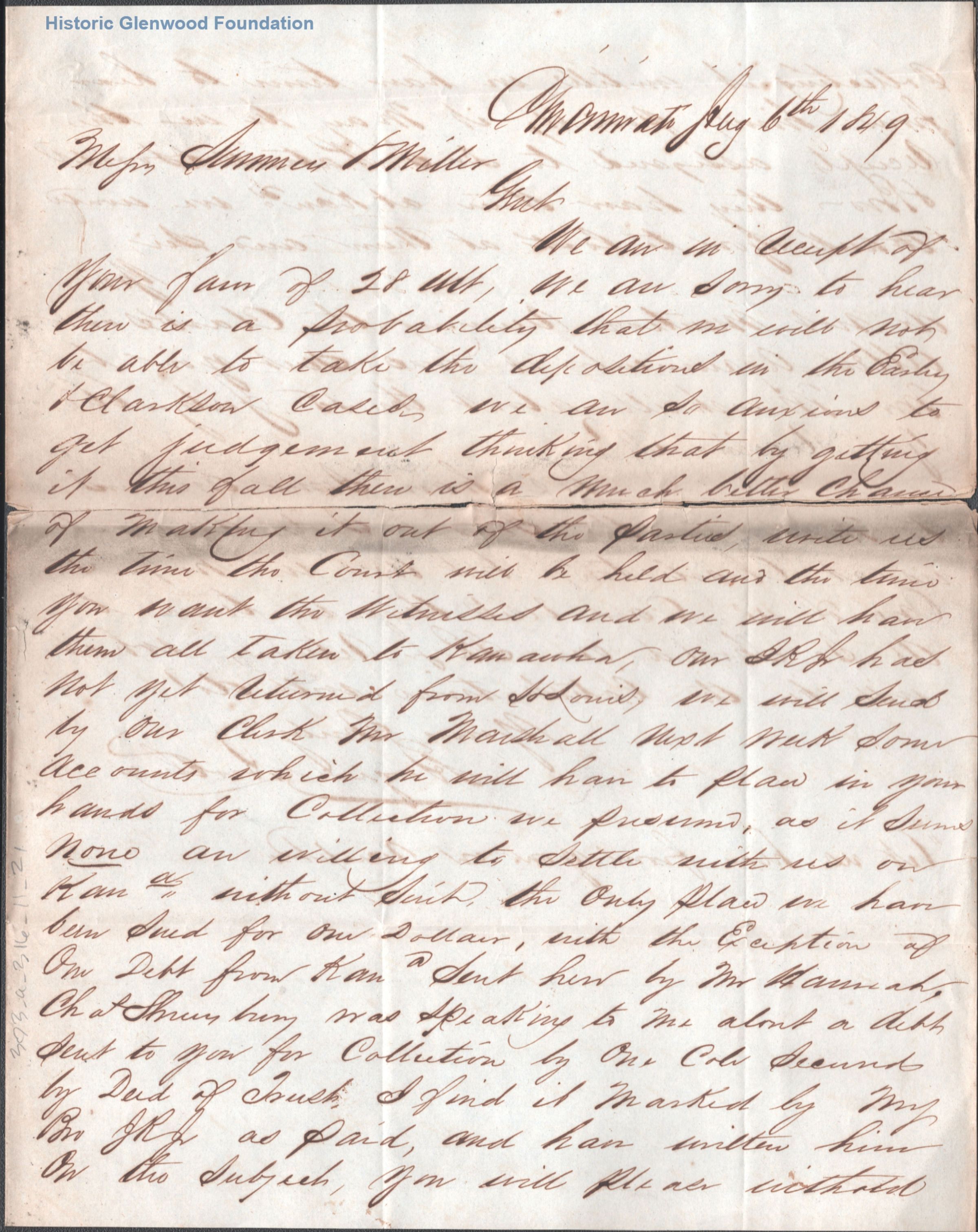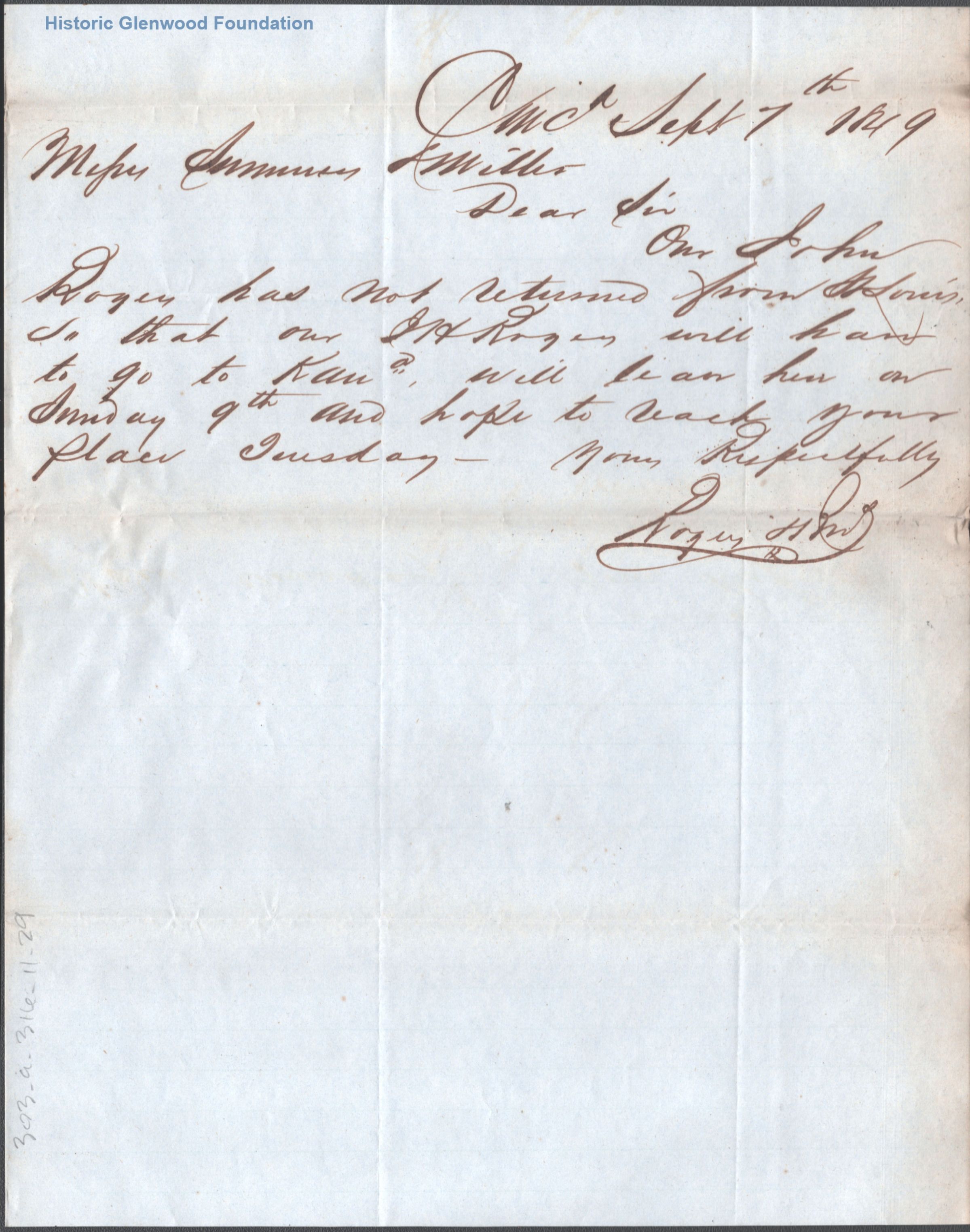 Correspondence from Rogers & Brothers to Summers & Miller; May 28, 1849; July 6, 1849; August 14, 1849; September 7, 1849Entry/Object ID