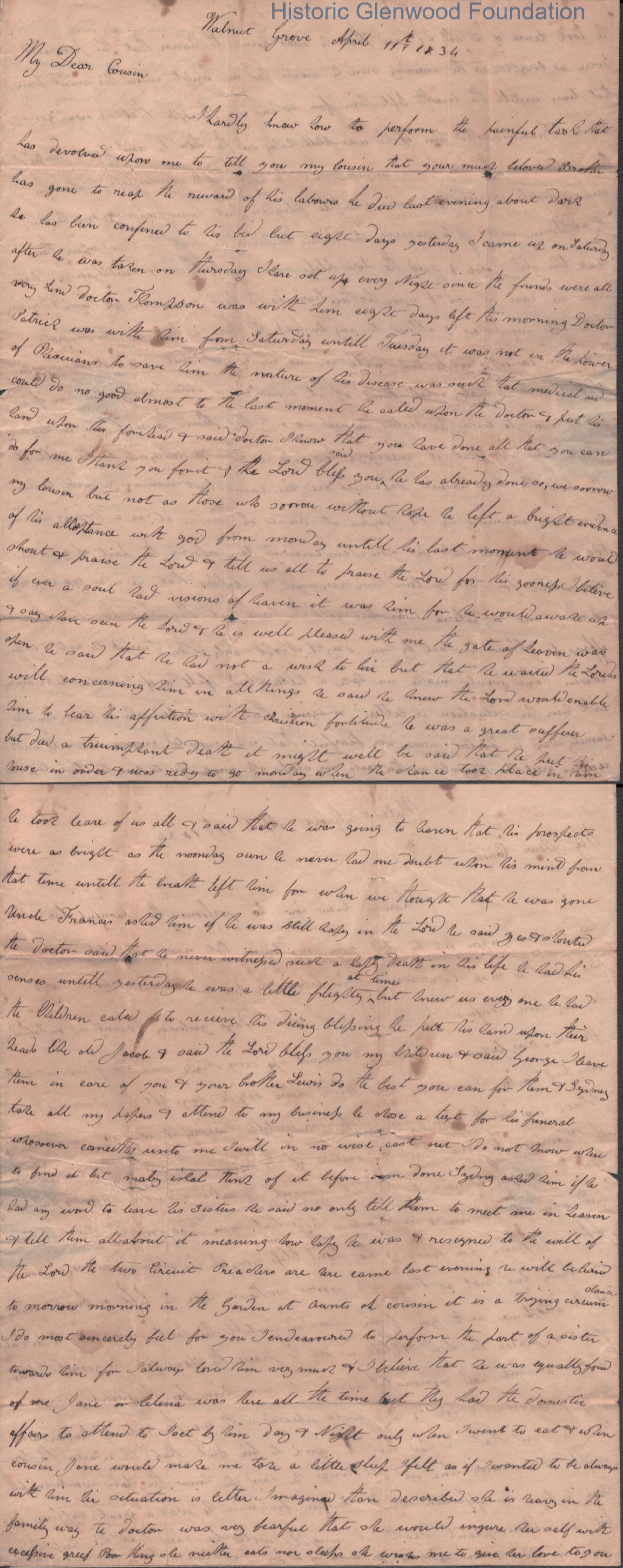 Correspondence regarding the death of William Shaw Summers, April 11, 1837