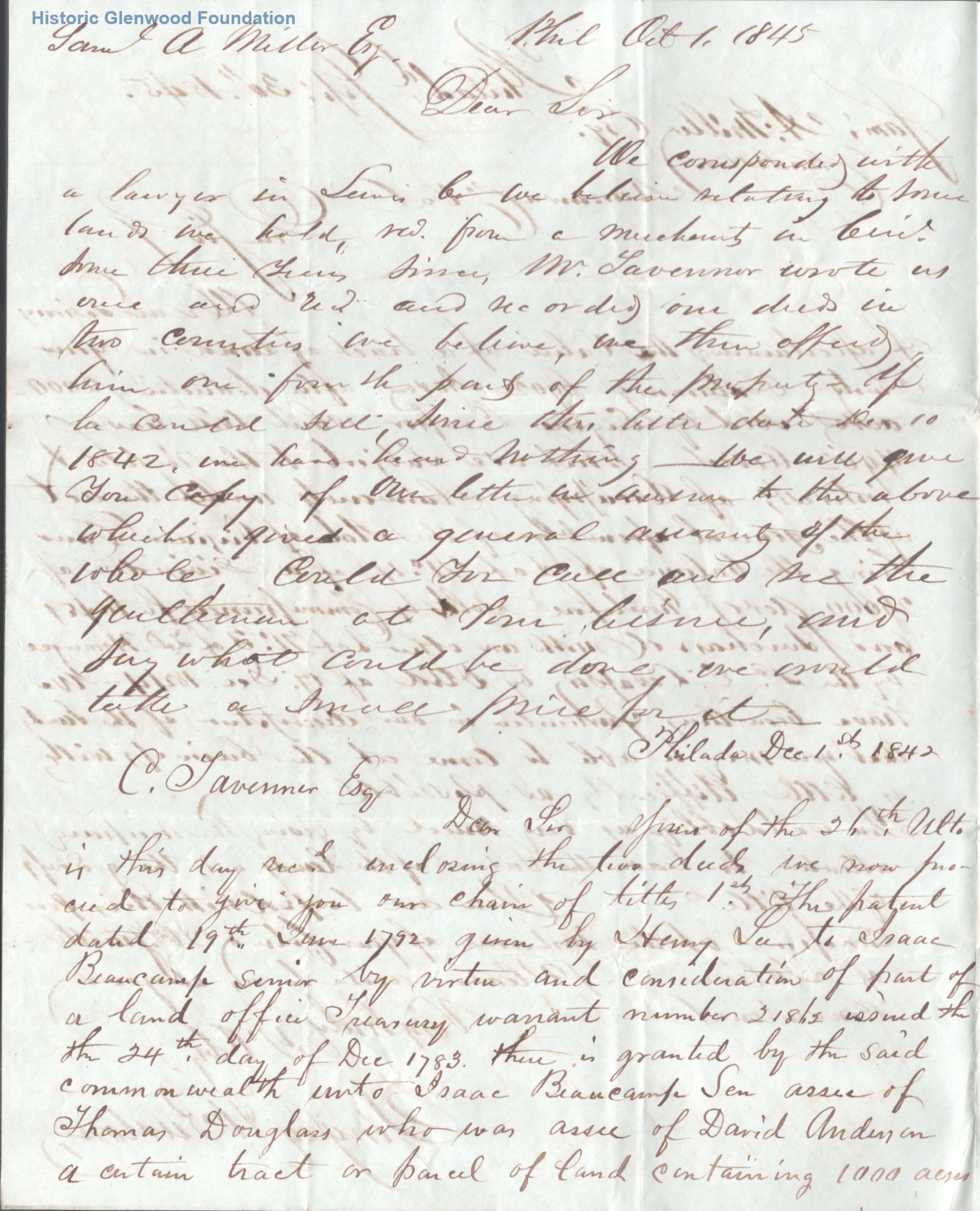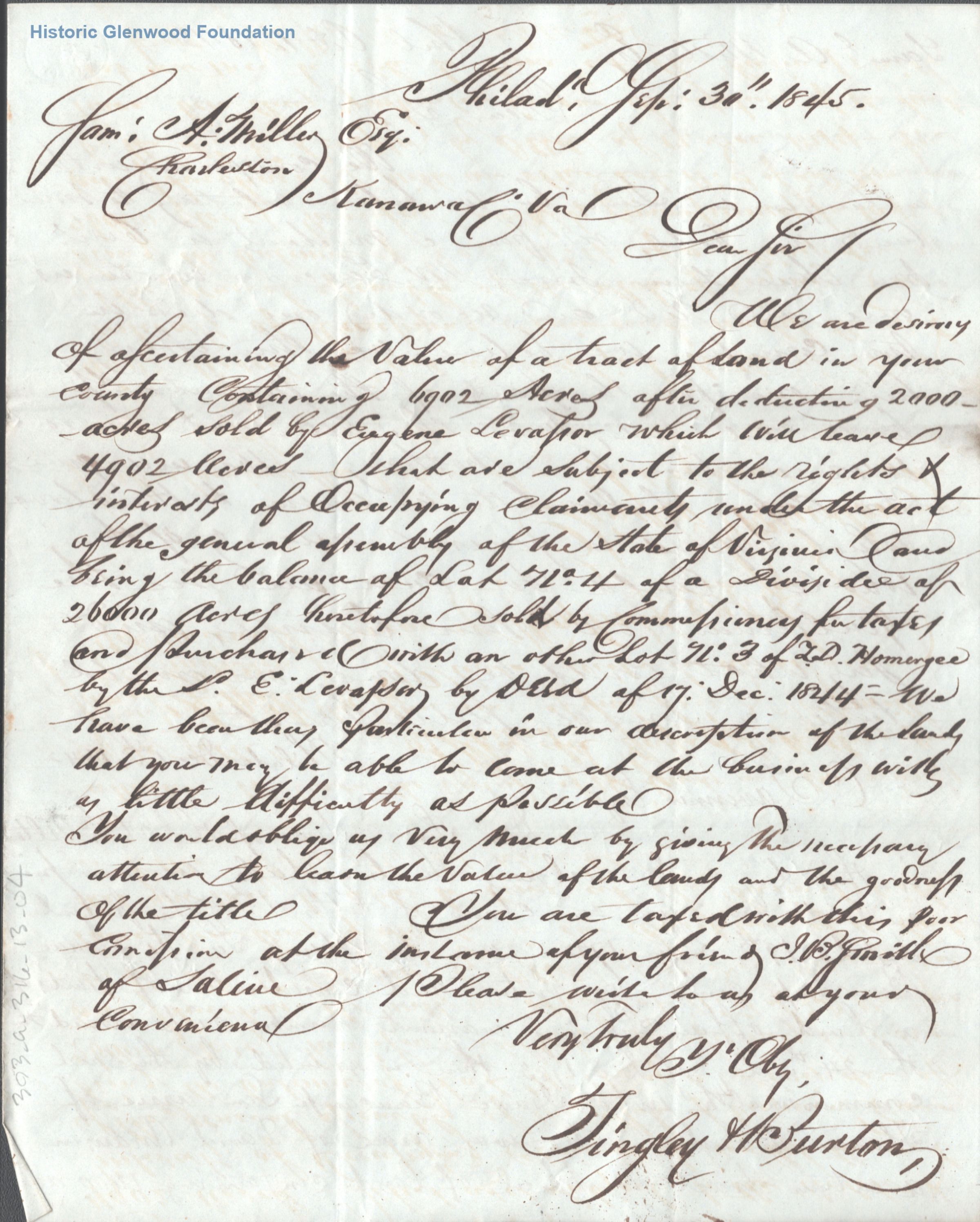 Correspondence to Summers & Miller from Tingley & Burton; Sept. 30, 1845