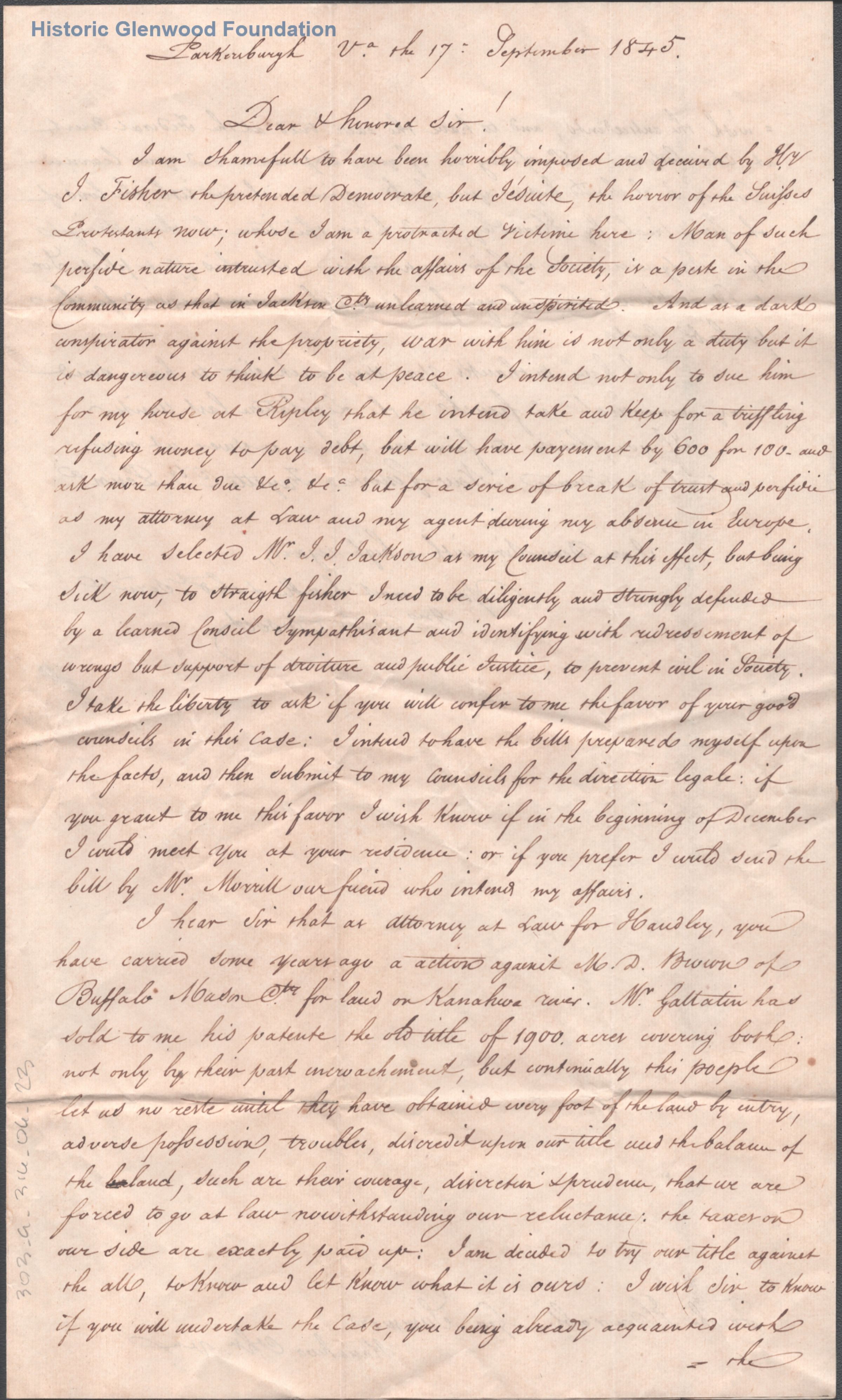 Correspondence with legal client: D. D. Rosset; September 17, 1845