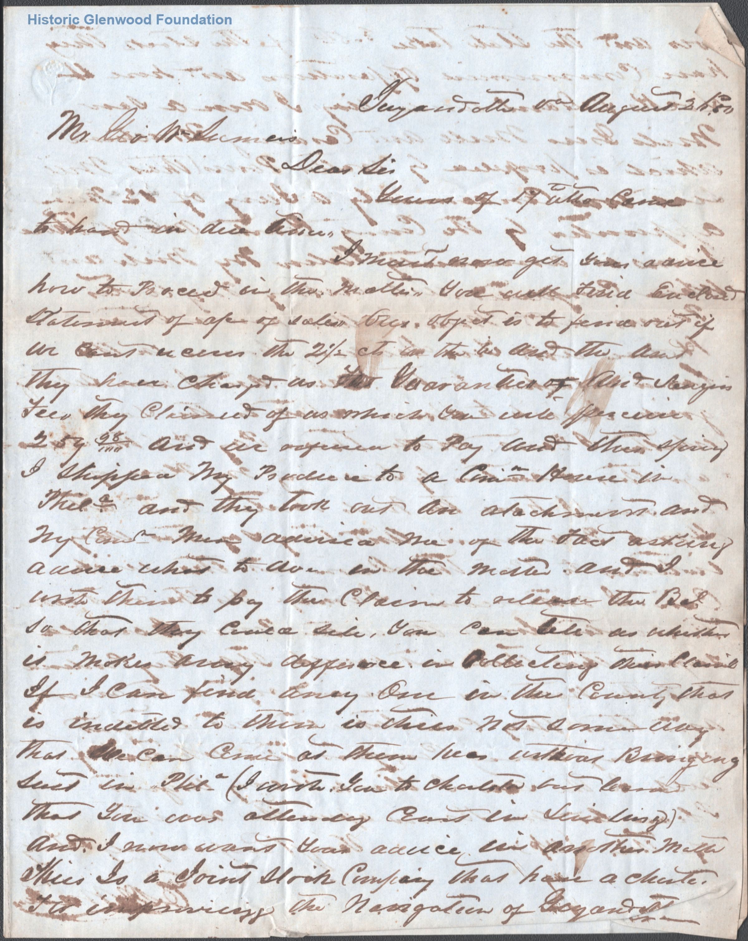 Correspondence with legal client: E. Walton; August 3, 1850