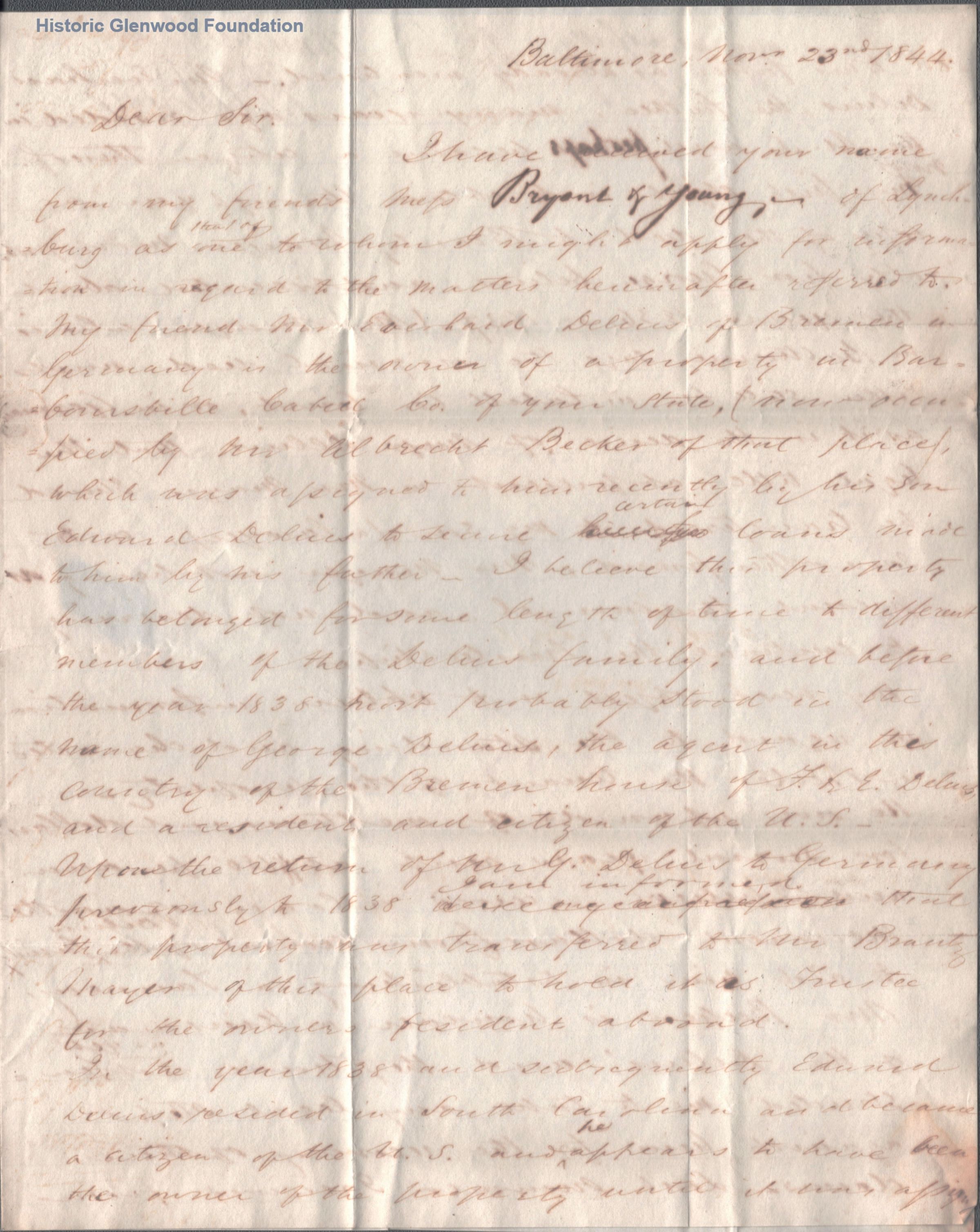 Correspondence with legal client: G. Brune [?]; November 23, 1844