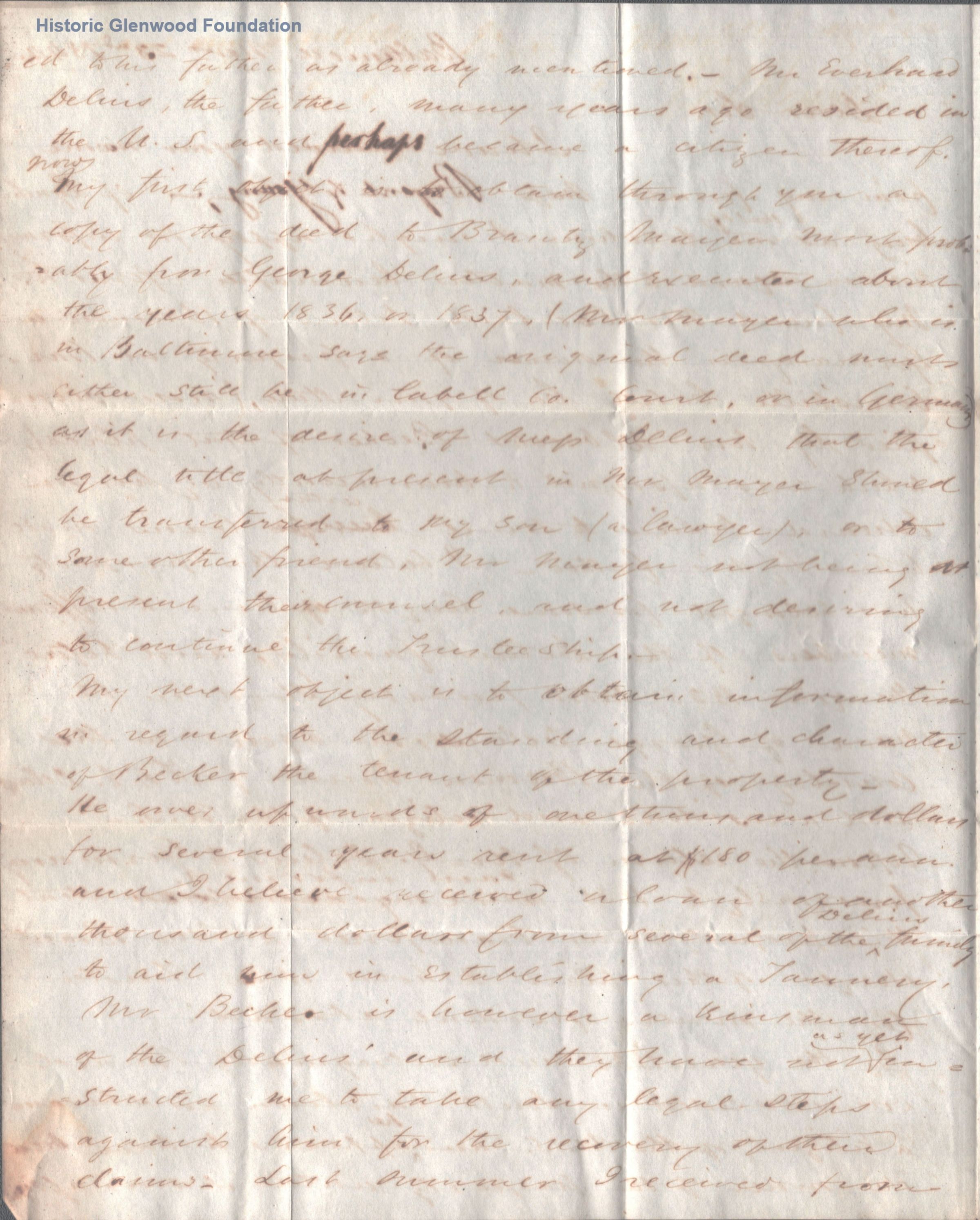 3-page letter to George Summers from G. Brune [?]