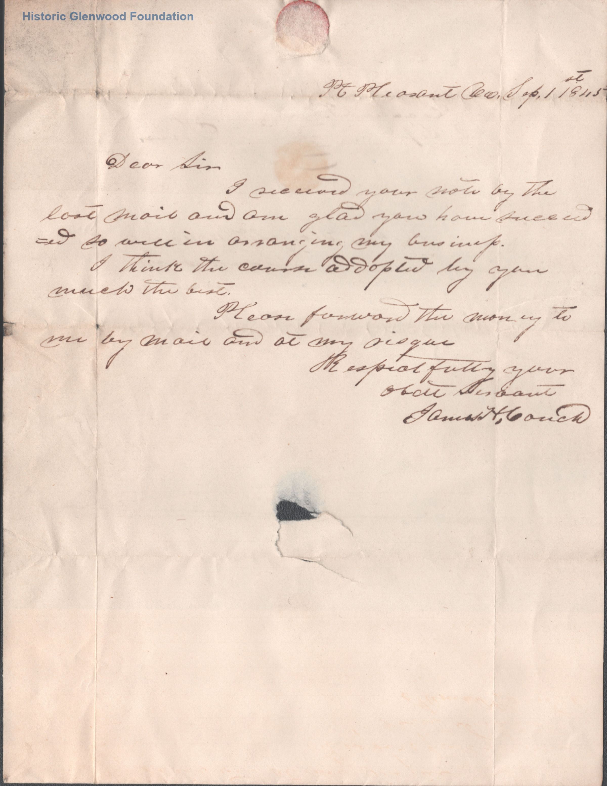 Correspondence with legal client: James Couch; September 1, 1845