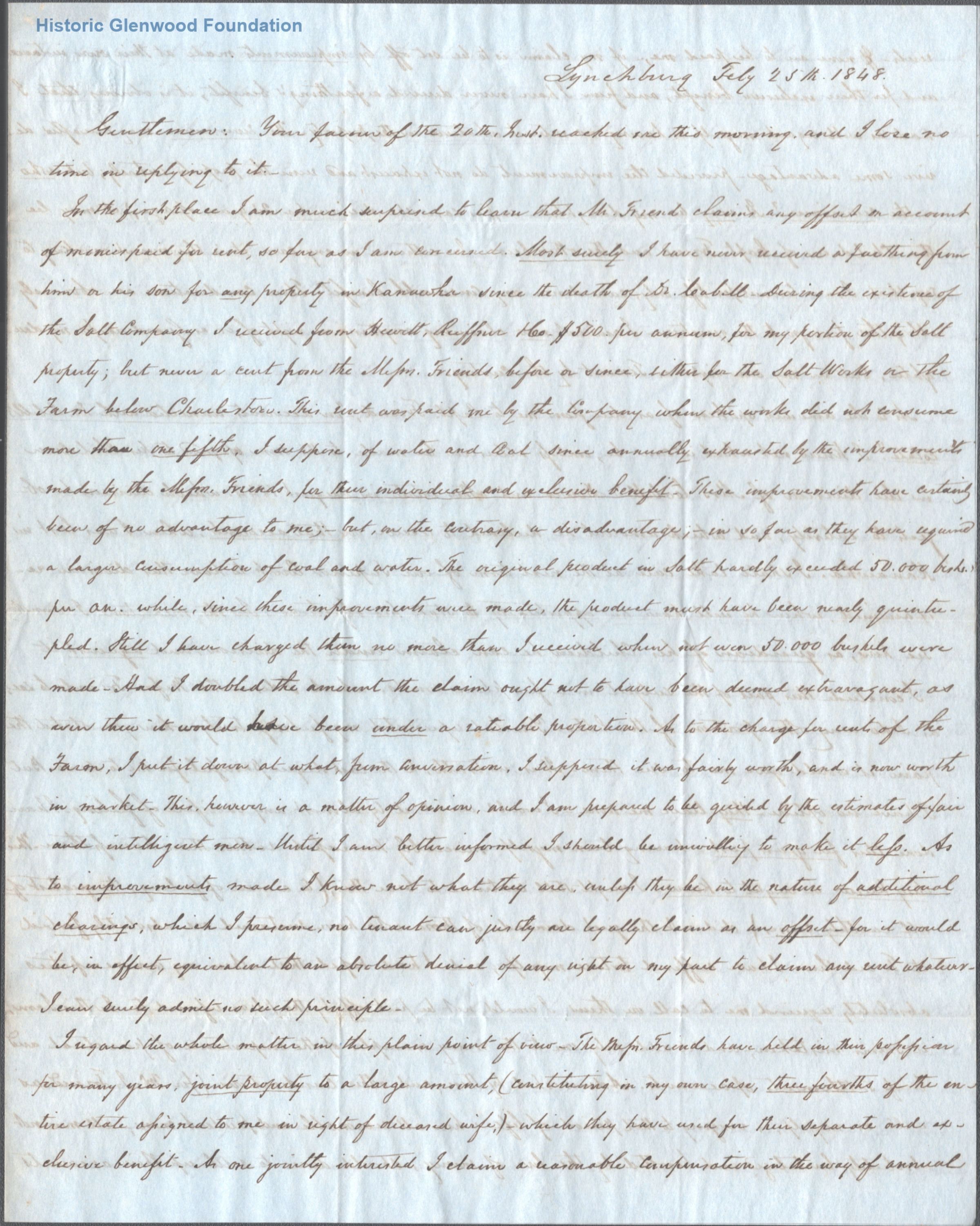 Correspondence with legal client: Richard K. Cralle; February 25, 1848