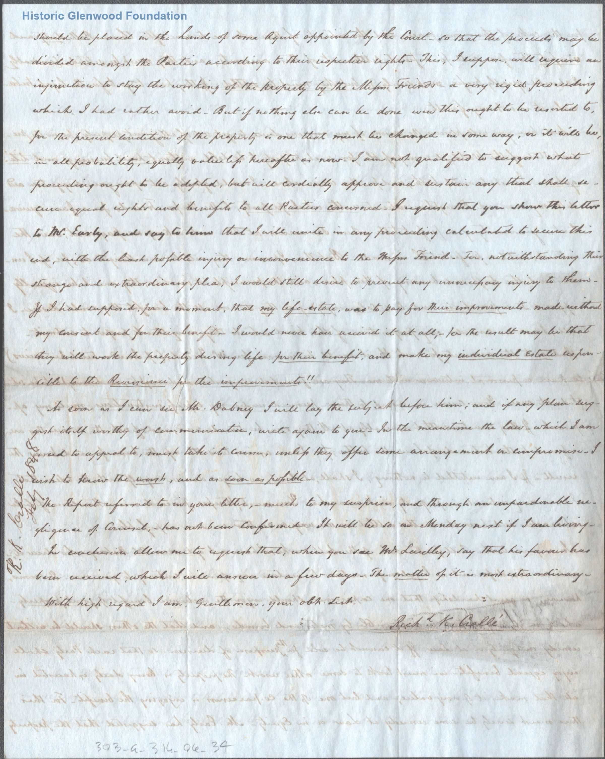 Letter to George Summers & others (addressed to "Gentlemen") from Richard K. Cralle regarding a property dispute