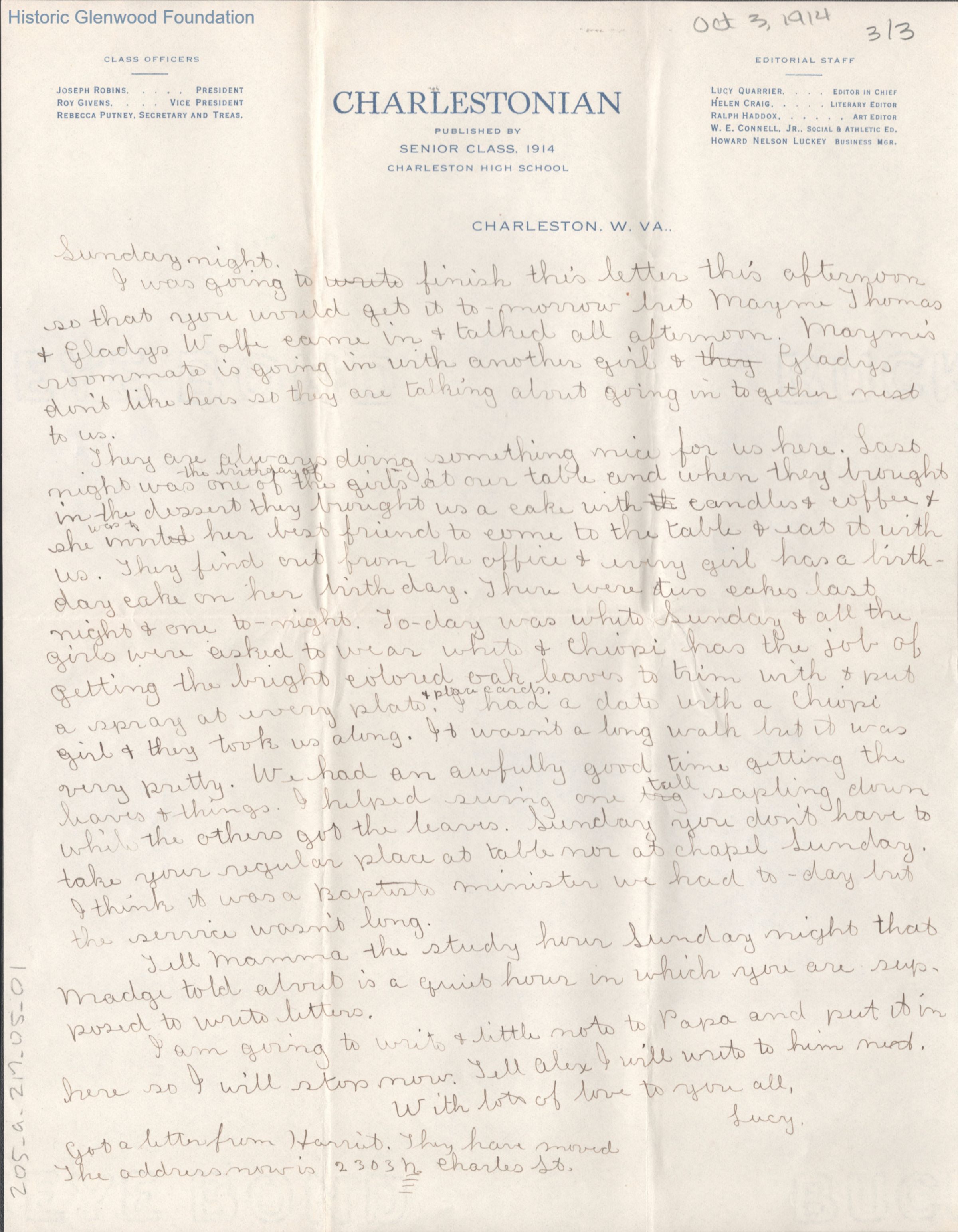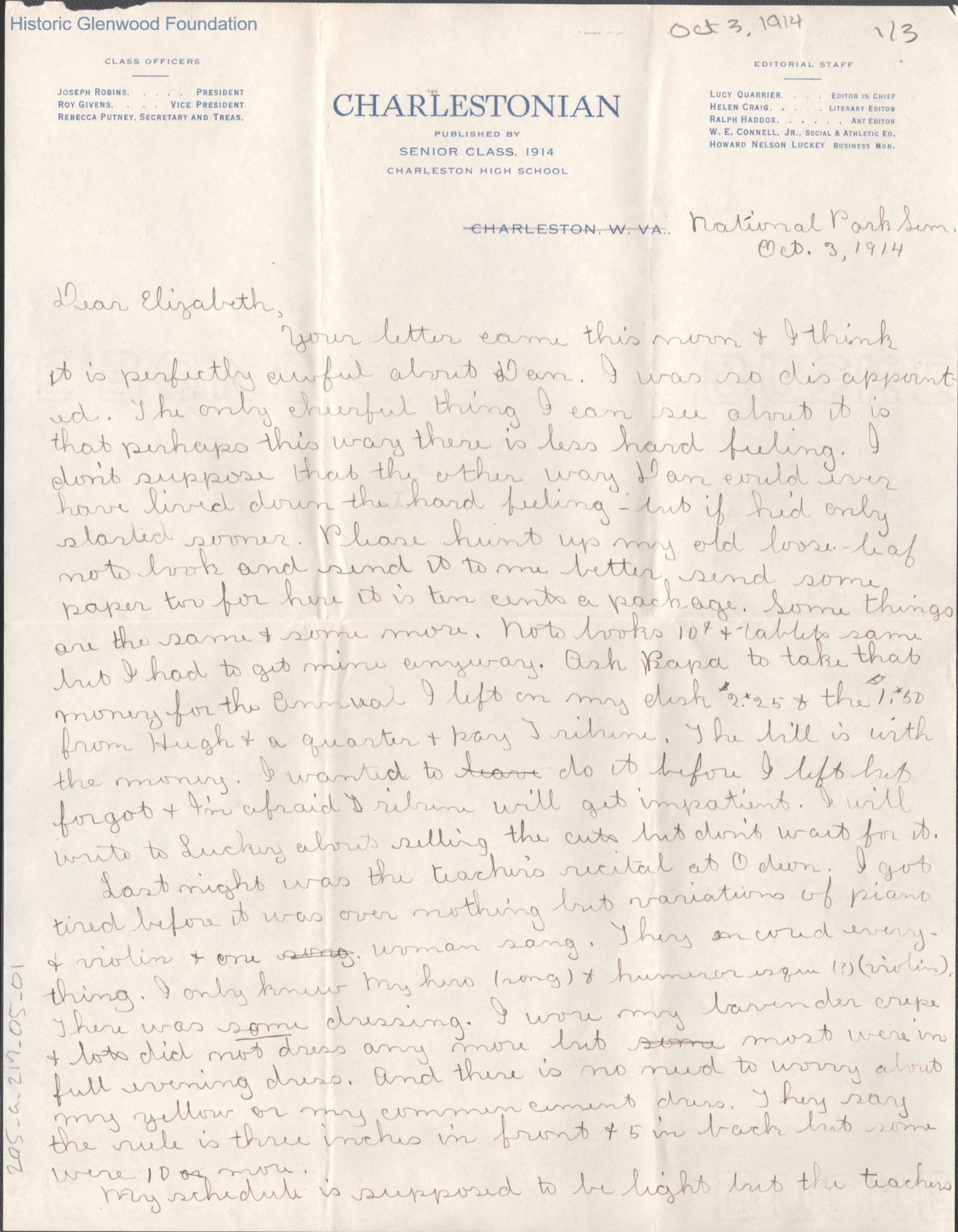 Elizabeth G. Quarrier from Lucy S. Quarrier, Oct 3, 1914
